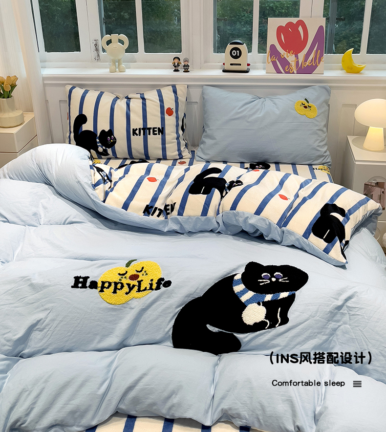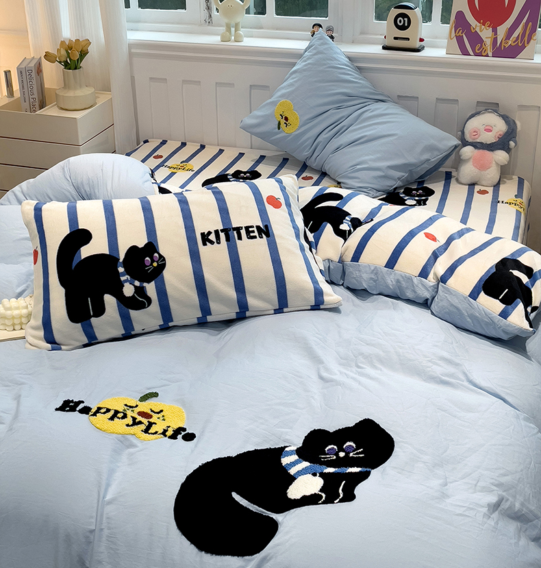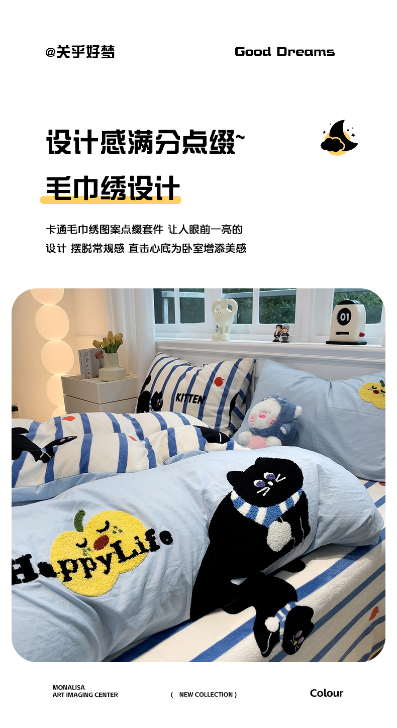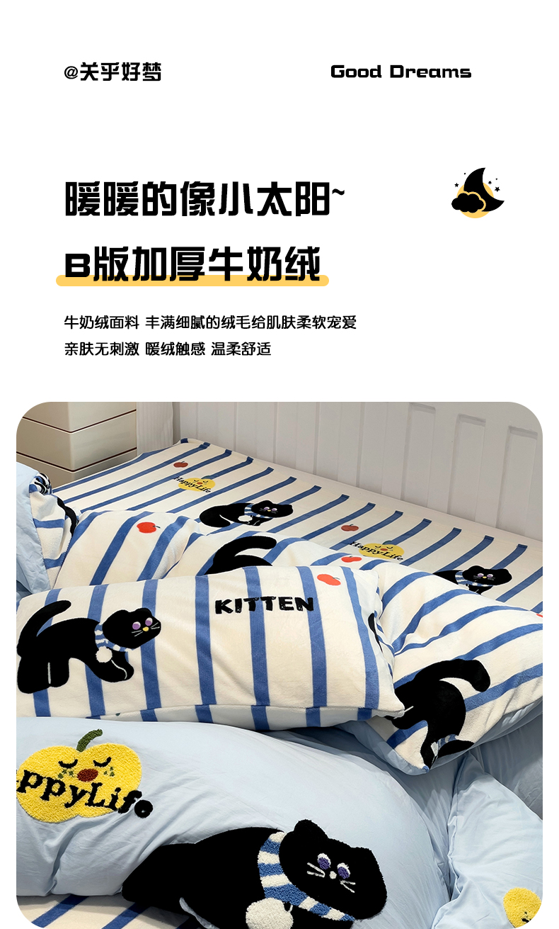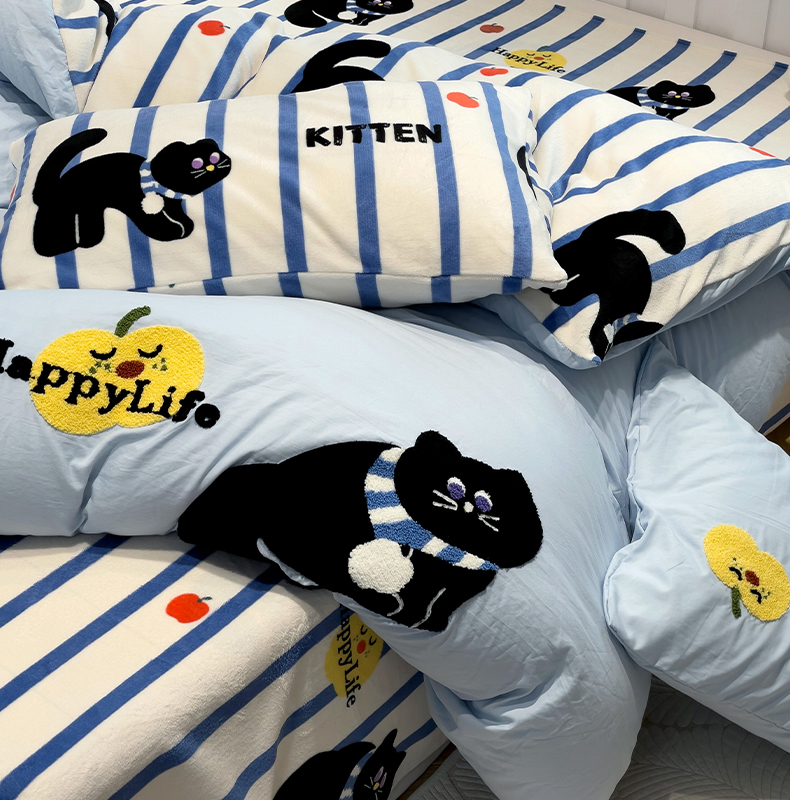 当前位置: 91家纺网 > 商品网购 > 床品套件 > 四件套 > 其它四件套 > 奈颜 2024新款冬季棉+绒毛巾绣四件套A版超柔水洗棉+B版加厚牛奶绒 围脖猫