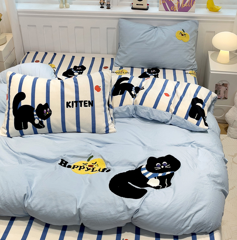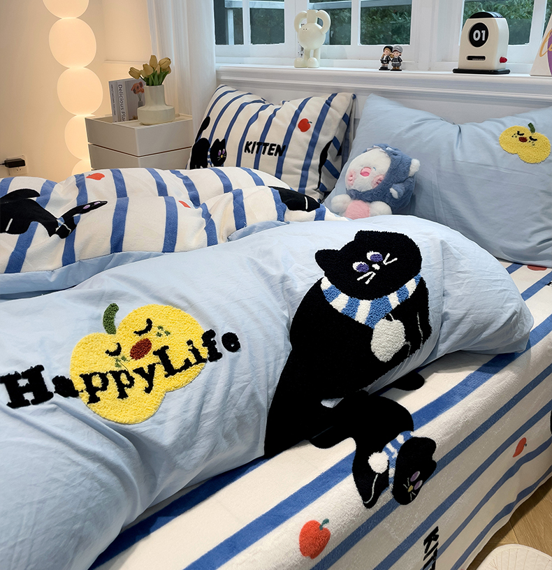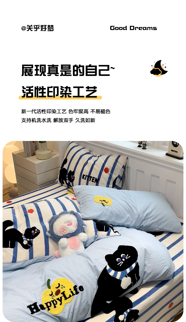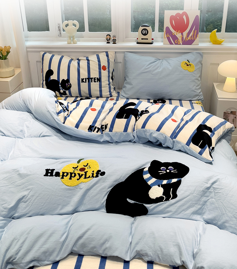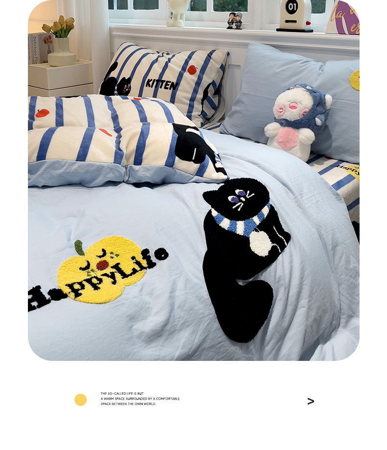 当前位置: 91家纺网 > 商品网购 > 床品套件 > 四件套 > 其它四件套 > 奈颜 2024新款冬季棉+绒毛巾绣四件套A版超柔水洗棉+B版加厚牛奶绒 围脖猫
