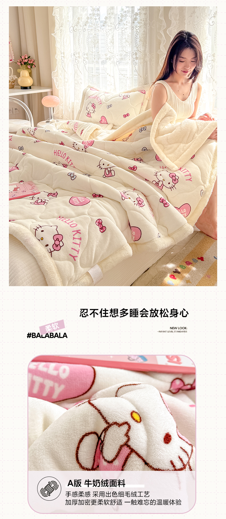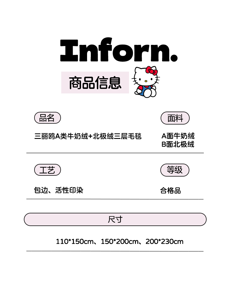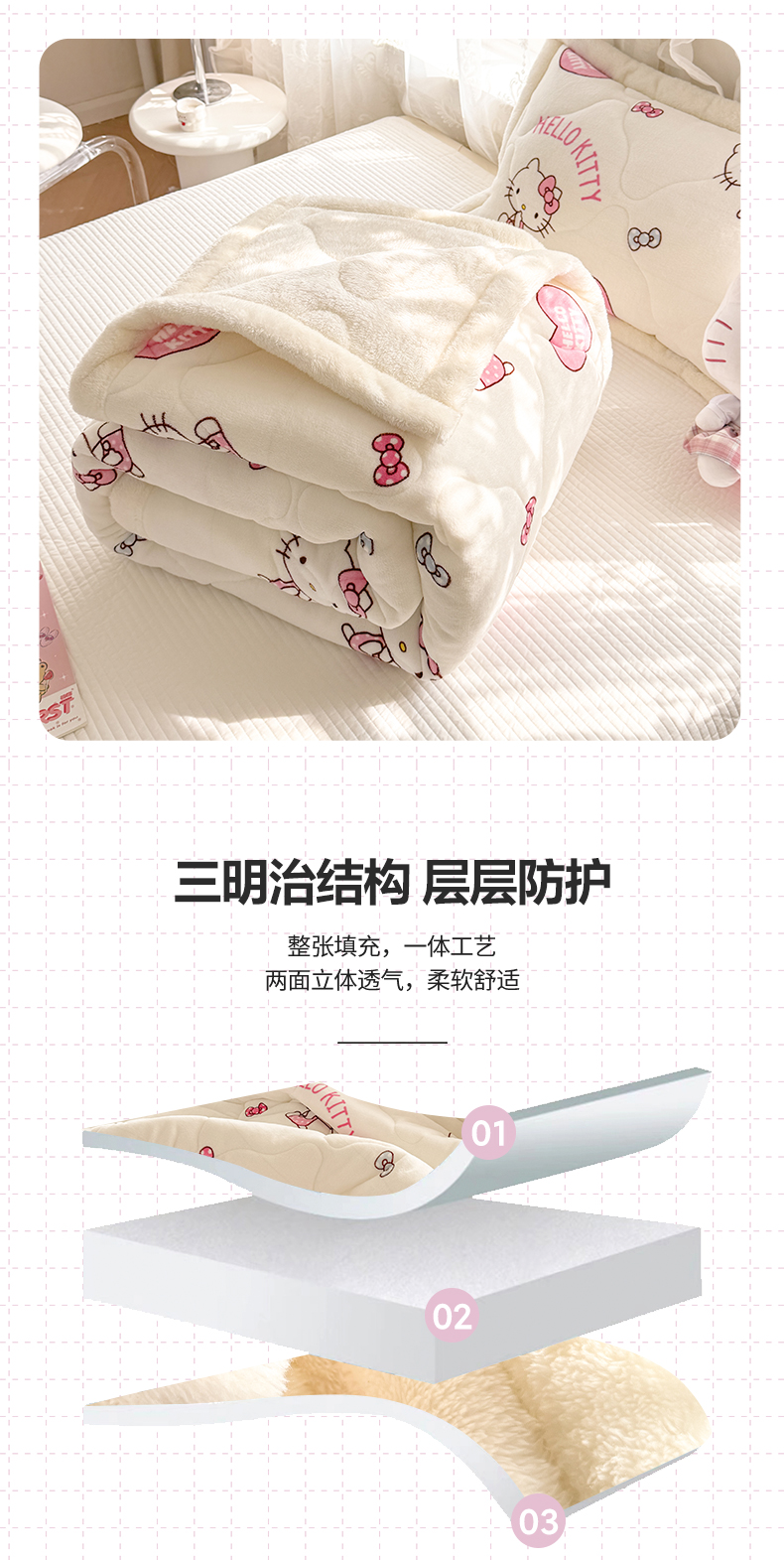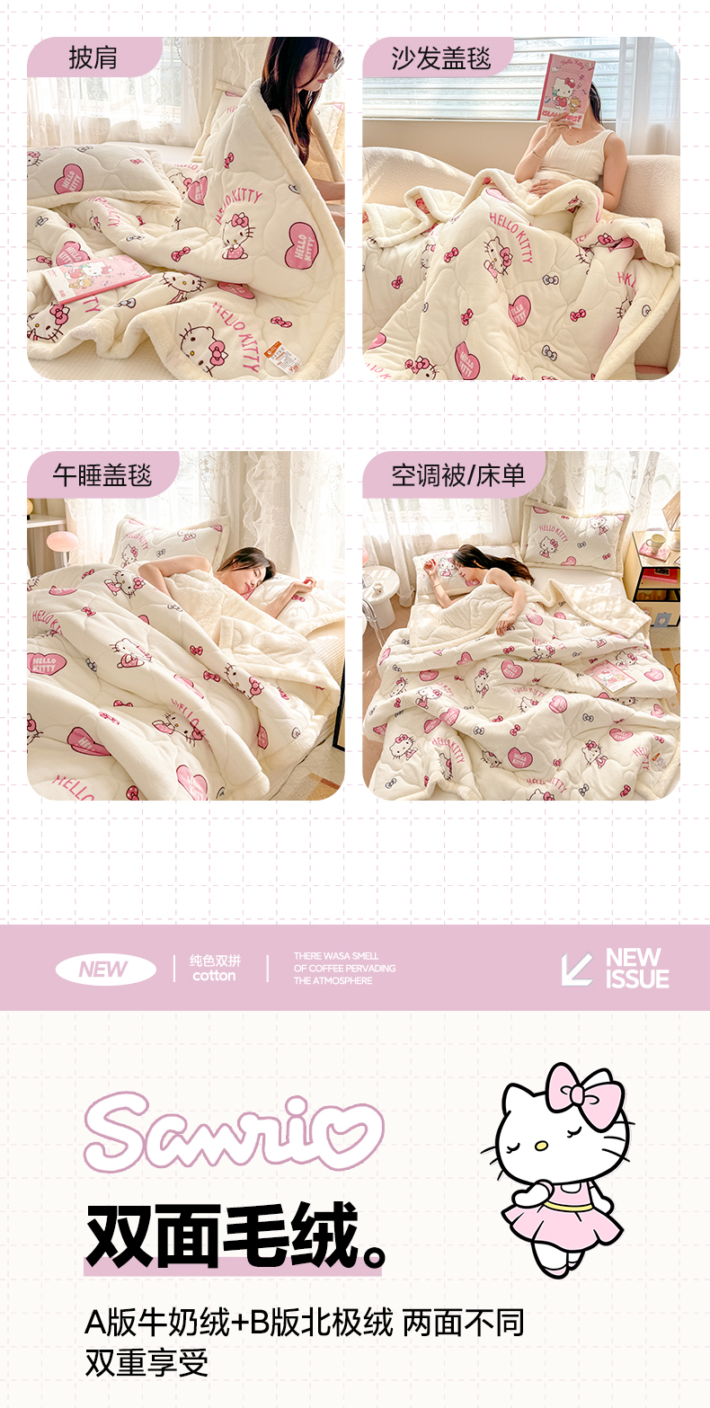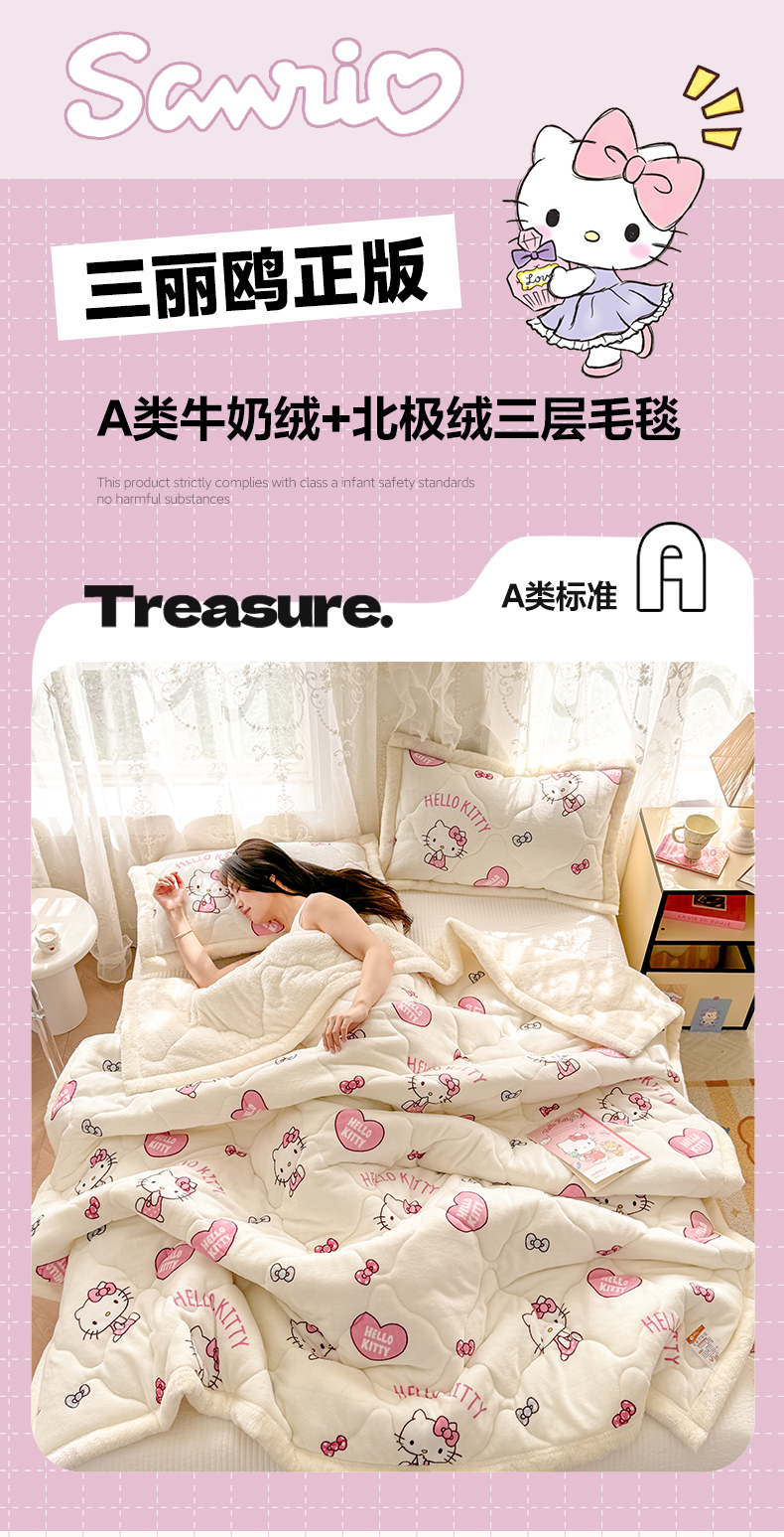 当前位置: 91家纺网 > 商品网购 > 毛毯休闲毯绒毯 > 毛毯 > 沐辰 2024新款A类牛奶绒+北极绒三层毛毯 三层毛毯-萌萌kitty