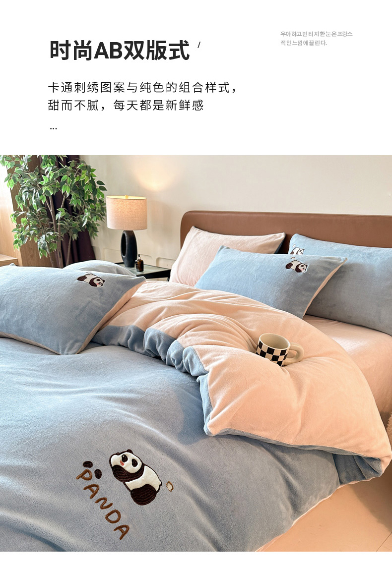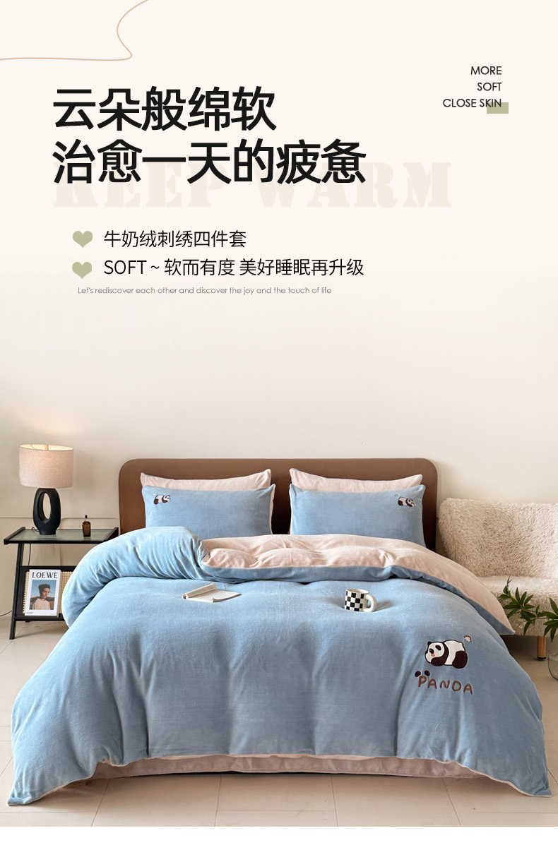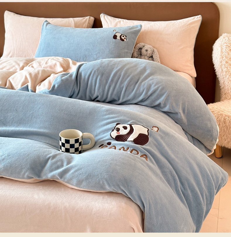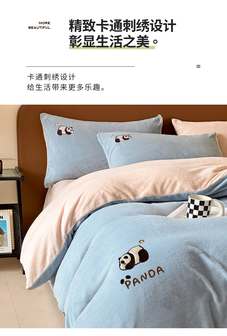 当前位置: 91家纺网 > 商品网购 > 床品套件 > 四件套 > 牛奶绒四件套 > 万盛家纺 2025新款卡通贴补绣牛奶绒四件套 熊猫-冰雪蓝-卡其