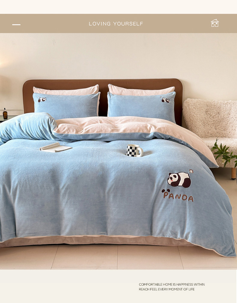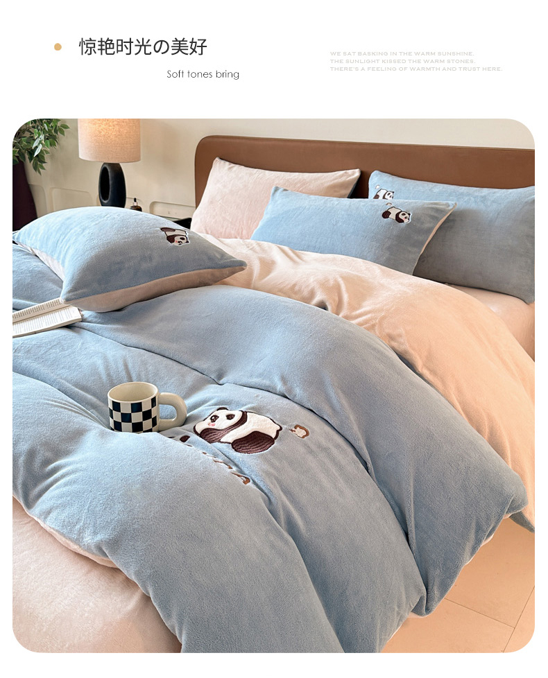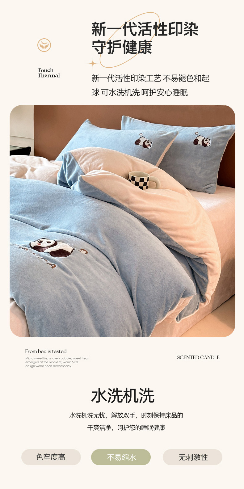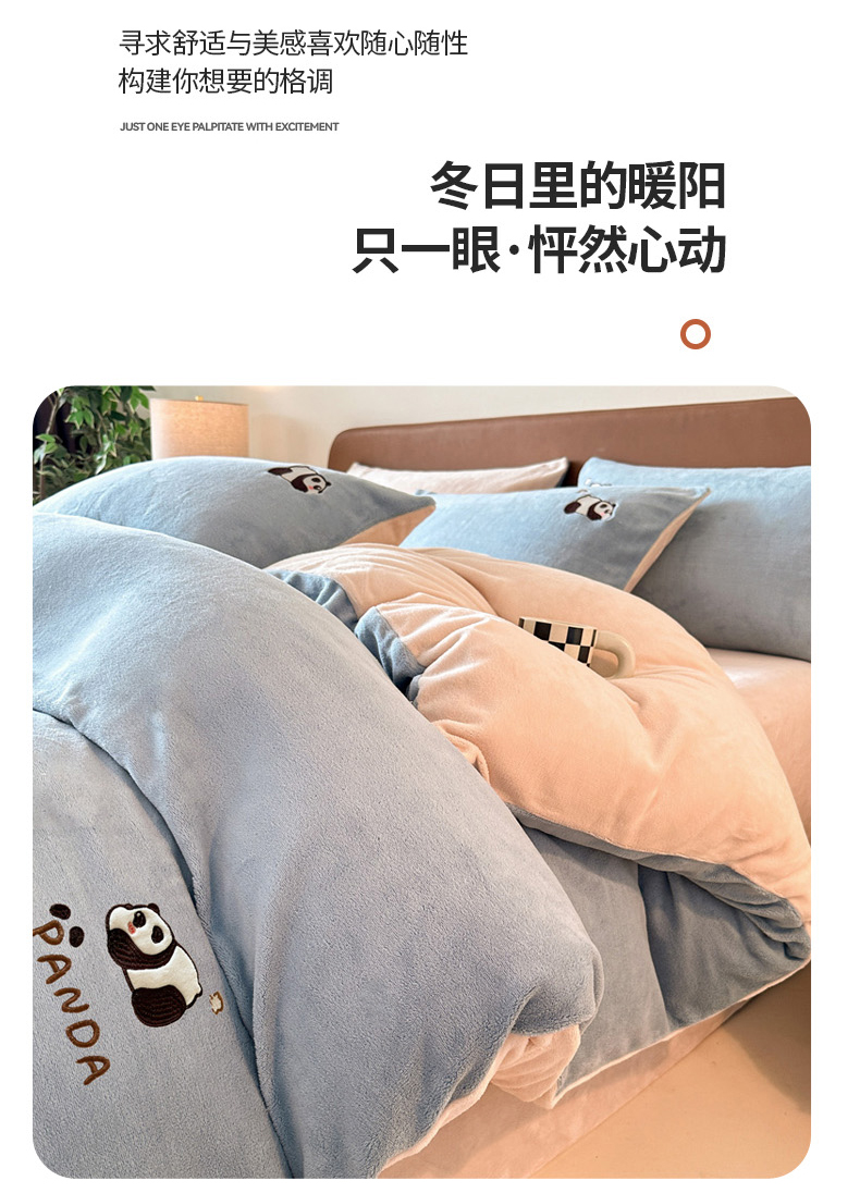当前位置: 91家纺网 > 商品网购 > 床品套件 > 四件套 > 牛奶绒四件套 > 万盛家纺 2025新款卡通贴补绣牛奶绒四件套 熊猫-冰雪蓝-卡其