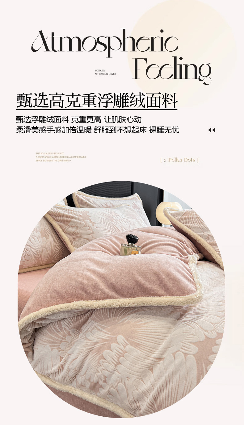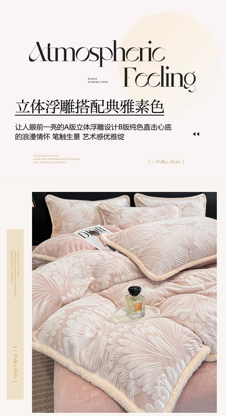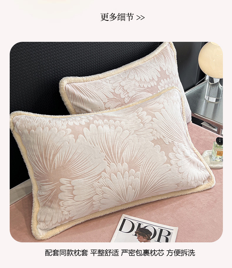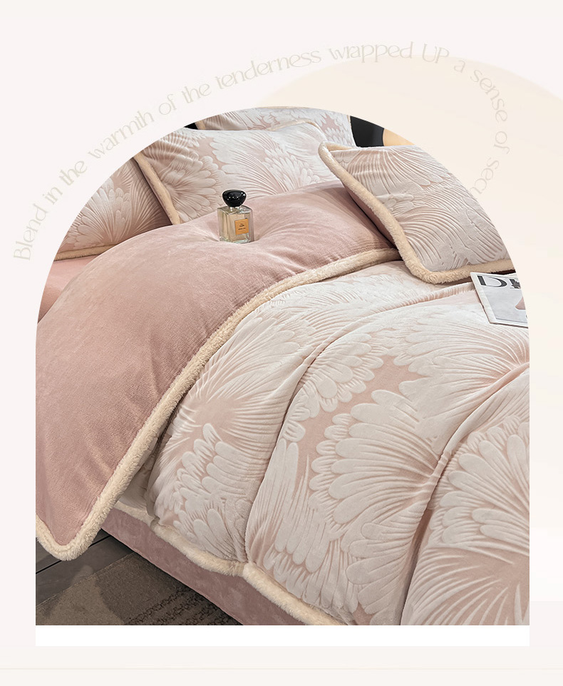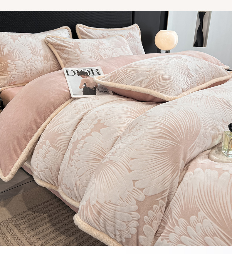 • 91家纺网 家纺一手货源 找家纺 倾慕家纺 2024新款兔毛包边浮雕绒套件单被套 兔毛包边烟花粉