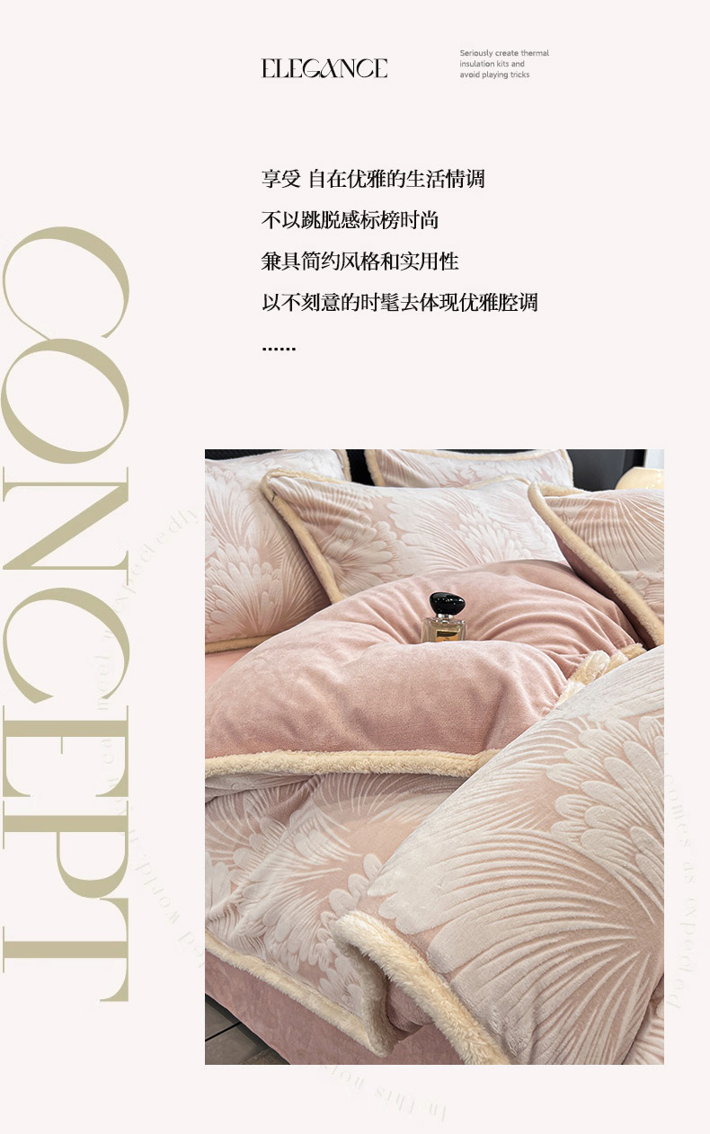 倾慕家纺 2024新款兔毛包边浮雕绒套件单被套 兔毛包边烟花粉