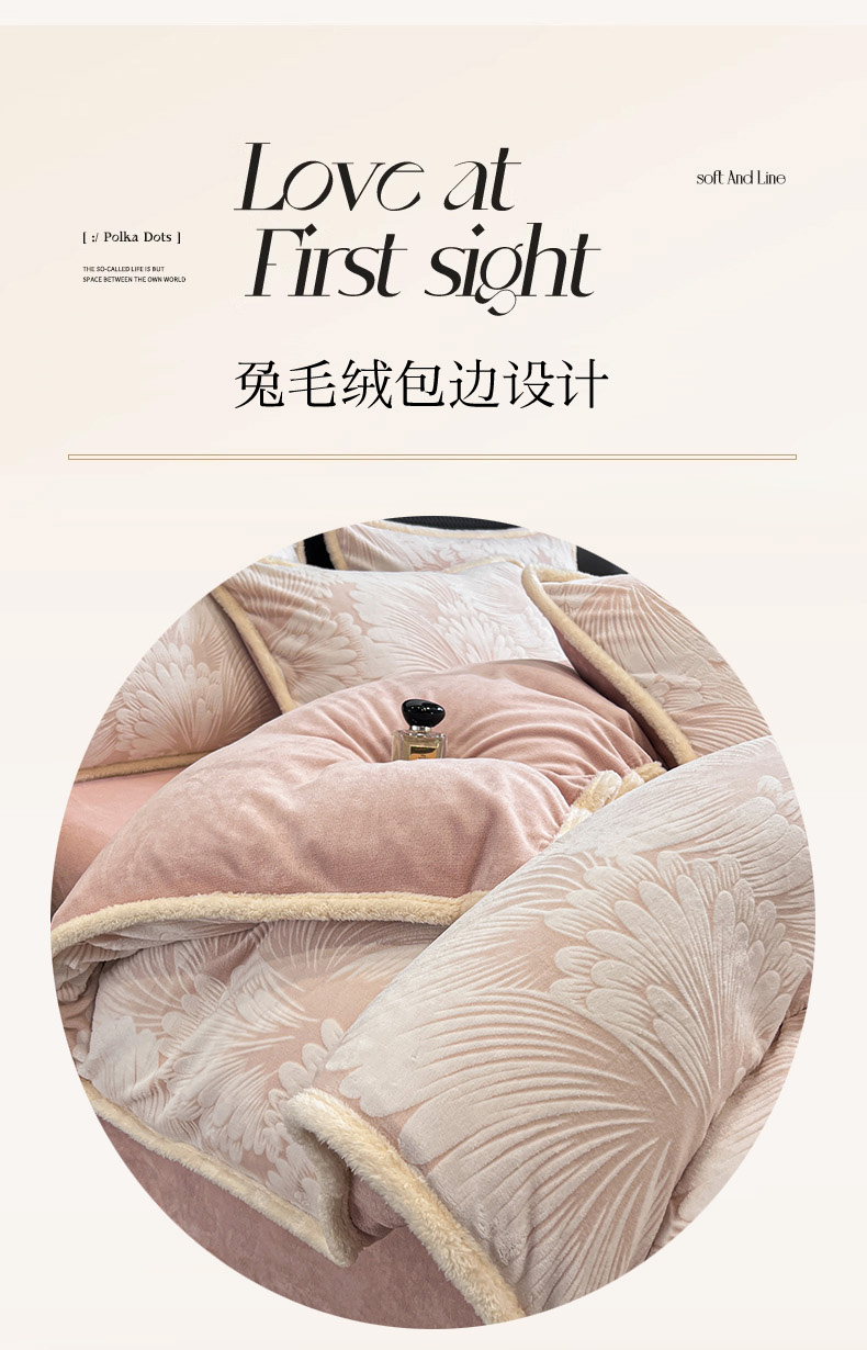 当前位置: 91家纺网 > 商品网购 > 床上用品 > 被套 > 倾慕家纺 2024新款兔毛包边浮雕绒套件单被套 兔毛包边烟花粉