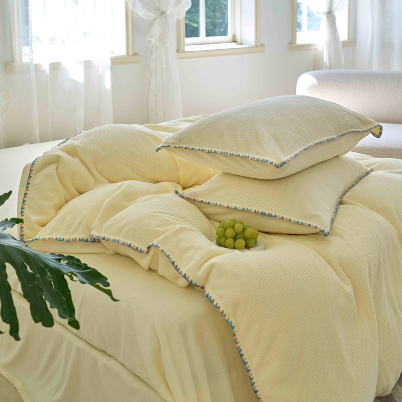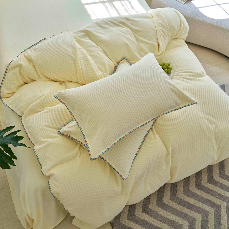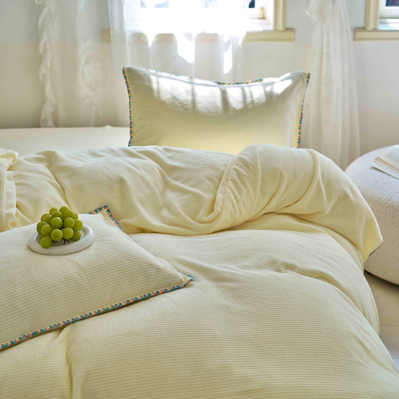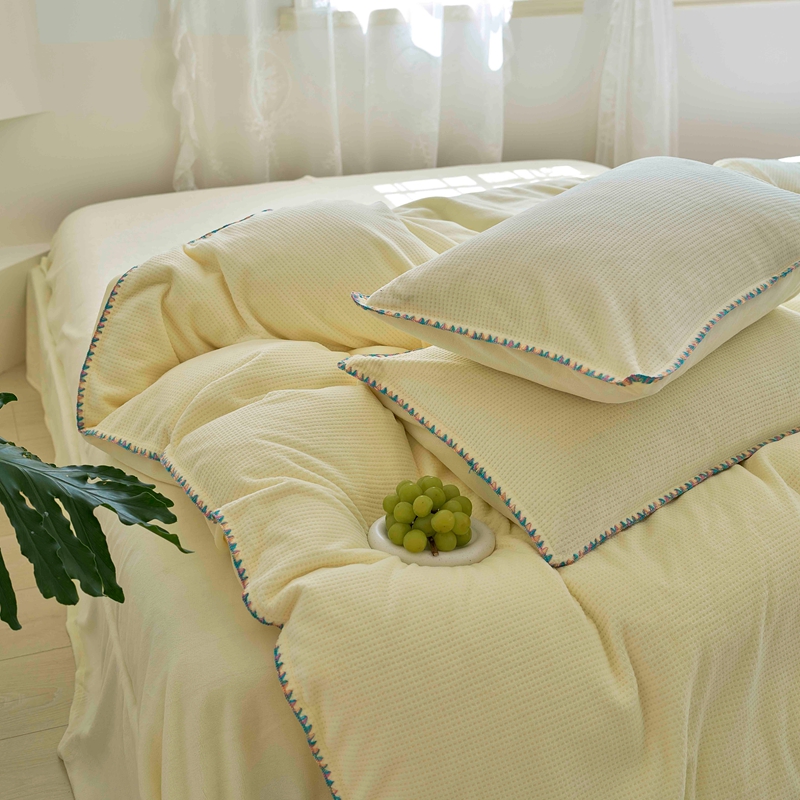 洋铭区(原狠狠爱) 2024新款华夫格 绒(彩边)四件套 樱草黄