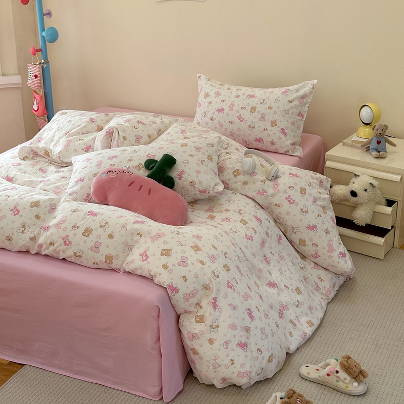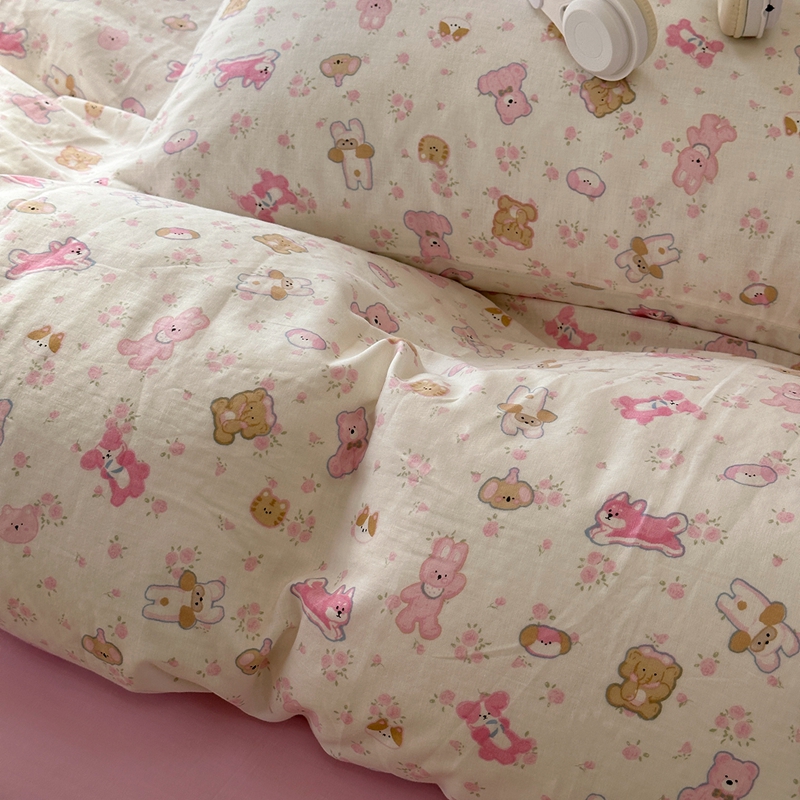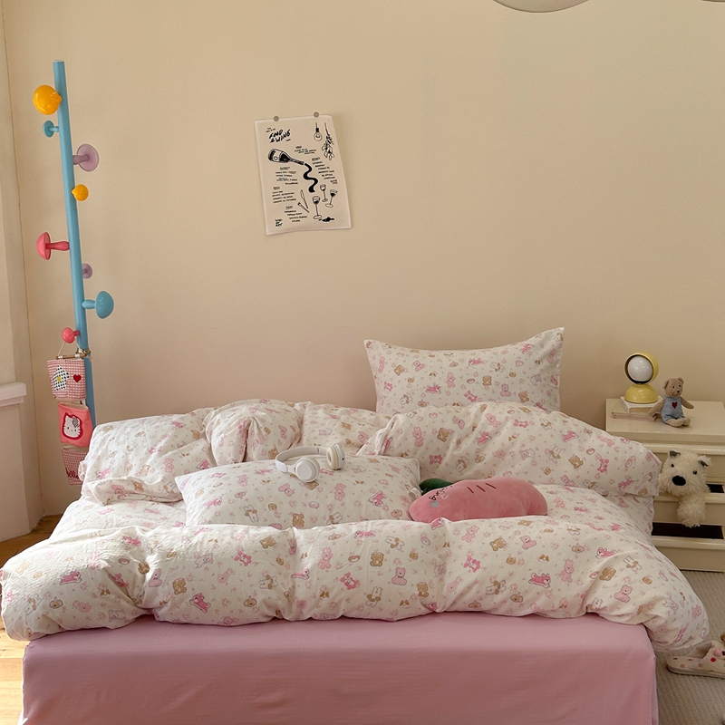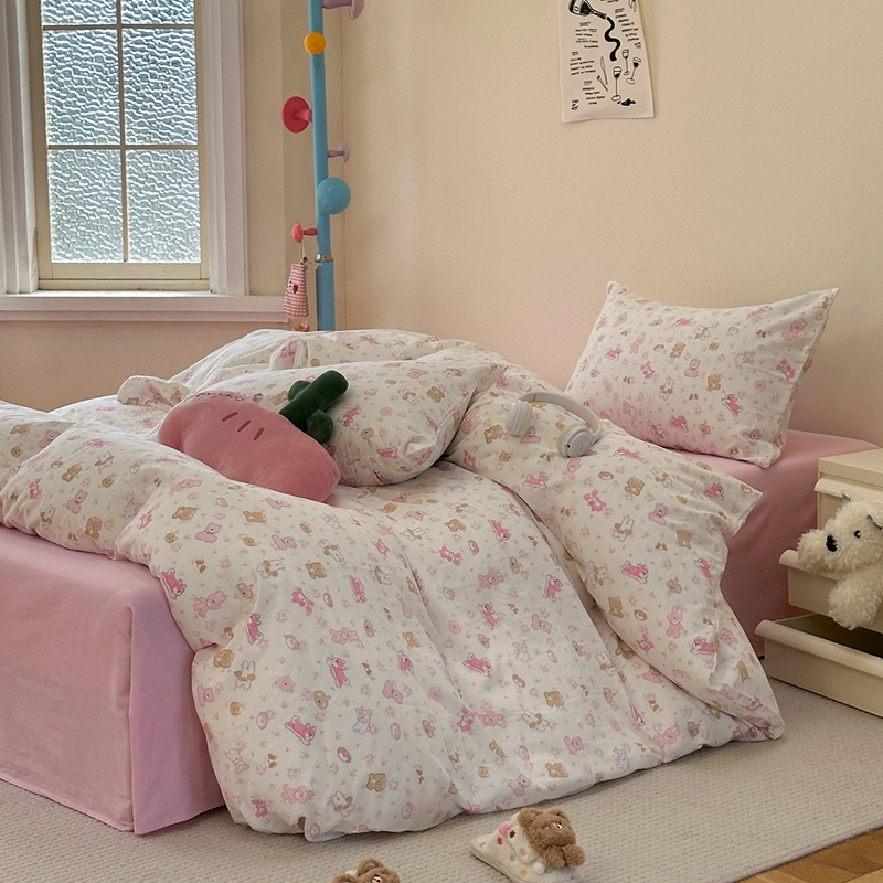 洋铭区(原狠狠爱) 2024新款无边全棉双层纱四件套 花儿粉兔
