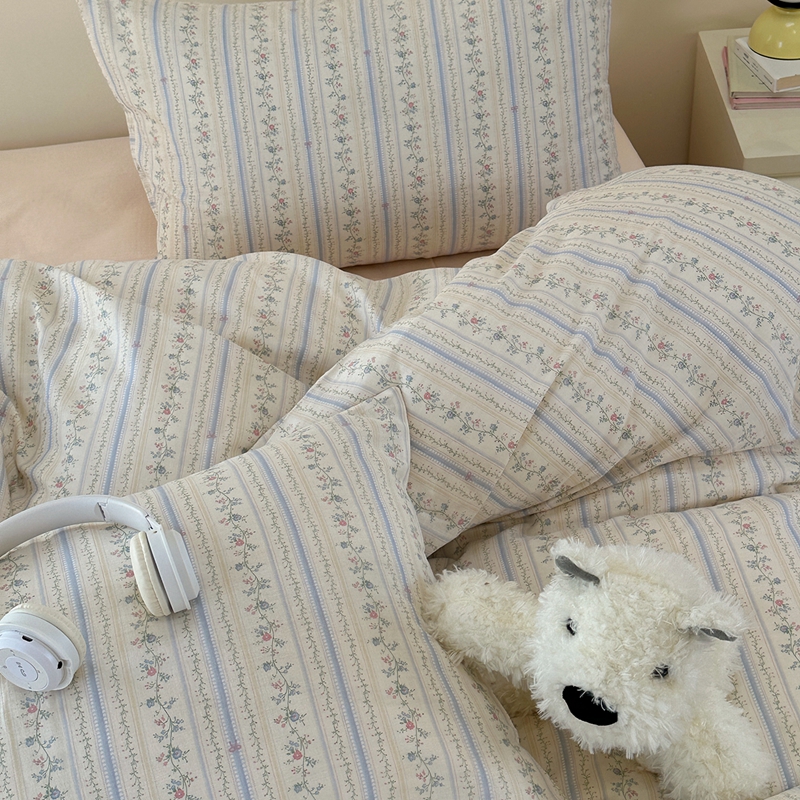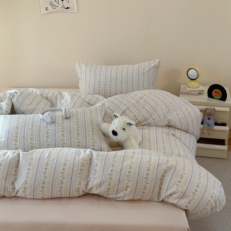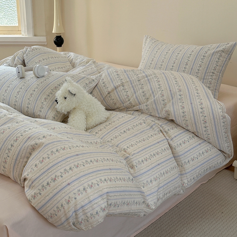 洋铭区(原狠狠爱) 2024新款无边全棉双层纱四件套 紫藤蓝花