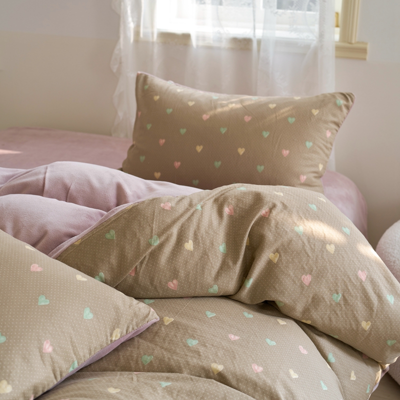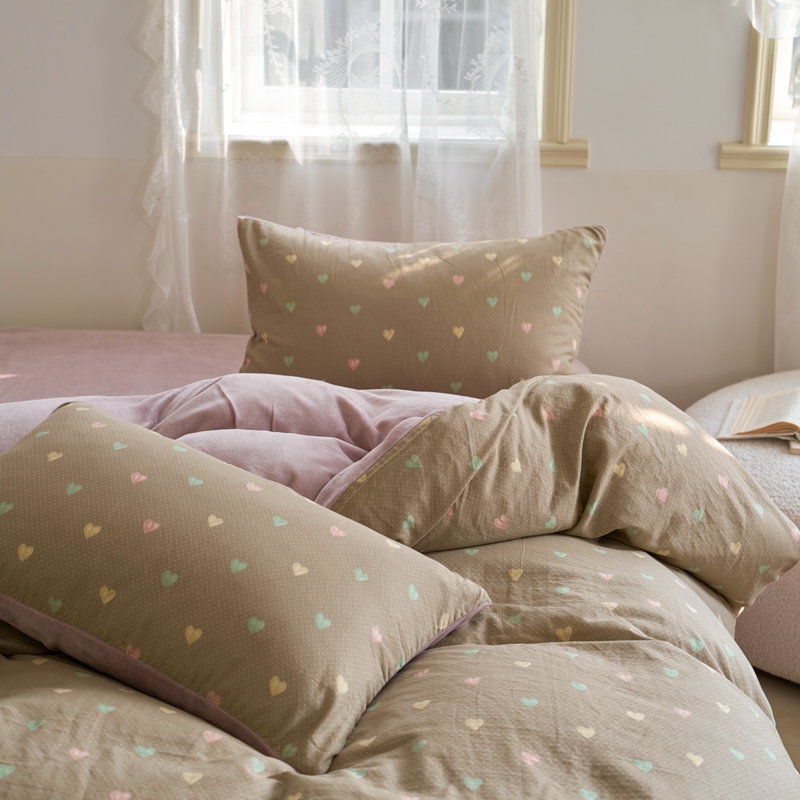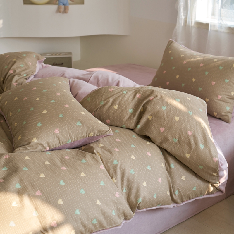 洋铭区(原狠狠爱) 2024新款双层纱牛奶绒四件套系列 斑点小爱心