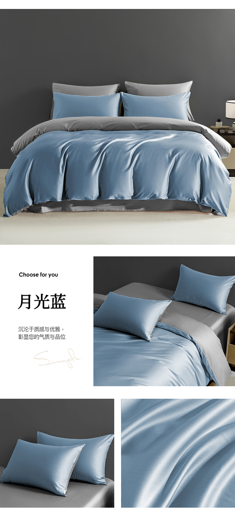 商品名称:淳绵家居 2024新款50*50S长绒棉纯色定制四件套特殊尺寸一件可定被套枕套床单床笠-孚星 月光蓝+星辰灰
