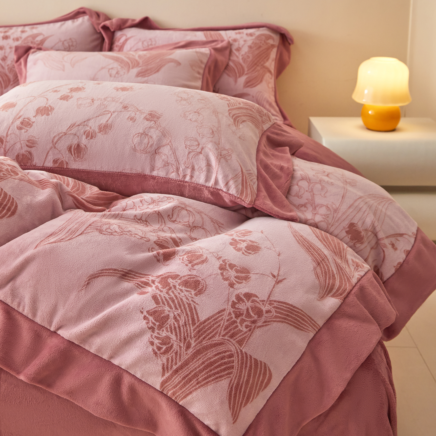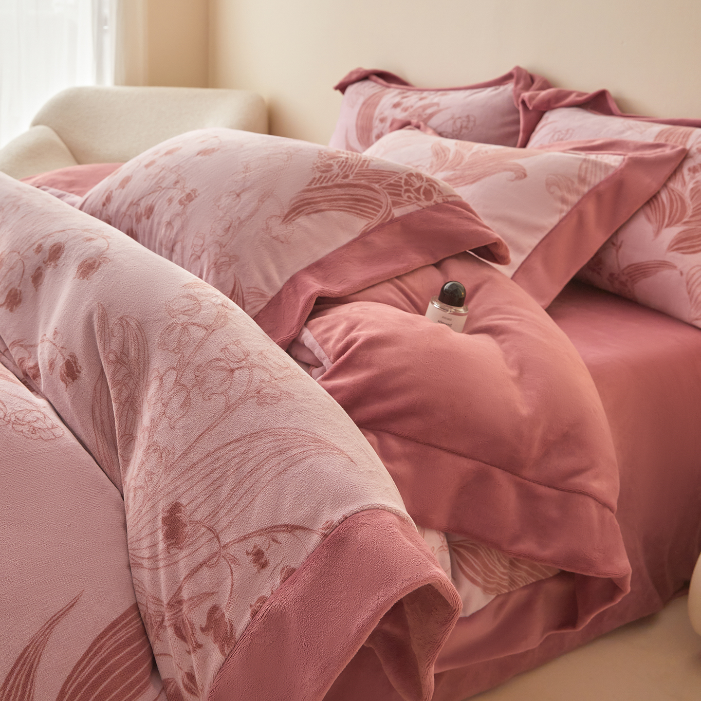 新方向 2025新款高克重240克A类全消光印花牛奶绒四件套-铃兰 铃兰-豆沙