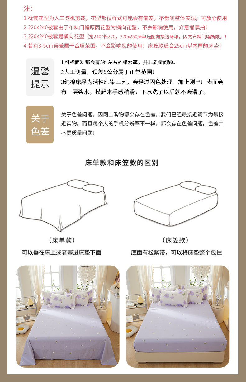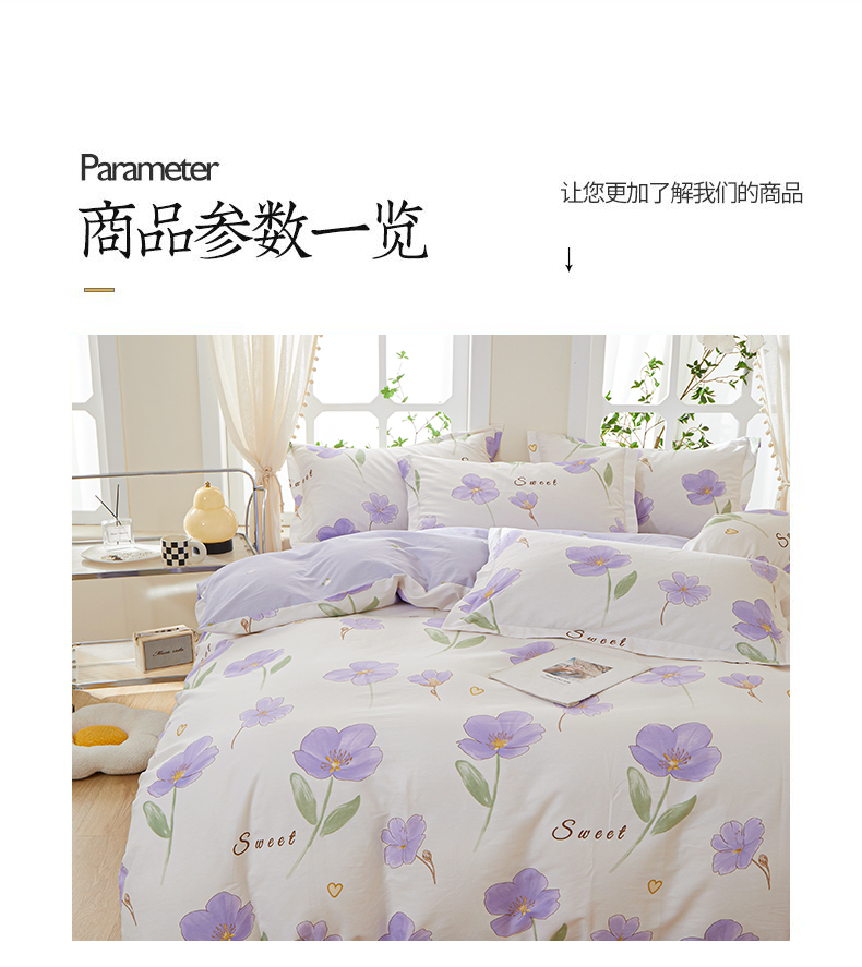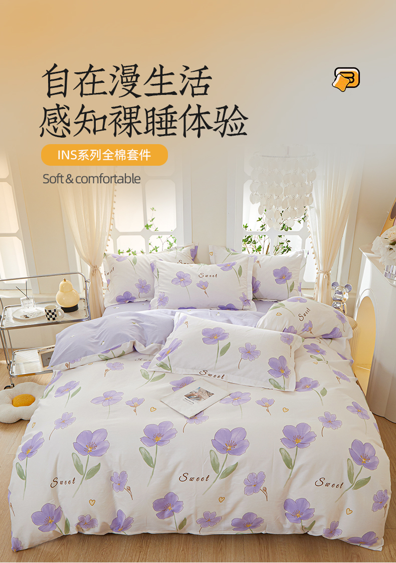 当前位置: 91家纺网 > 商品网购 > 床品套件 > 四件套 > 全棉活性四件套 > 钰伶 新款全棉简约12868印花纯棉四件套(预留6厘米缩水尺寸)甜花韵美