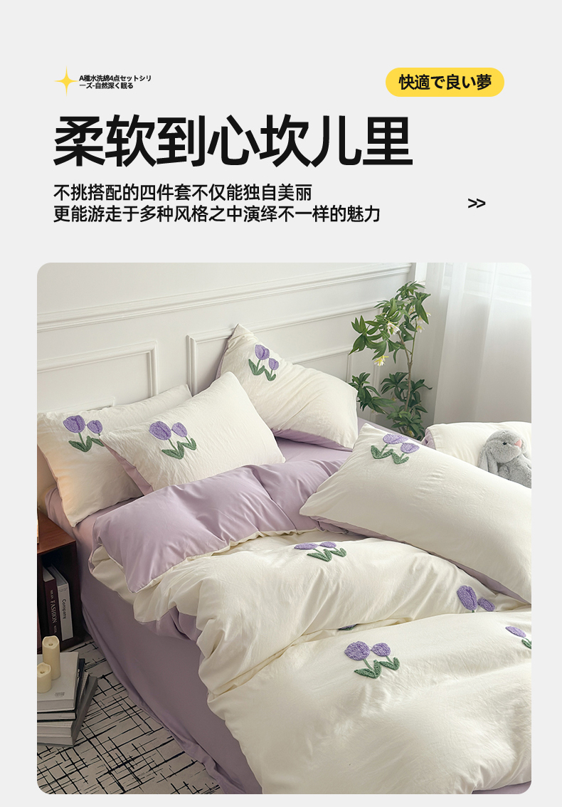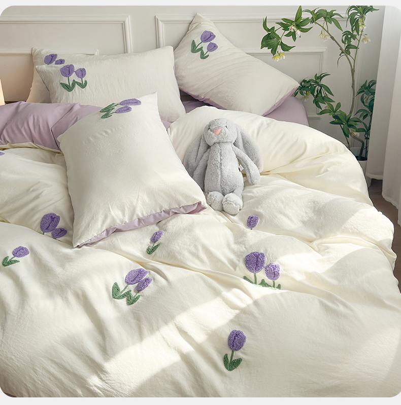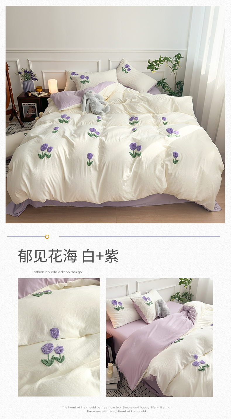 当前位置: 91家纺网 > 商品网购 > 床品套件 > 四件套 > 毛巾绣四件套 > 多品家纺 2024新款水洗棉毛巾绣【四件套】郁见花海 郁见花海白+紫