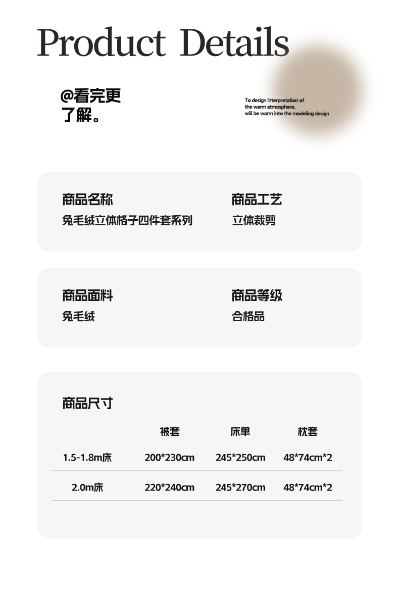 商品名称:(总)博纳家纺 2024新款兔毛绒立体格子四件套系列