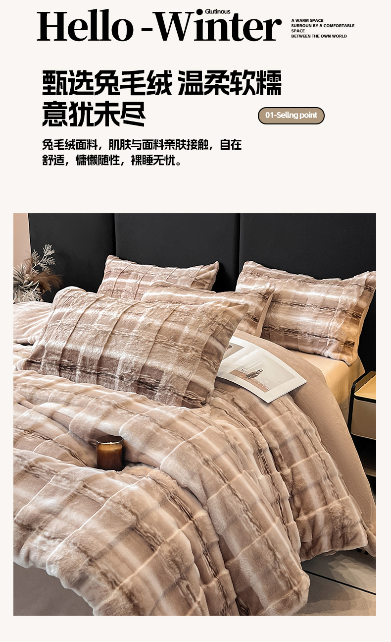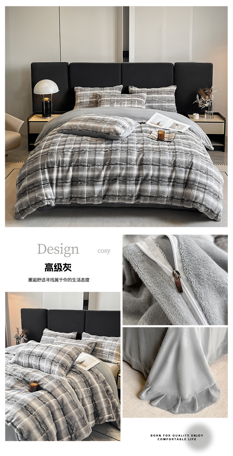 (总)博纳家纺 2024新款兔毛绒立体格子四件套系列