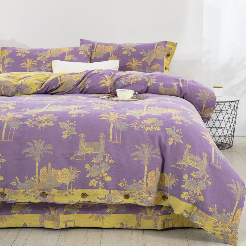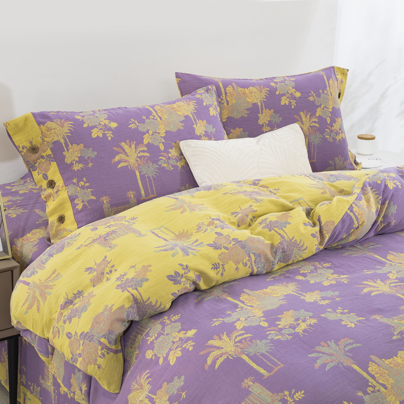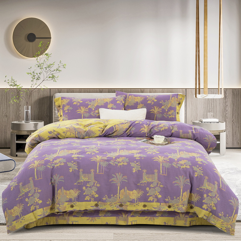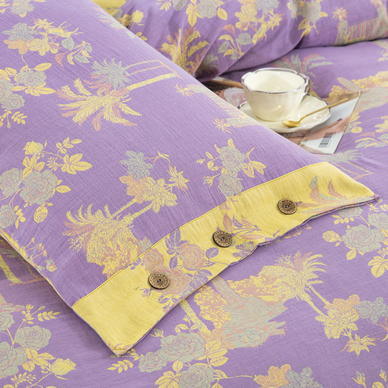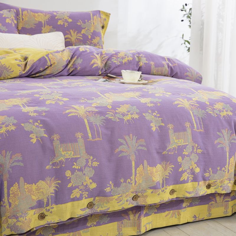 (总)鲁爱 2025新款全棉色织双层纱纽扣款四件套