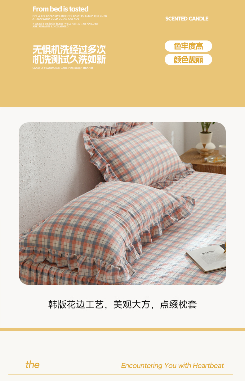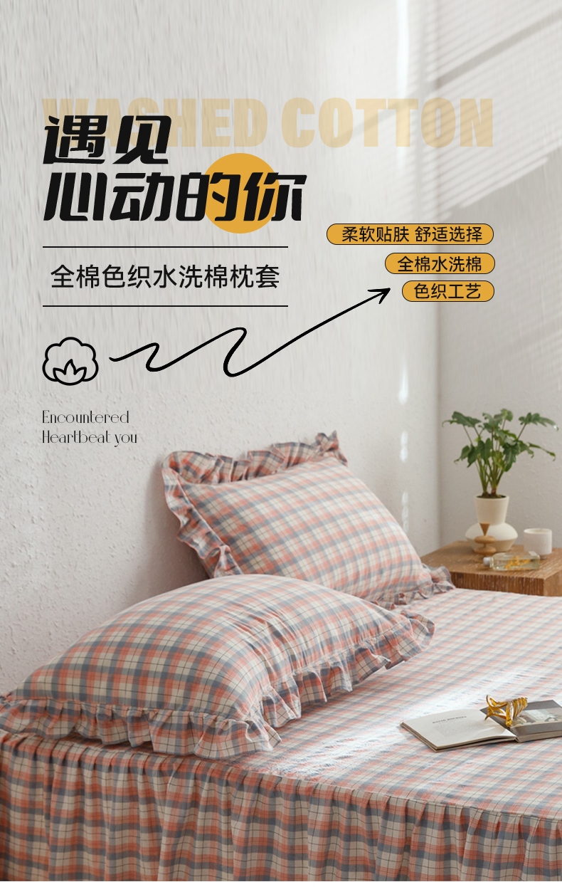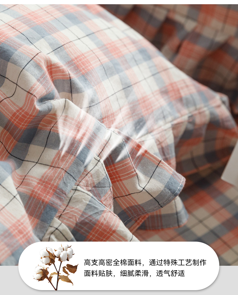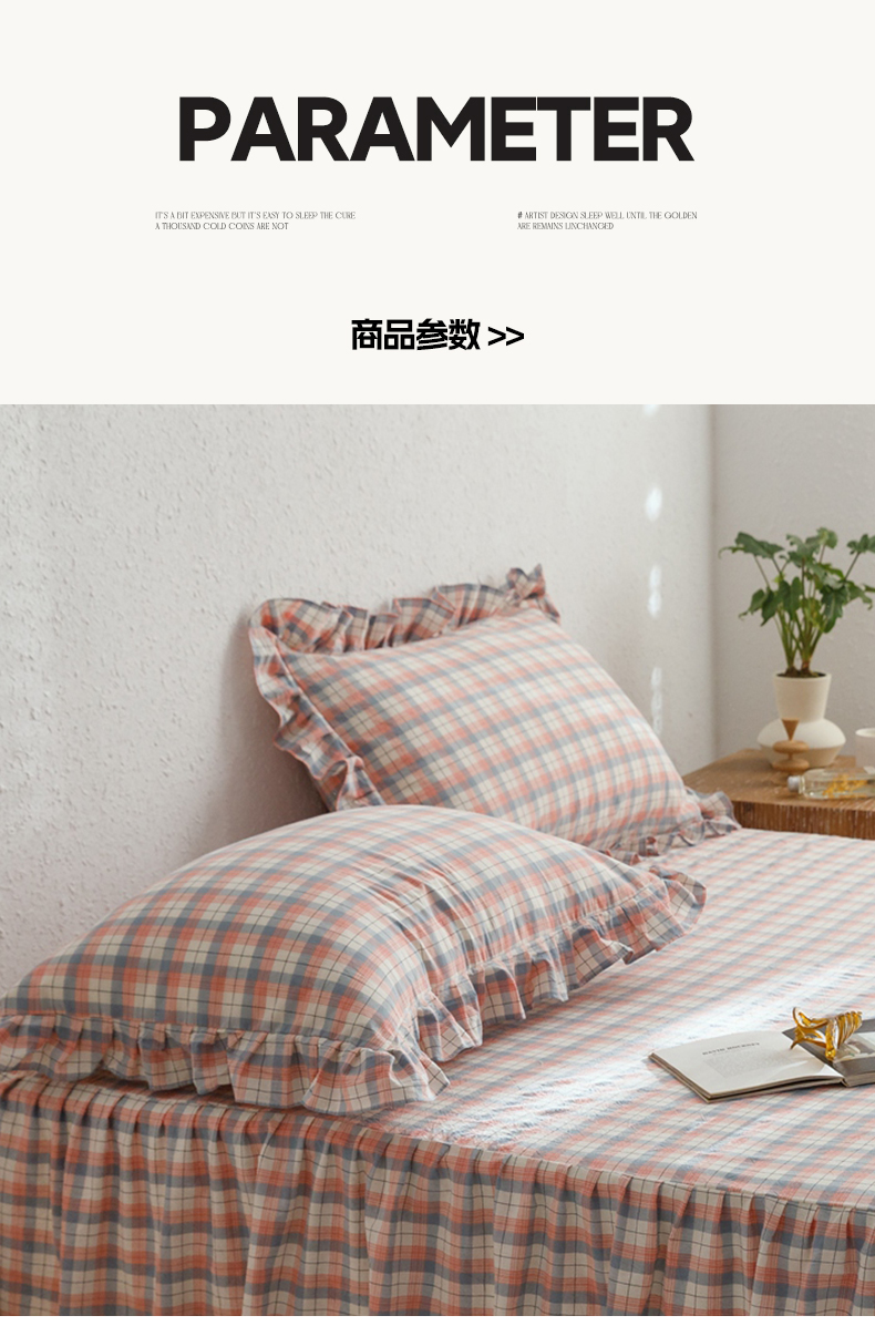 商品名称:忘忧草 2024新款全棉格子花边枕套 春风曲-粉