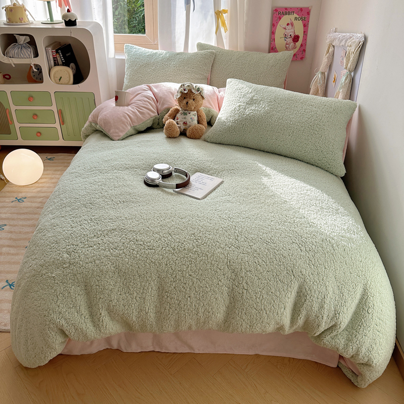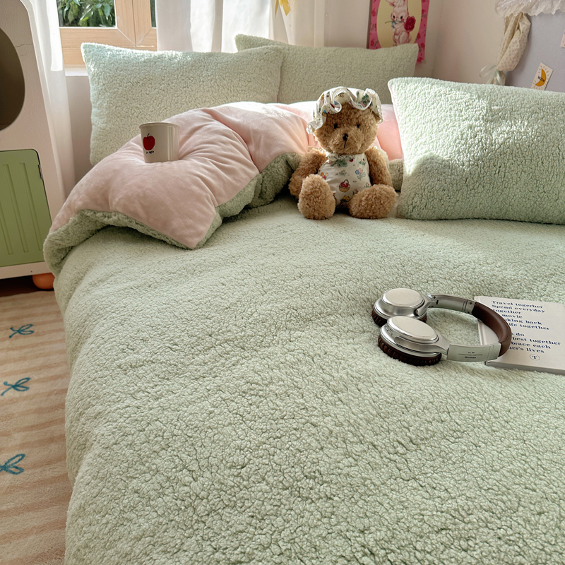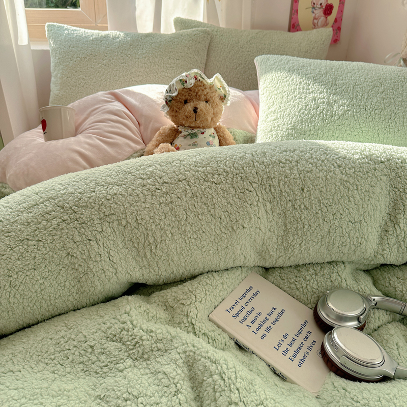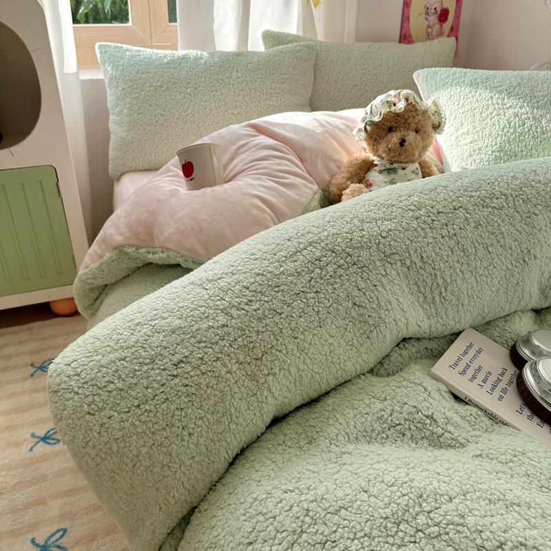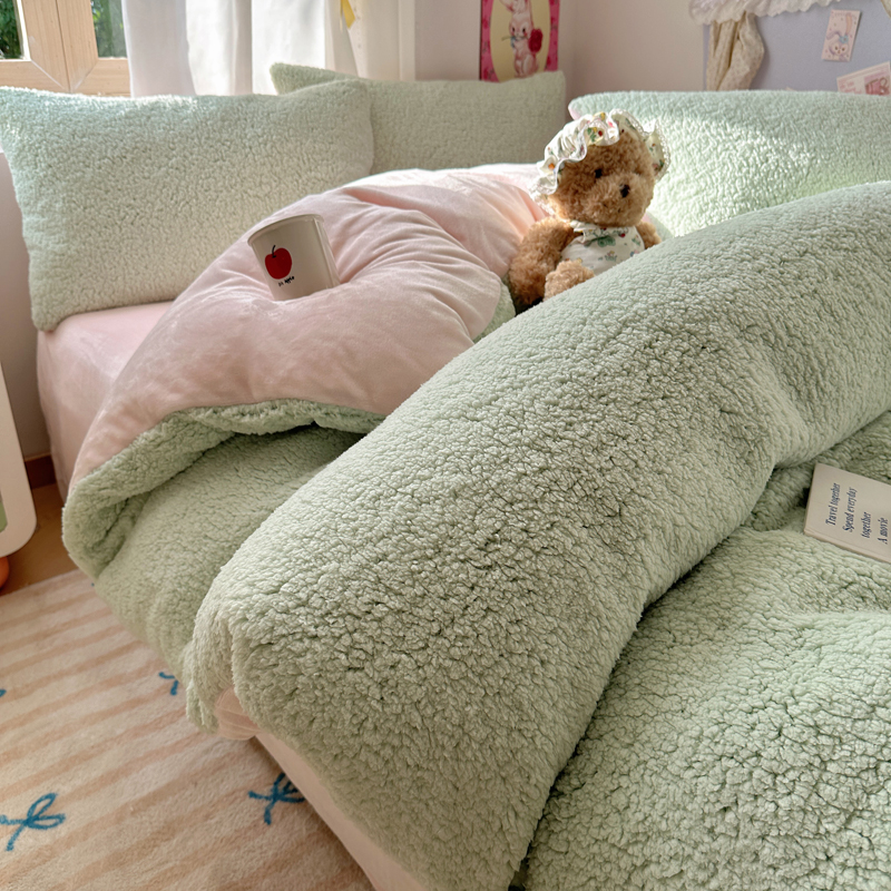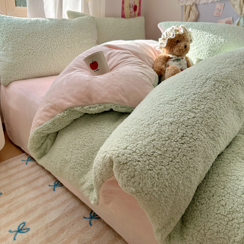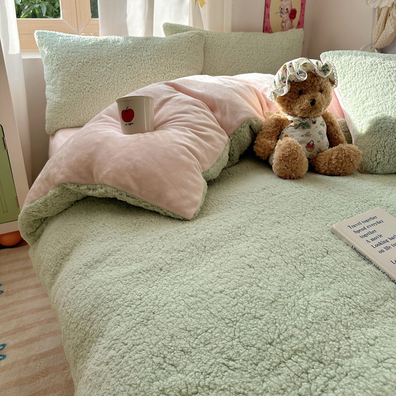 顾里家纺 2024新款ins韩系牛奶羊羔绒套件 羊羔绿粉