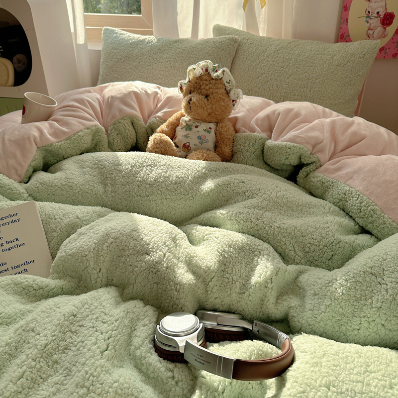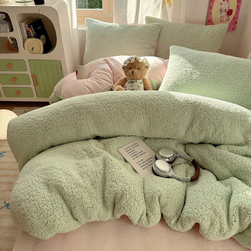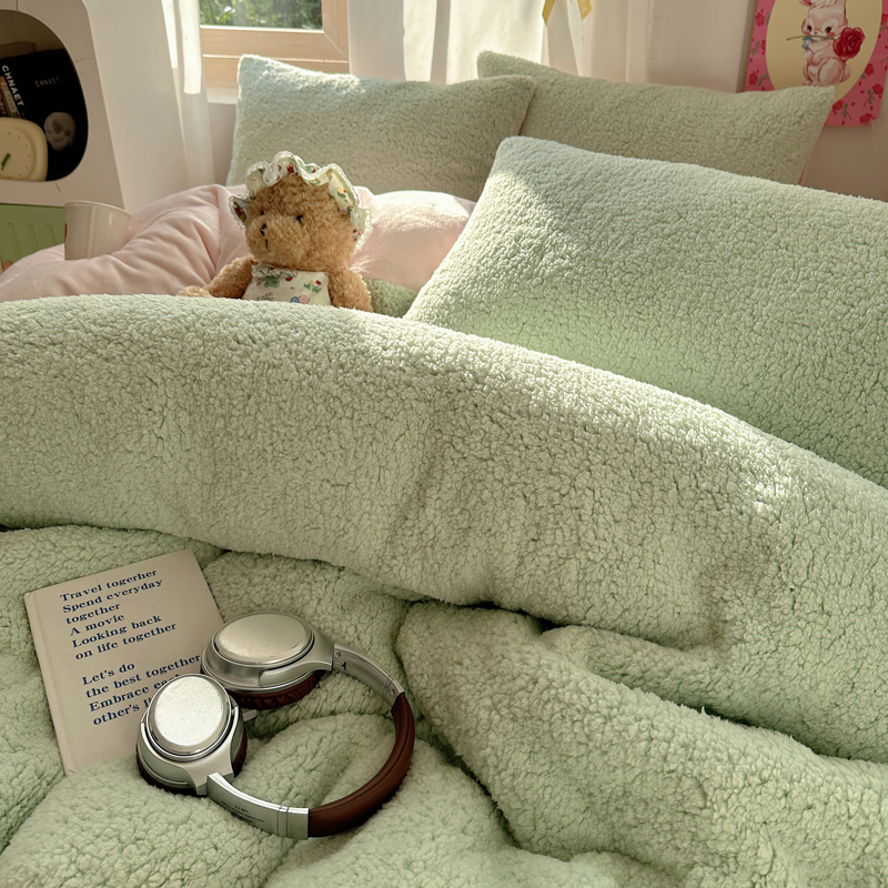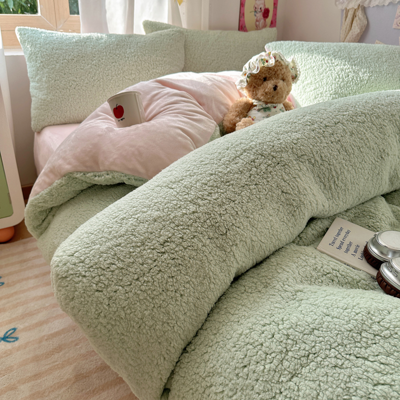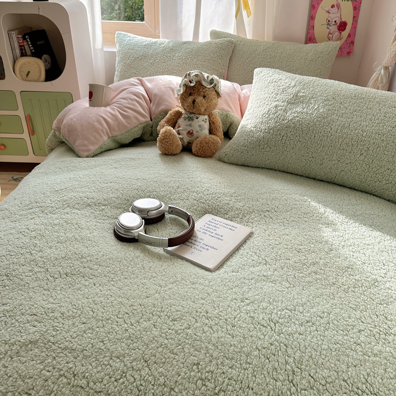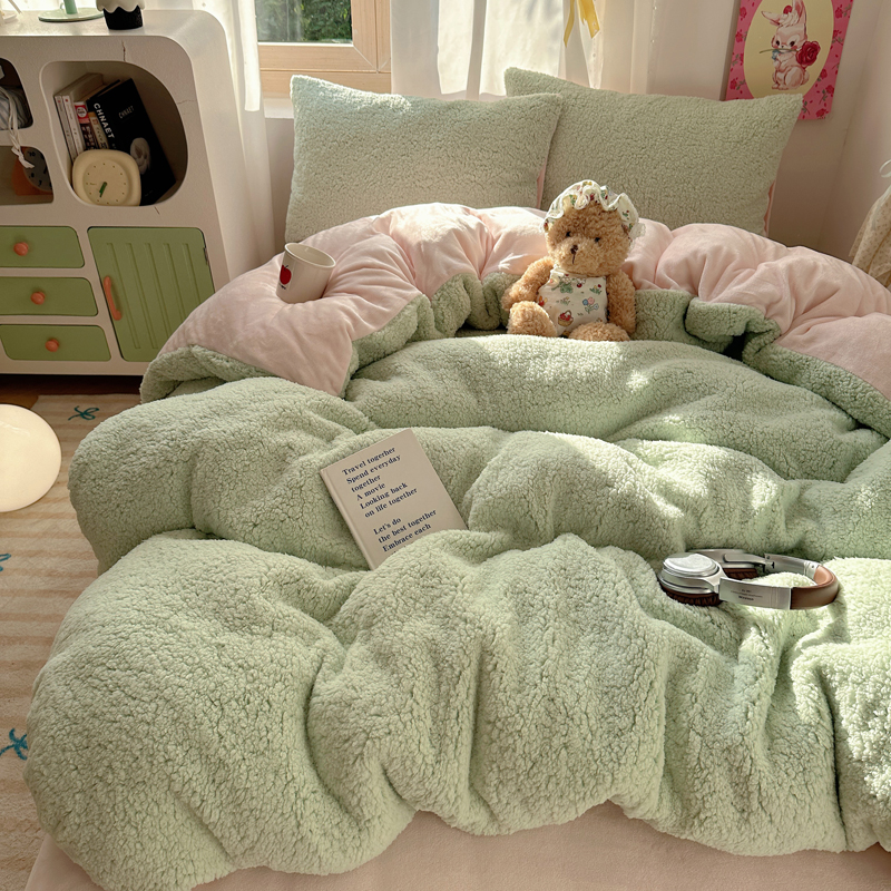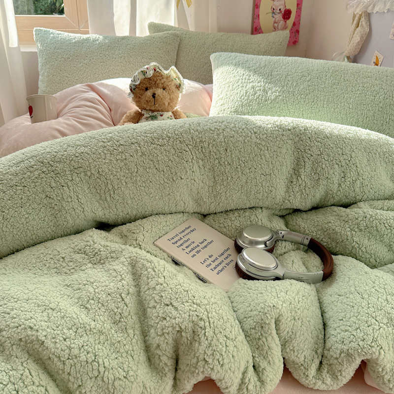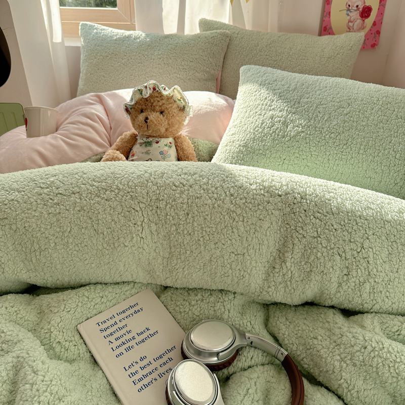 顾里家纺 2024新款ins韩系牛奶羊羔绒套件 羊羔绿粉