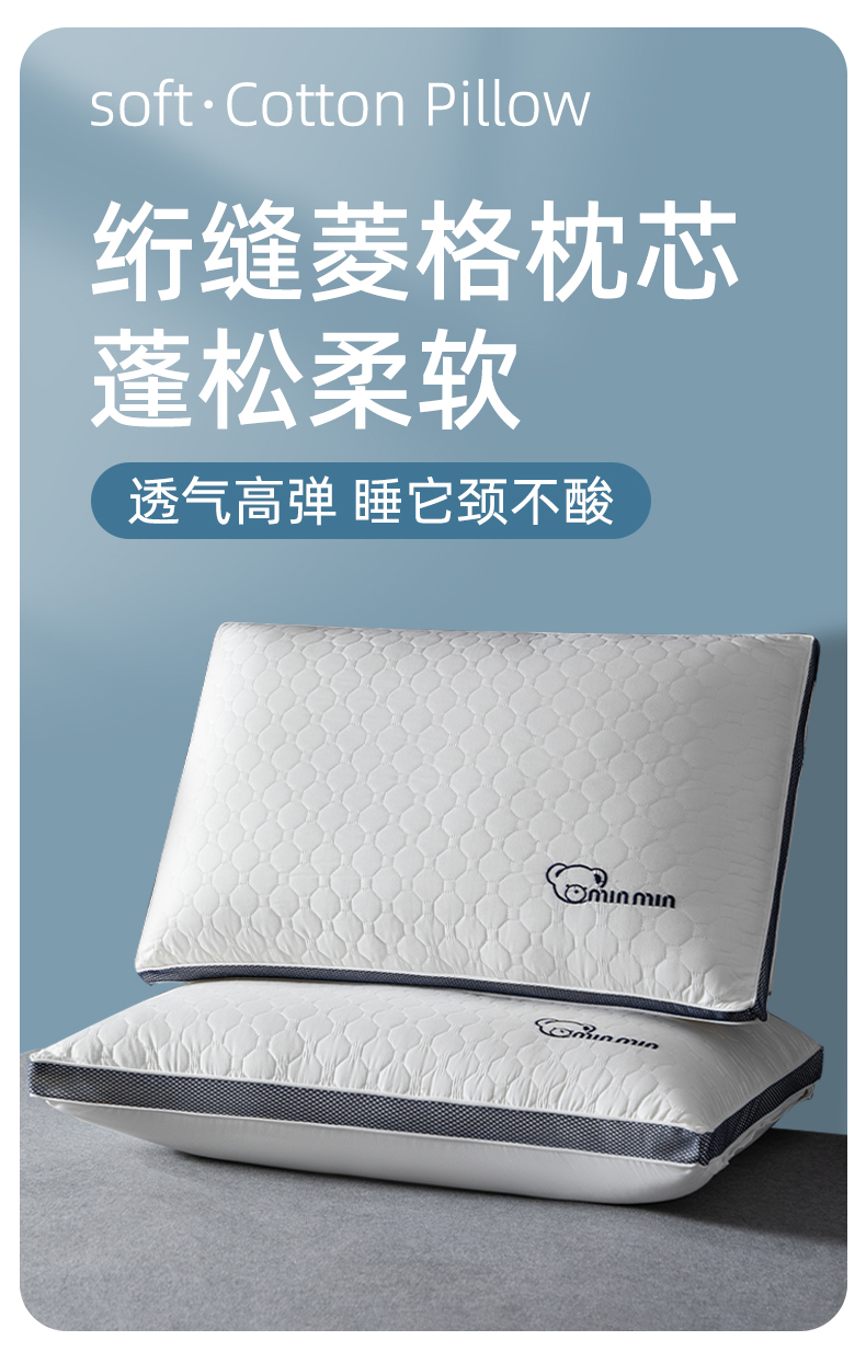 (总)织布人 2024新款枕芯海澜同款A类立体minmin小熊刺绣枕头护颈枕芯48*74cm/只