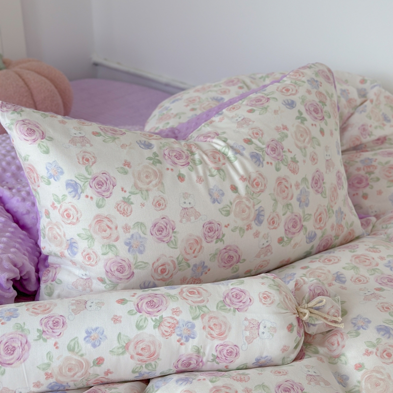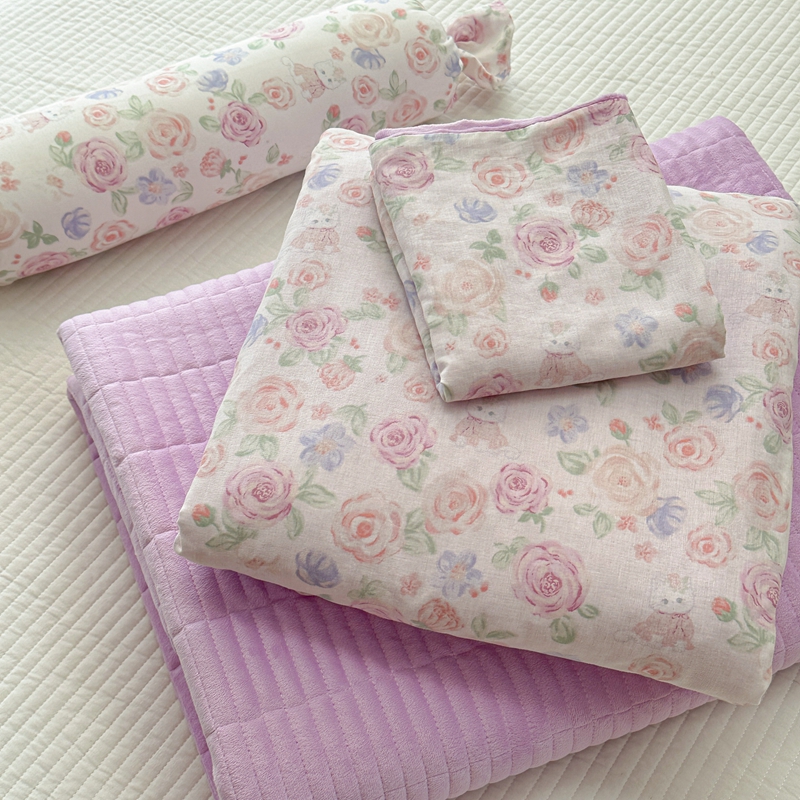 柚子YOUTH 2024新款全棉双层纱豆豆婴儿绒床盖四件套 花园小猫