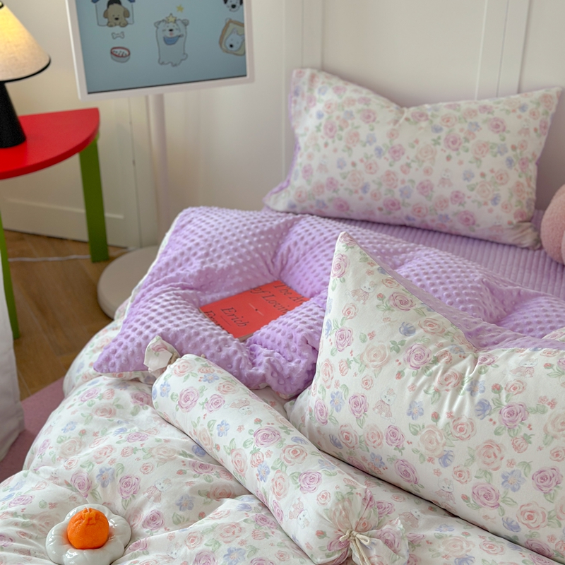 (总)柚子YOUTH 225新款全棉双层纱球球款四件套,薄荷绿条,波点霉霉,波点小丑,蓝心,芊芊结,碎花点点