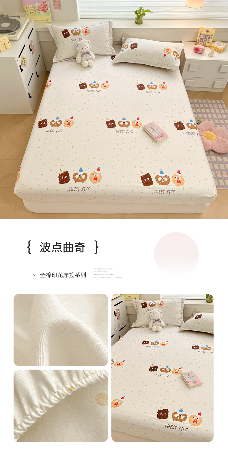• 91家纺网 家纺一手货源 找家纺 A类母婴级卡通花卉儿童纯棉全棉床单纯棉全棉床笠全棉纯棉床单全棉纯棉床笠三件套 波点曲奇