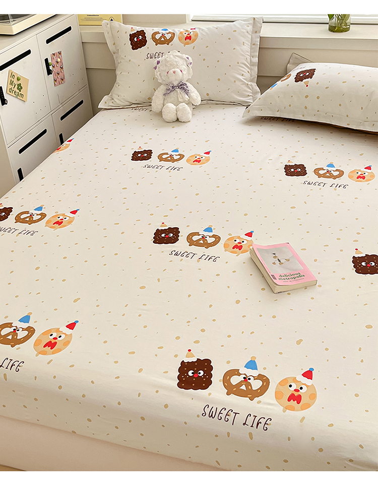 A类母婴级卡通花卉儿童纯棉全棉床单纯棉全棉床笠全棉纯棉床单全棉纯棉床笠三件套 波点曲奇