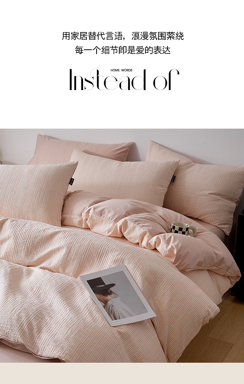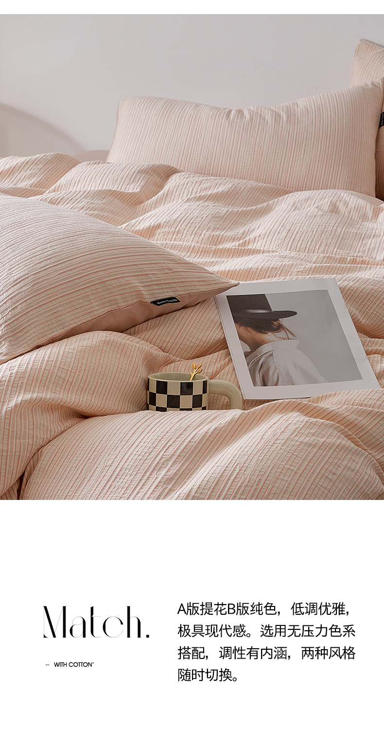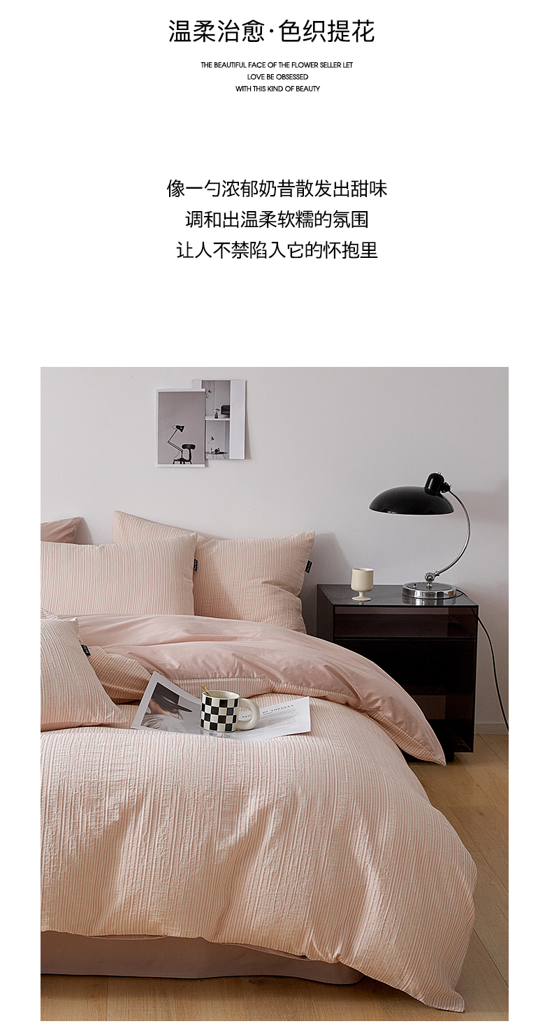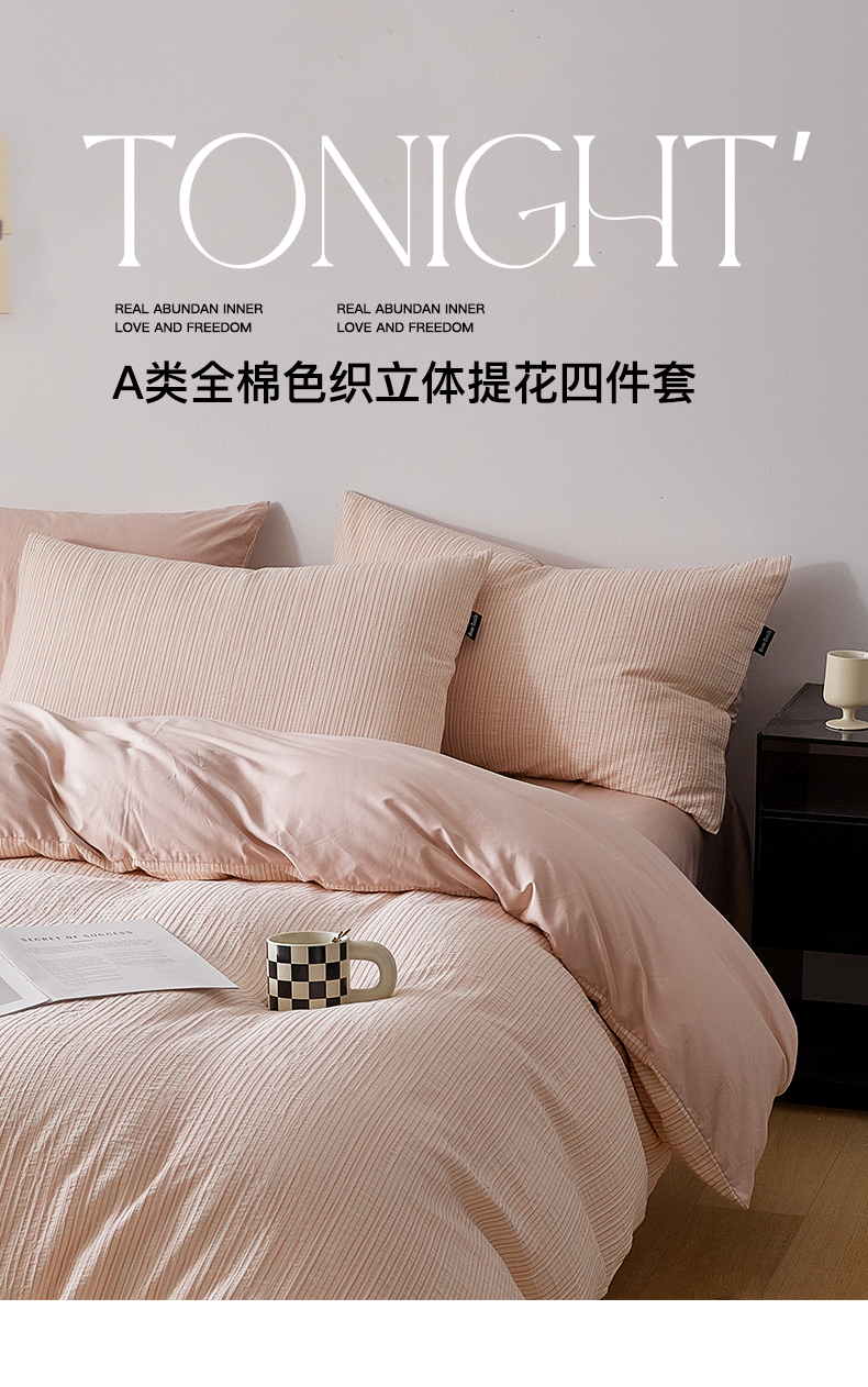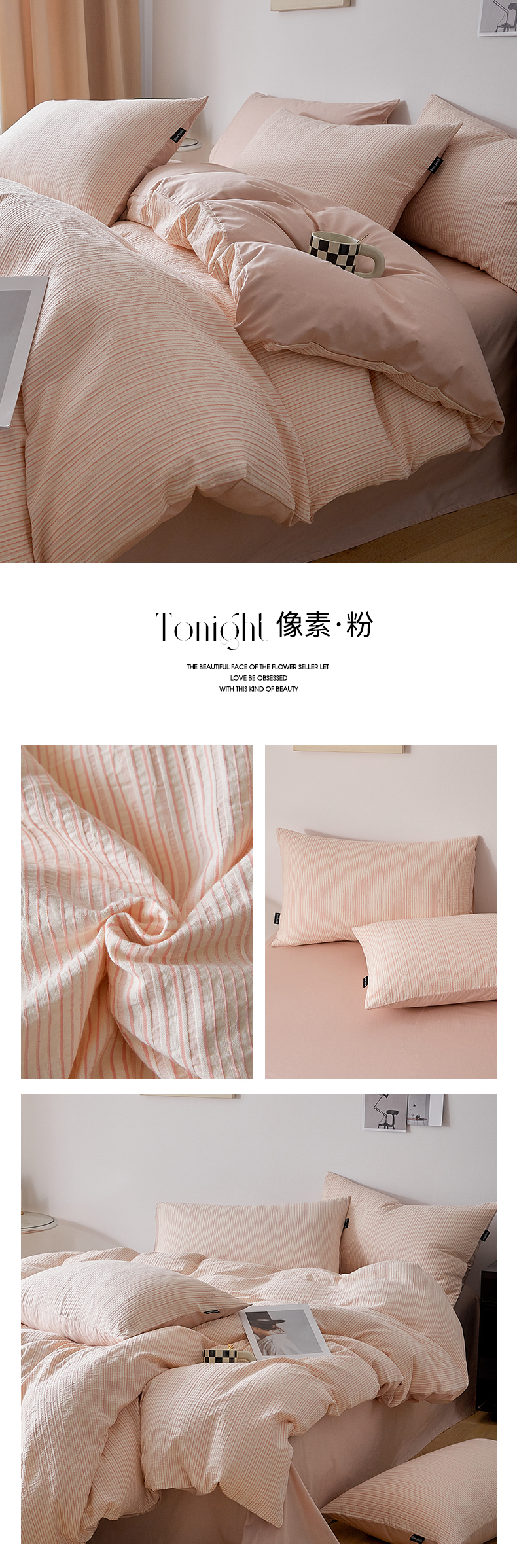 商品名称:2025新款A类全棉水洗色织立体提花纯棉四件套 像素-粉