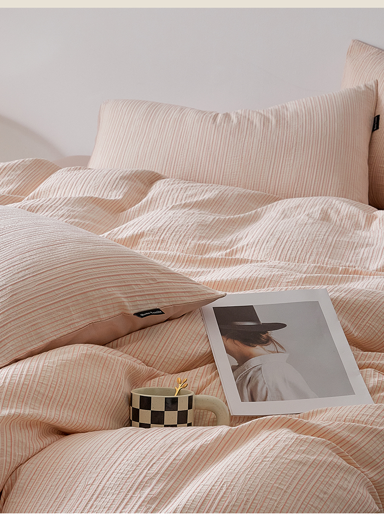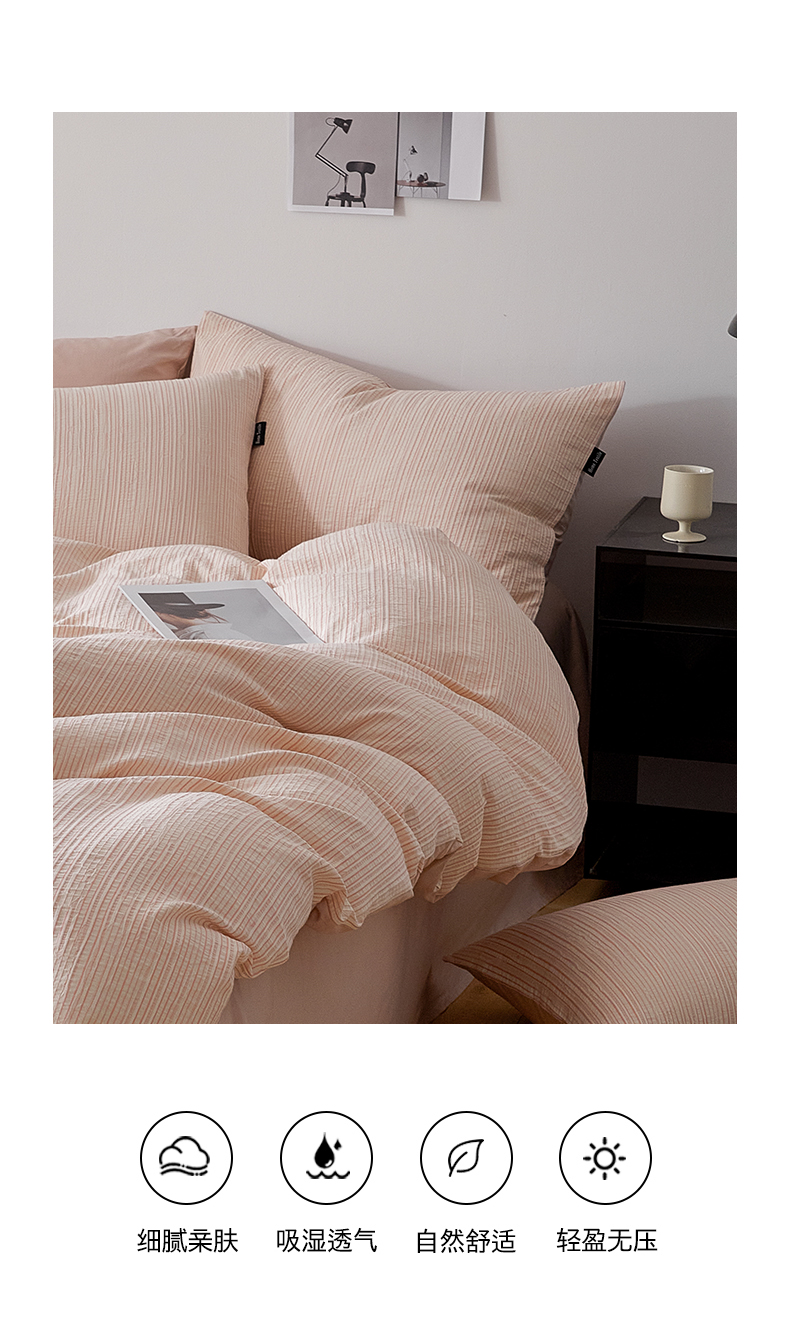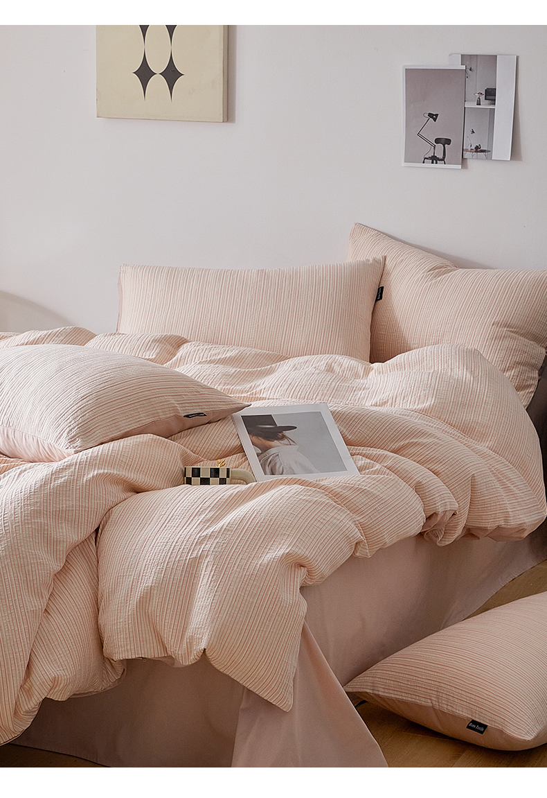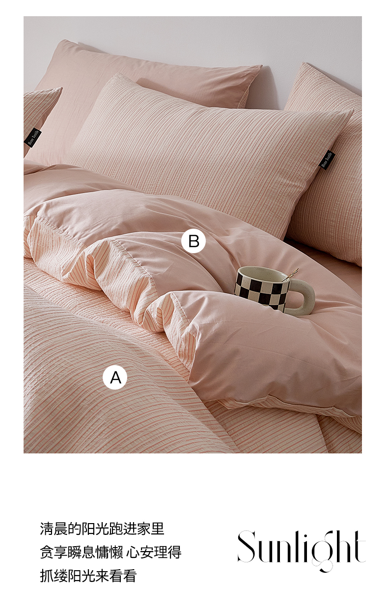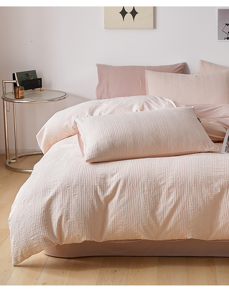 商品名称:2025新款A类全棉水洗色织立体提花纯棉四件套 像素-粉
