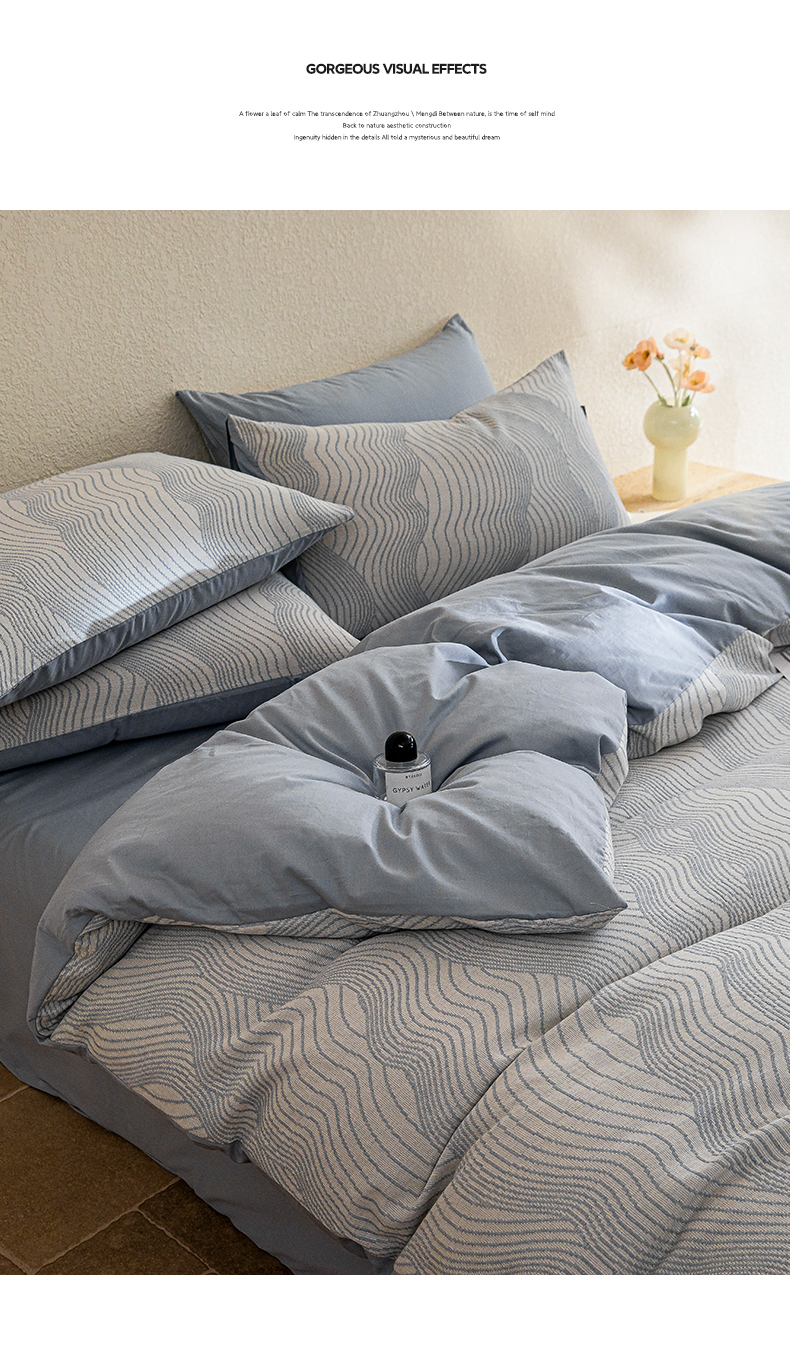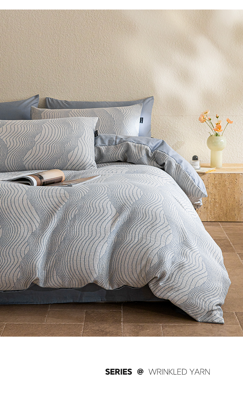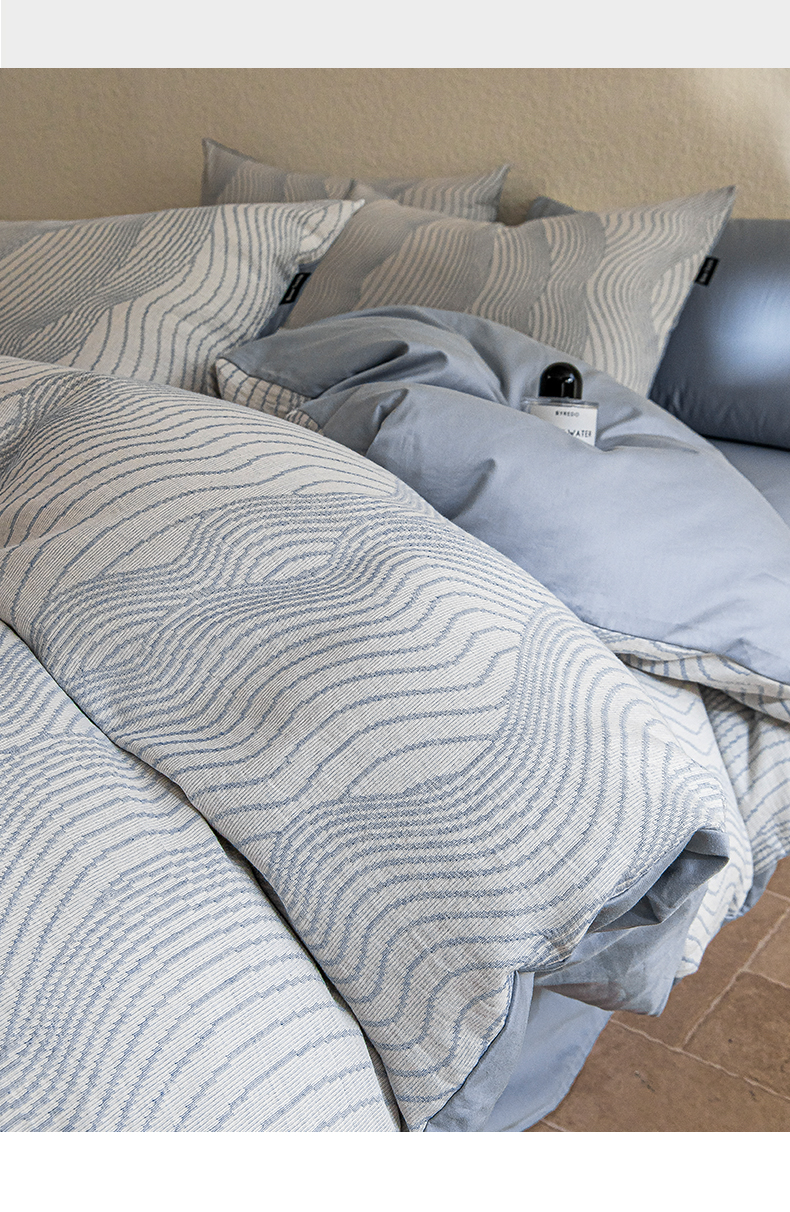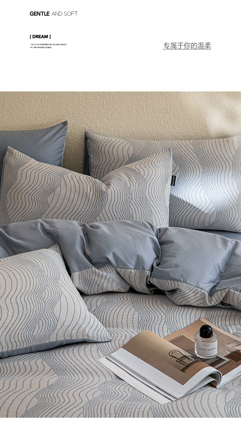 商品名称:2025新款全棉A类三层纱大提花纯棉四件套 浮影流光-兰