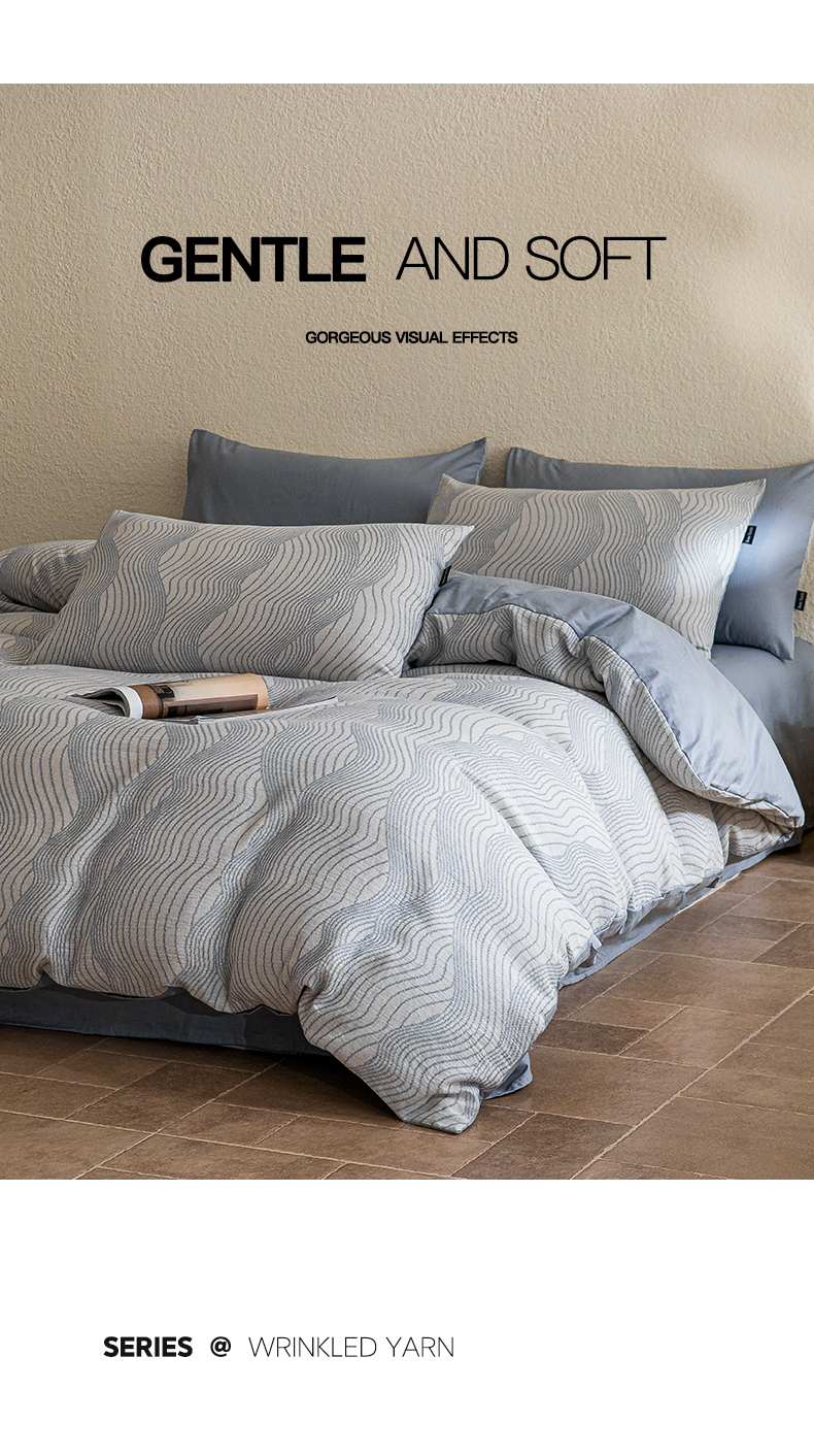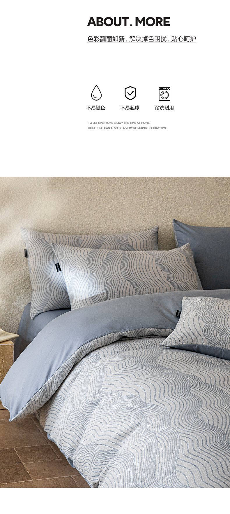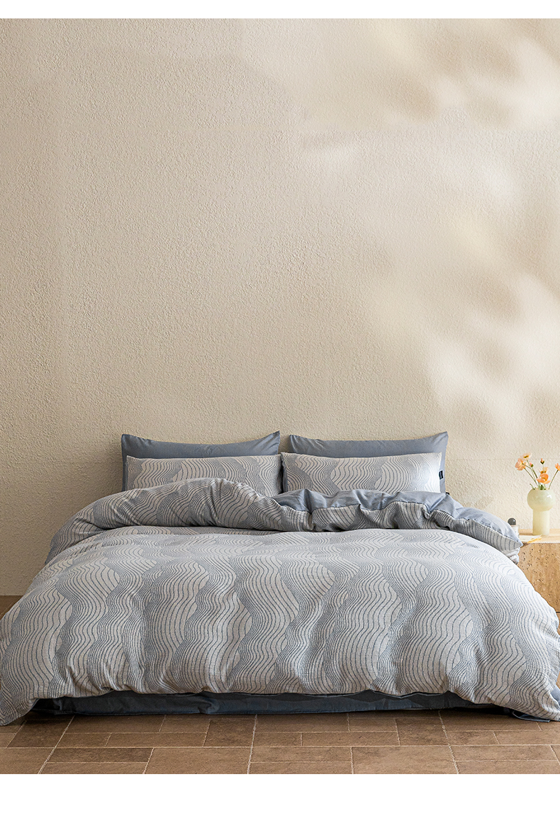 商品名称:2025新款全棉A类三层纱大提花纯棉四件套 浮影流光-兰