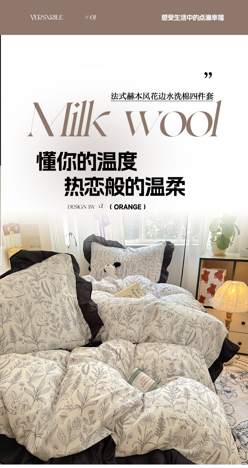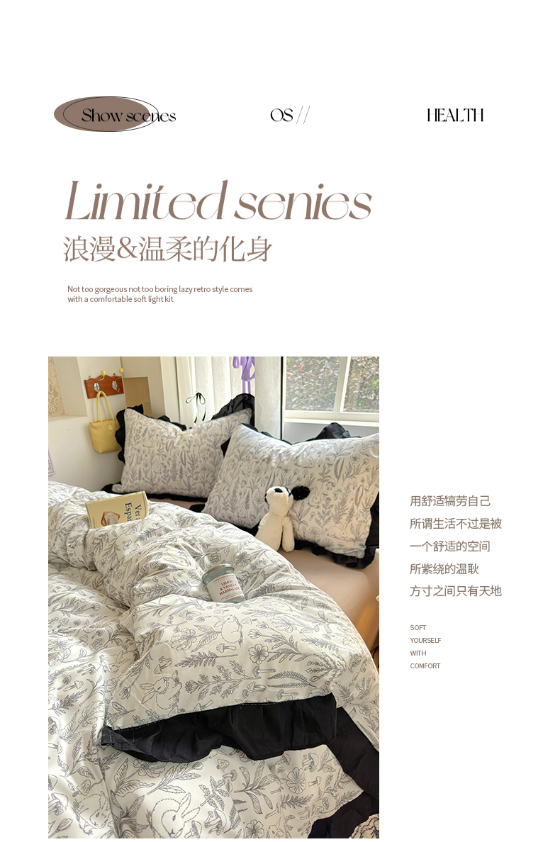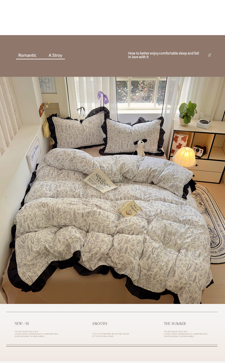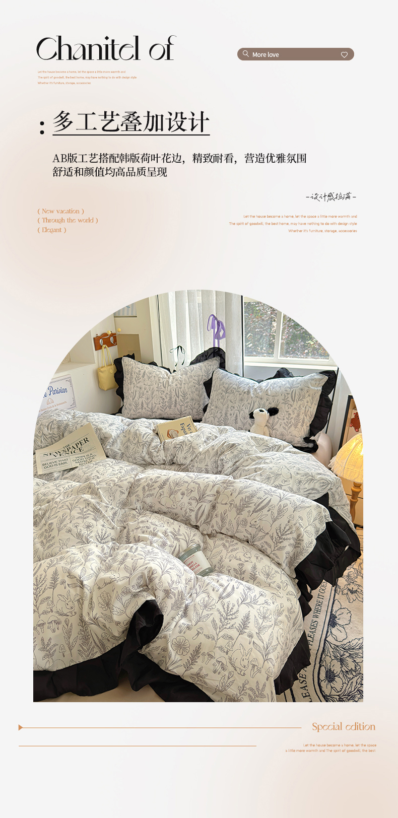 当前位置: 91家纺网 > 商品网购 > 床品套件 > 四件套 > 其它四件套 > 2025年新款法式韩式浪漫赫本风黑色花边水洗m印花四件套 韩系-兔小姐