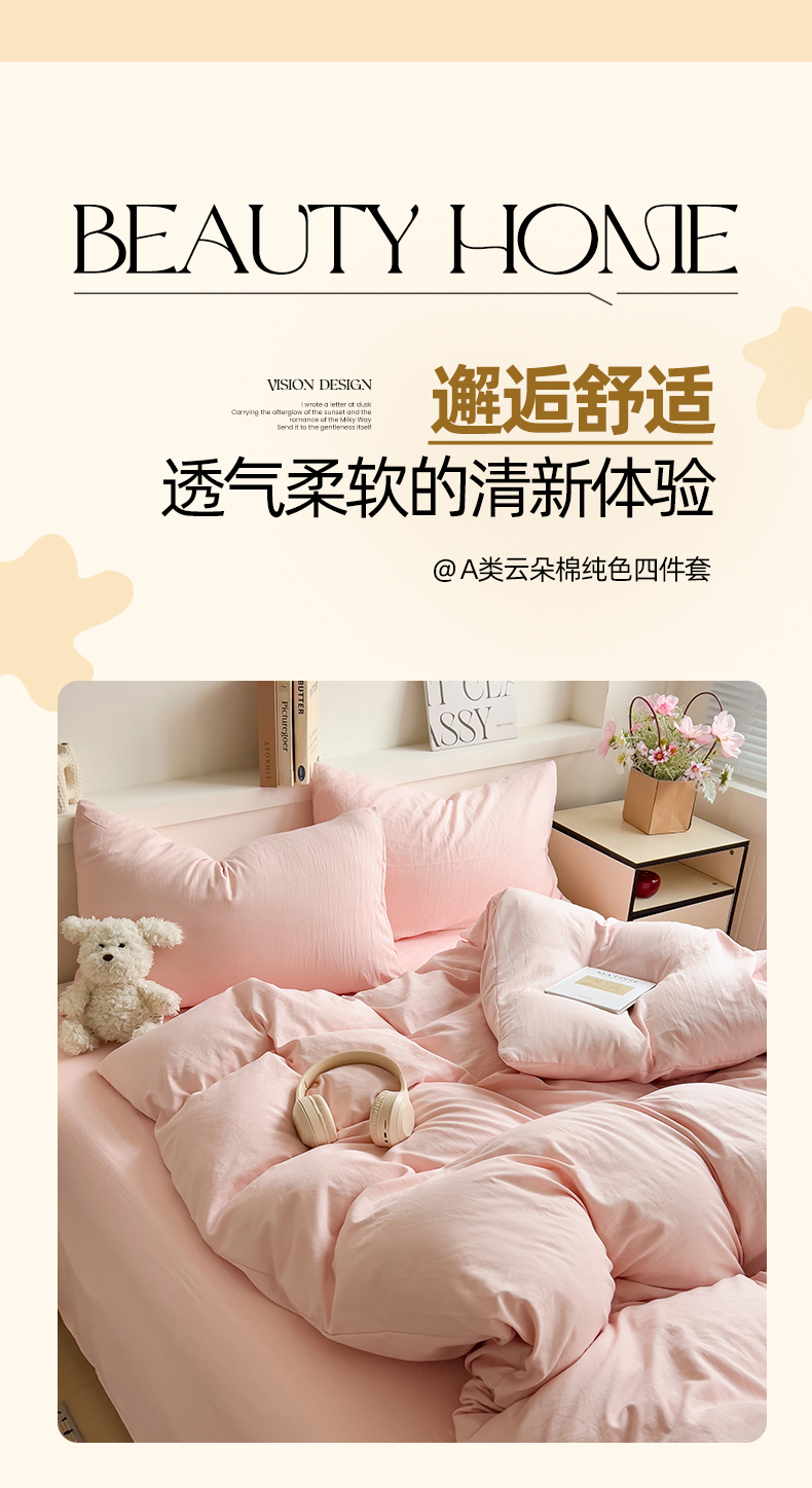 当前位置: 91家纺网 > 商品网购 > 床品套件 > 四件套 > 水洗棉四件套 > 妖妖家纺 2025新款水洗云朵棉纯色四件套 蜜桃粉