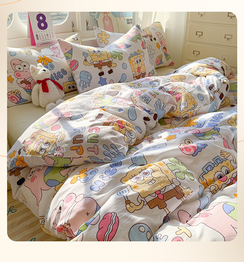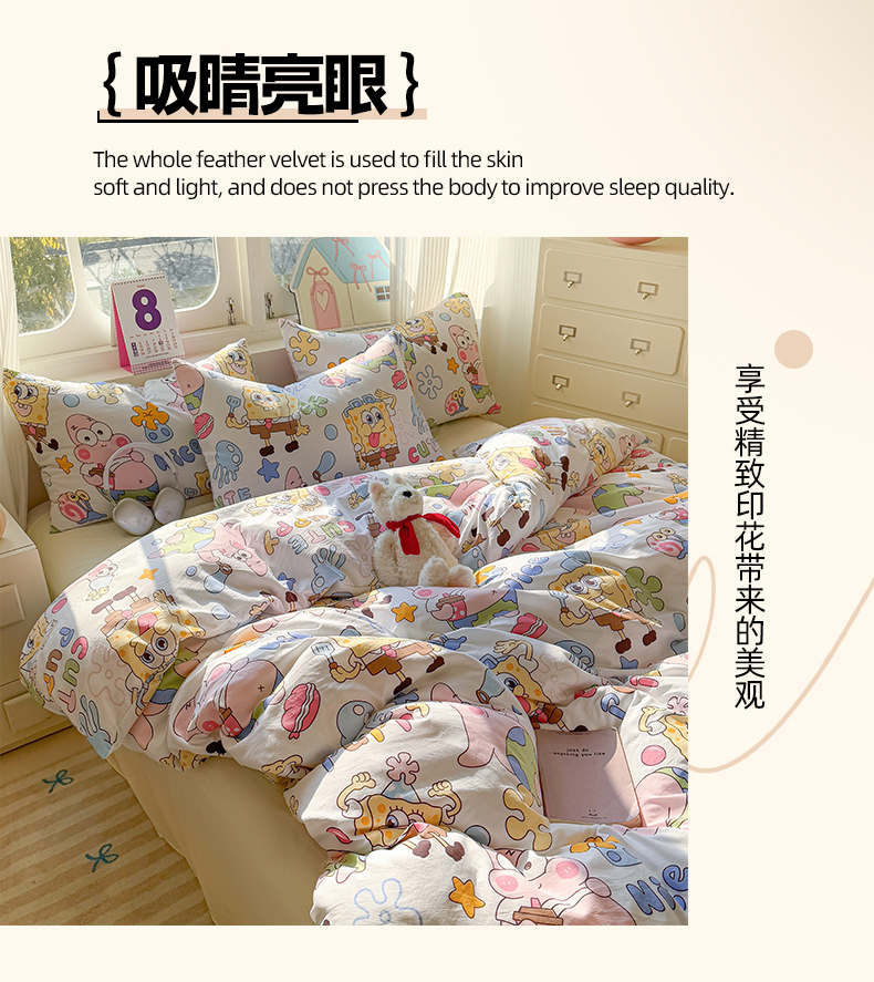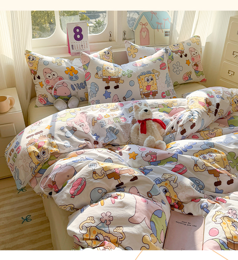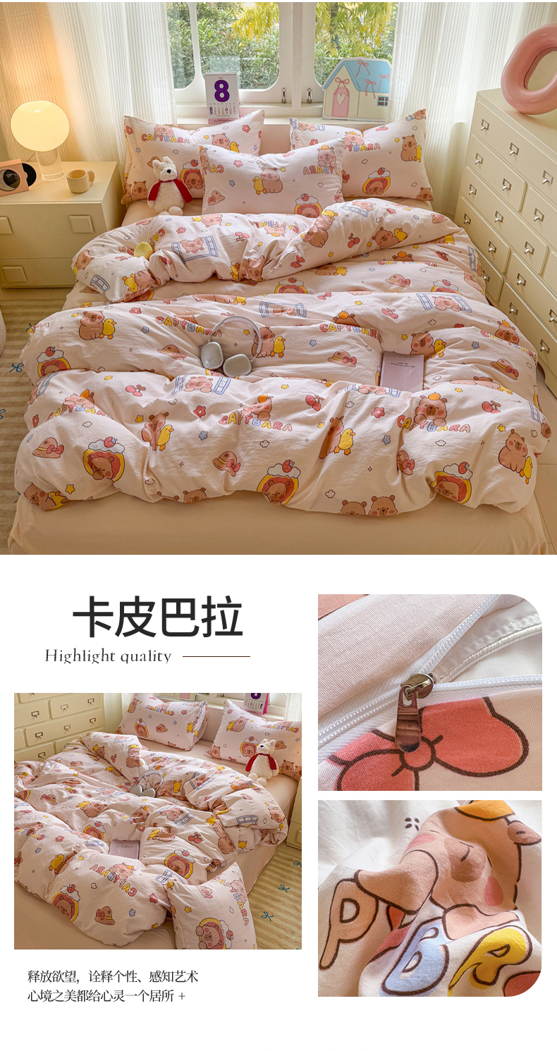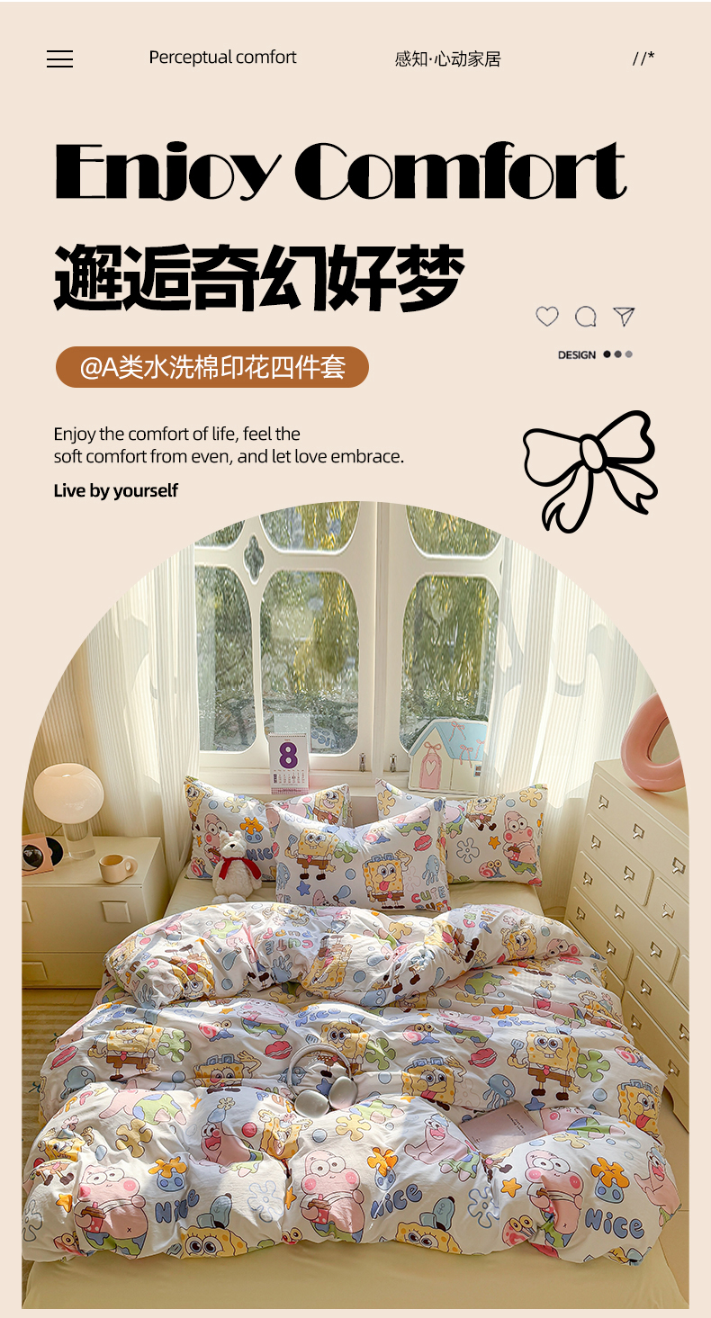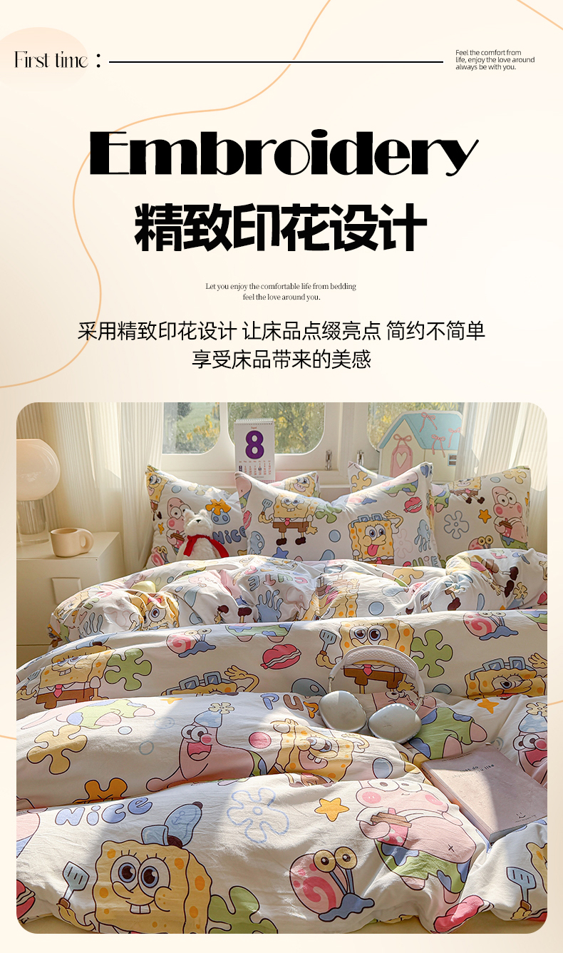 (总)温眠 2025新款亲肤柔软卡通印花水洗棉四件套