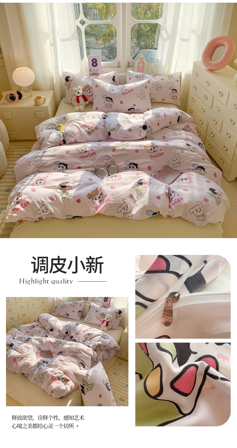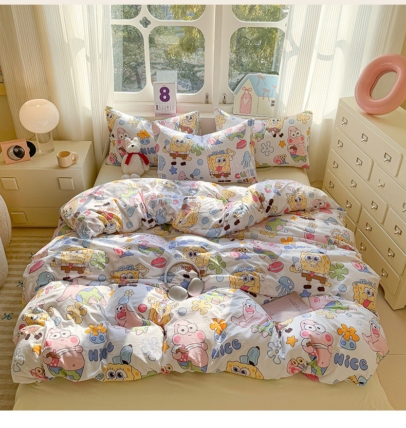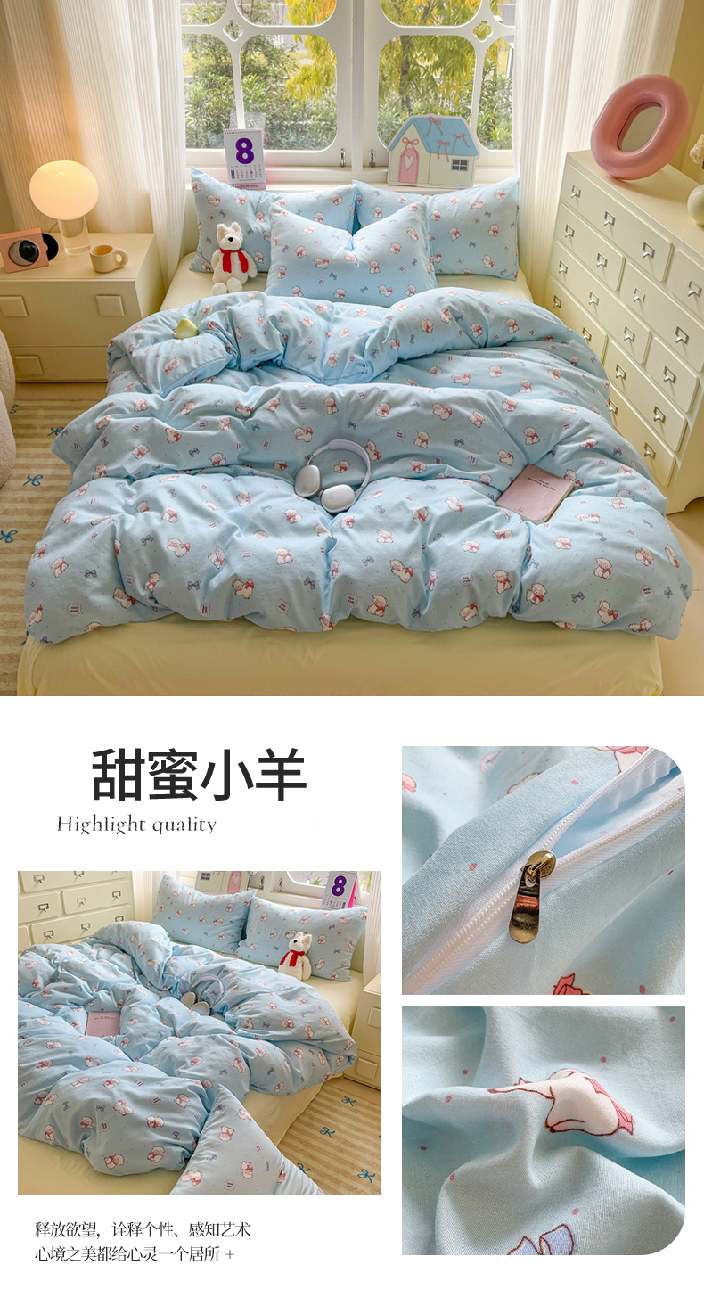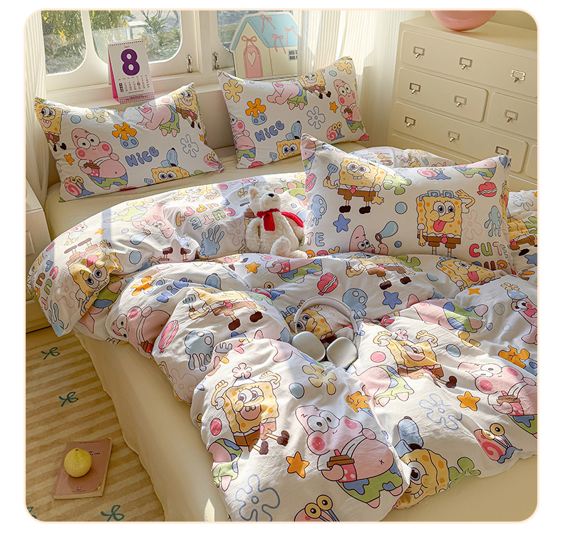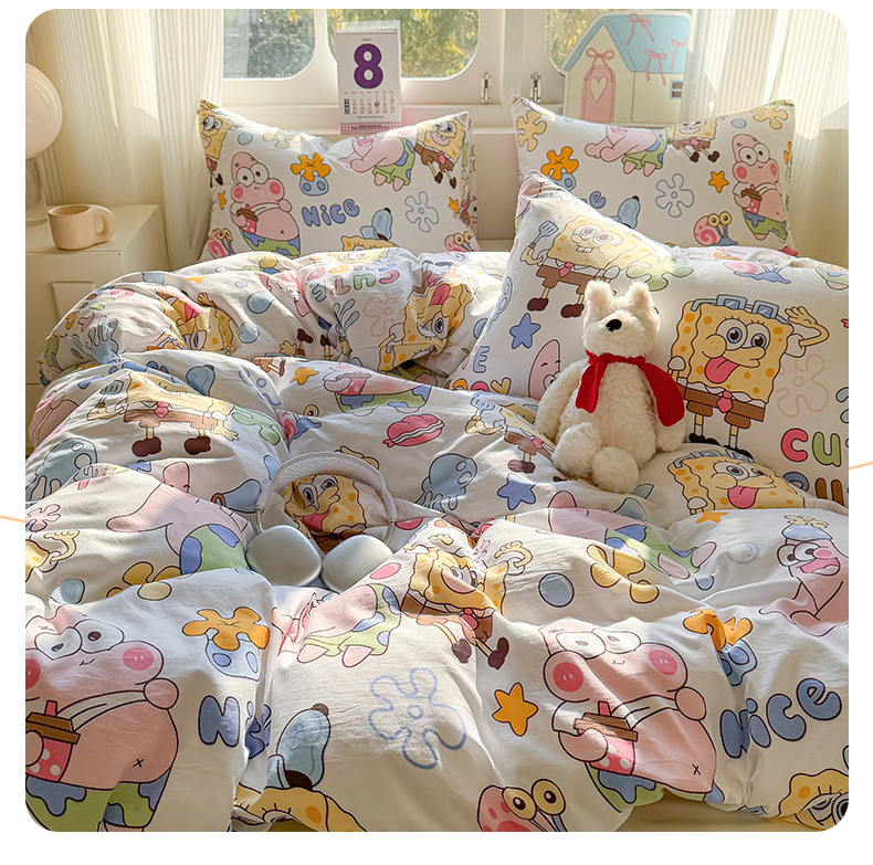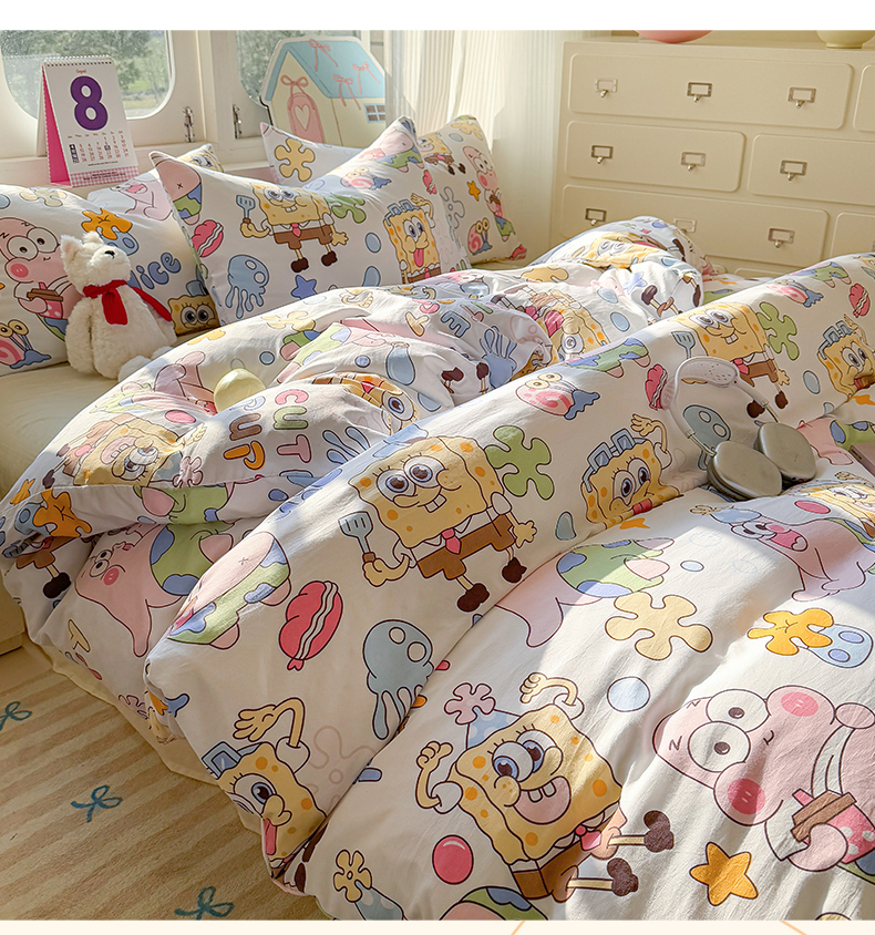 (总)温眠 2025新款亲肤柔软卡通印花水洗棉四件套