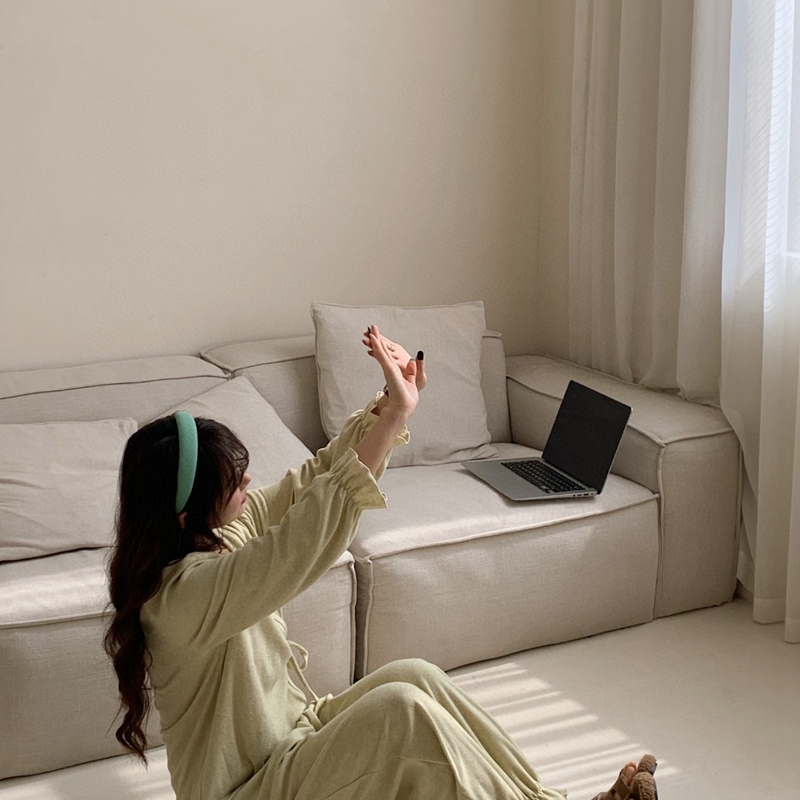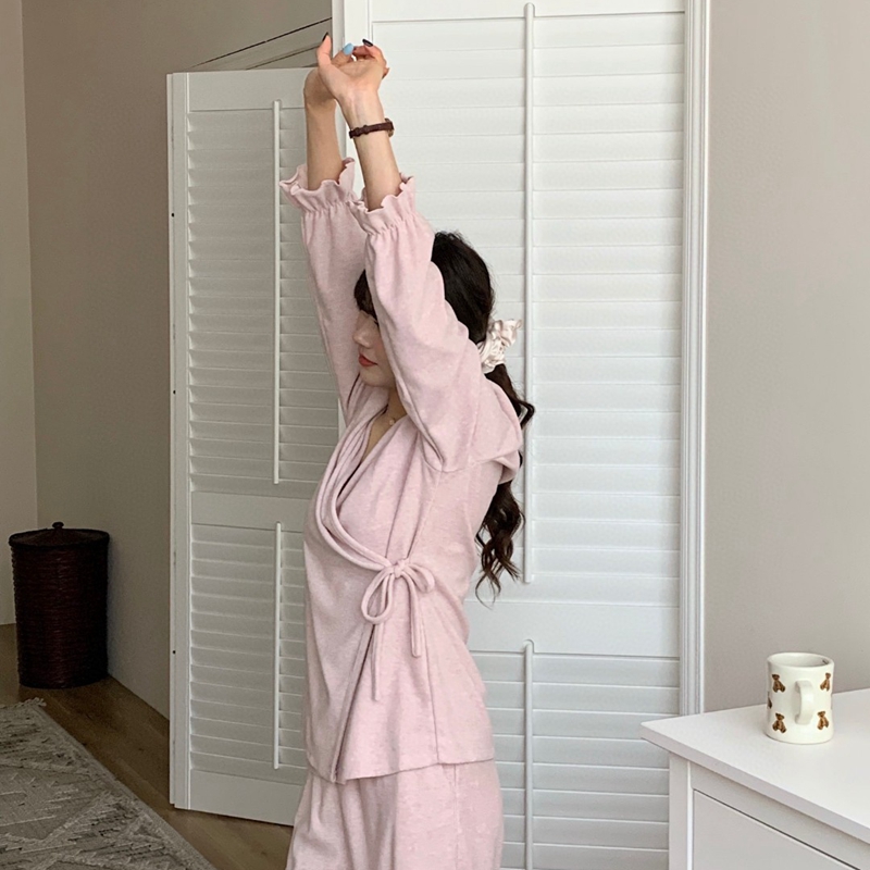 (总)妍景家居生活馆 2025新款韩系圆领纽扣蕾丝套装,巧克力咖,海涛兰,奶杏色