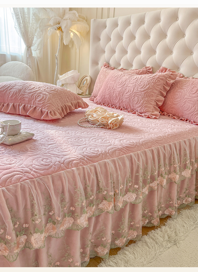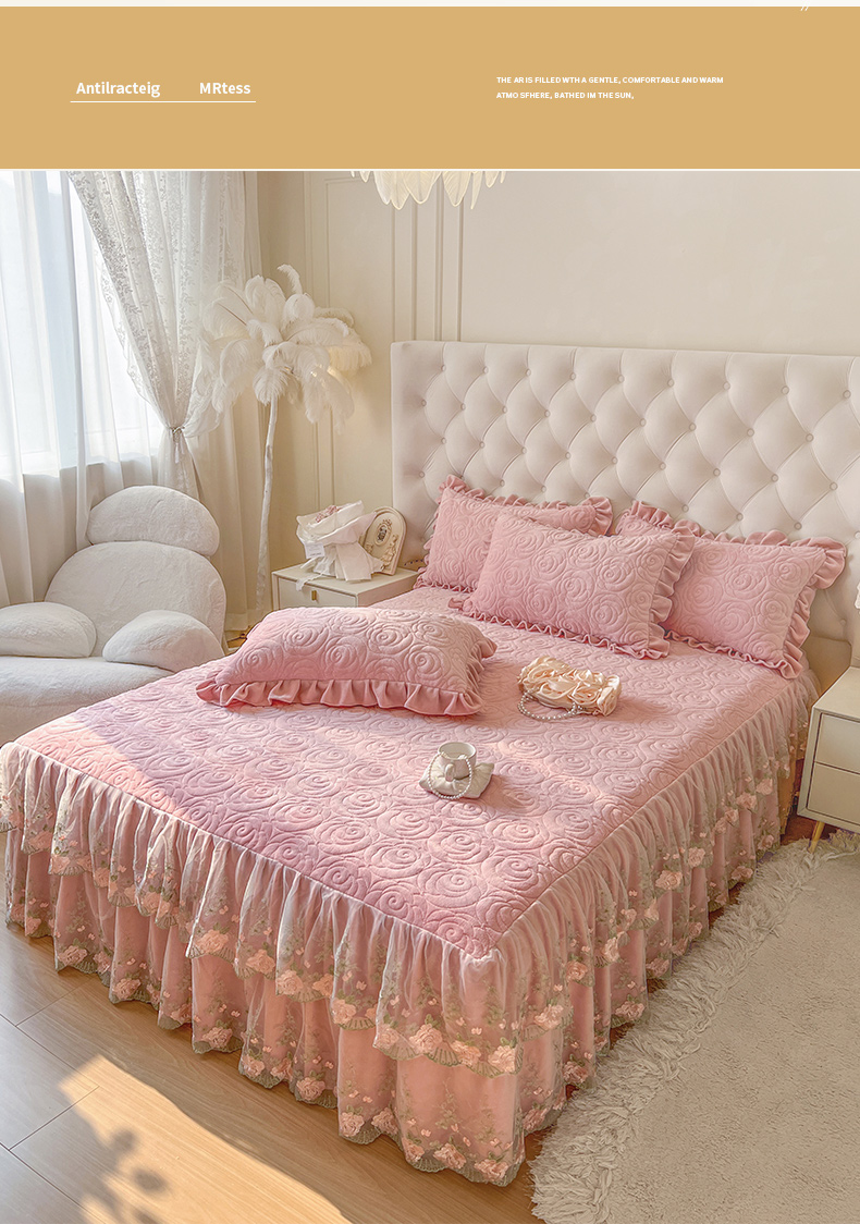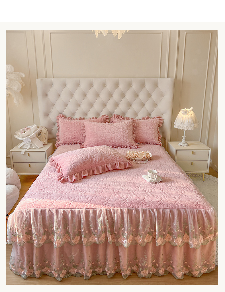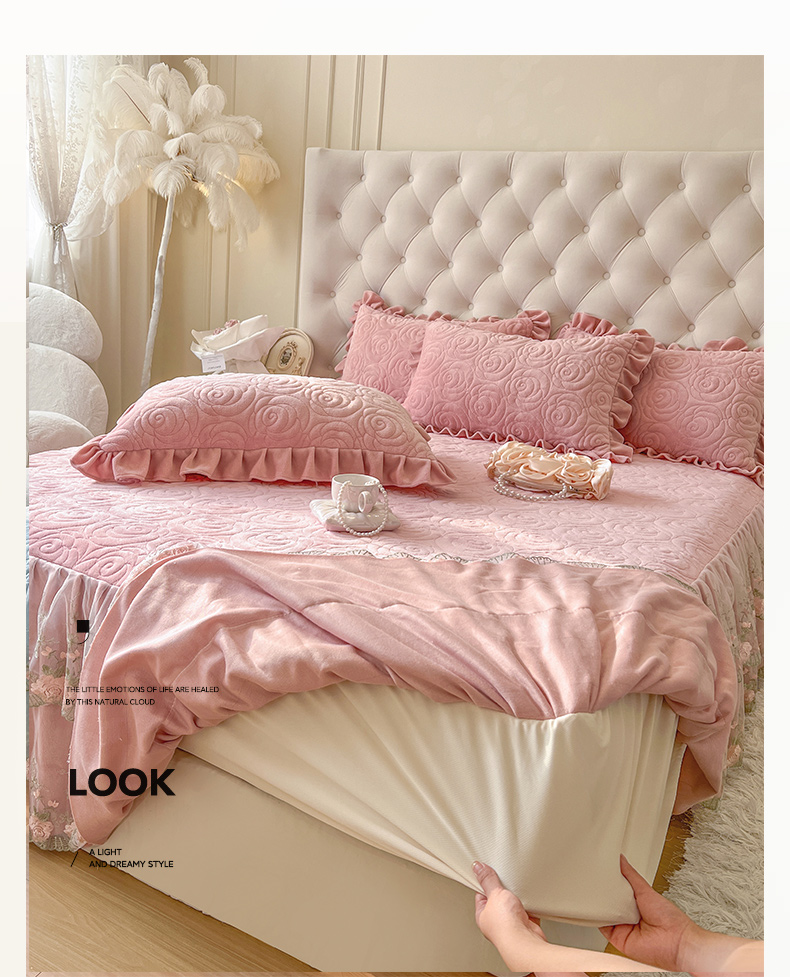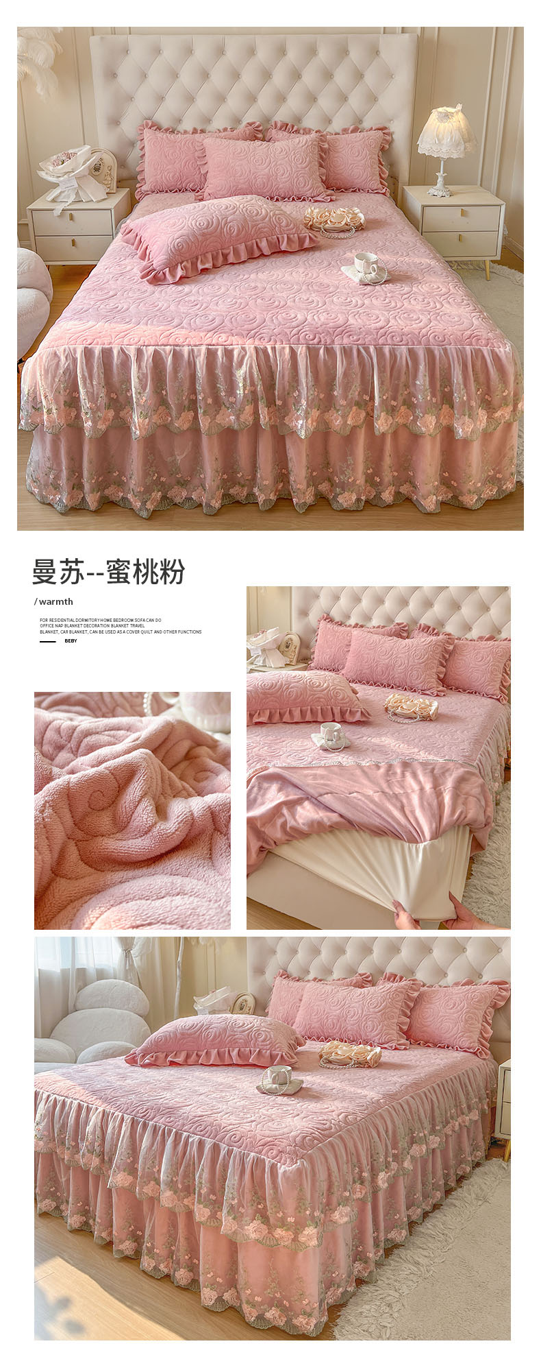 恋尚 2025新款牛奶绒夹棉床笠裙-曼苏 曼苏-蜜桃粉