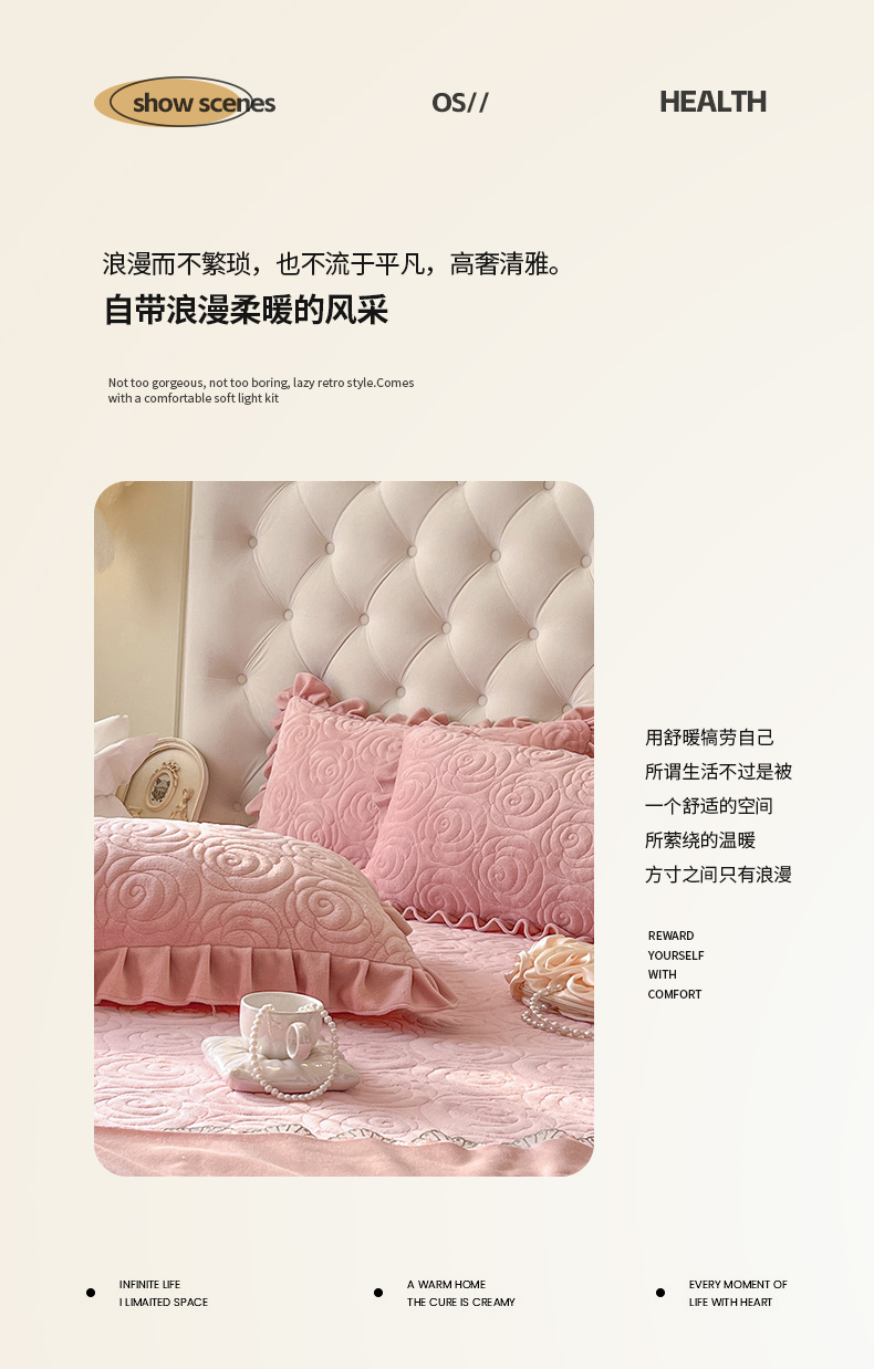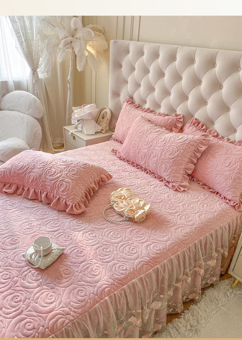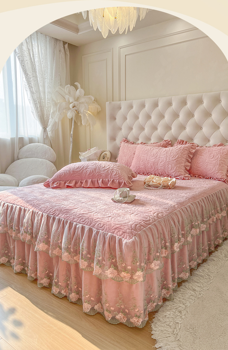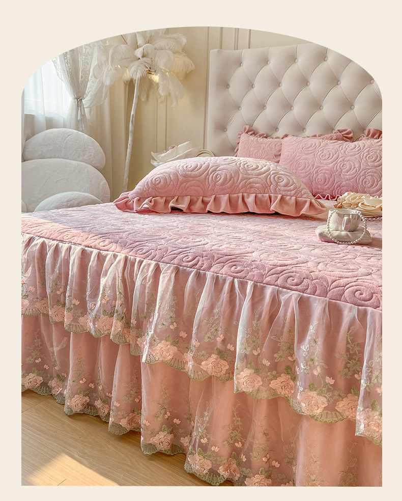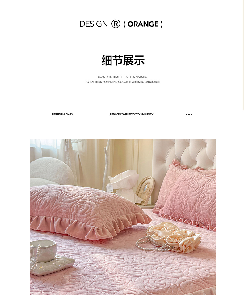 恋尚 2025新款牛奶绒夹棉床笠裙-曼苏 曼苏-蜜桃粉