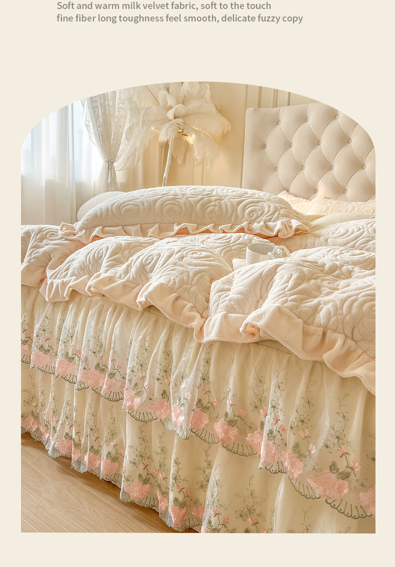 (总)恋尚 2025新款柔软牛奶绒保暖蕾丝床裙四件套-玫瑰故事(控价305),玫瑰故事-蜜桃粉,玫瑰故事-奶茶色,玫瑰故事-椰蓉灰,玫瑰故事-香芋紫,玫瑰故事-清新粉,玫瑰故事-香草绿