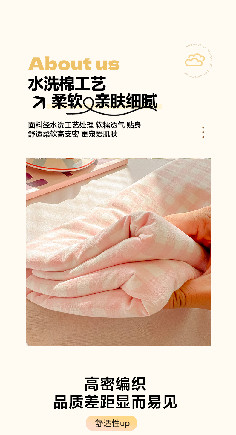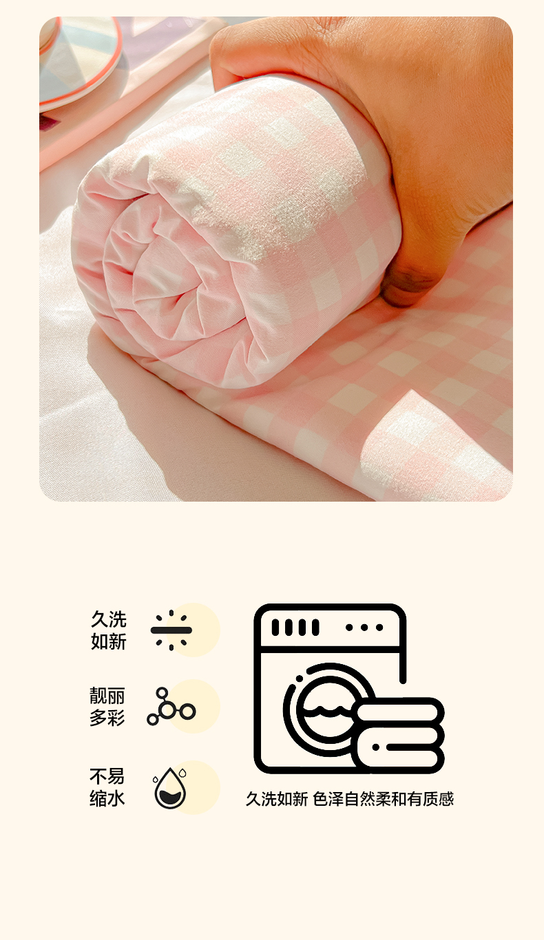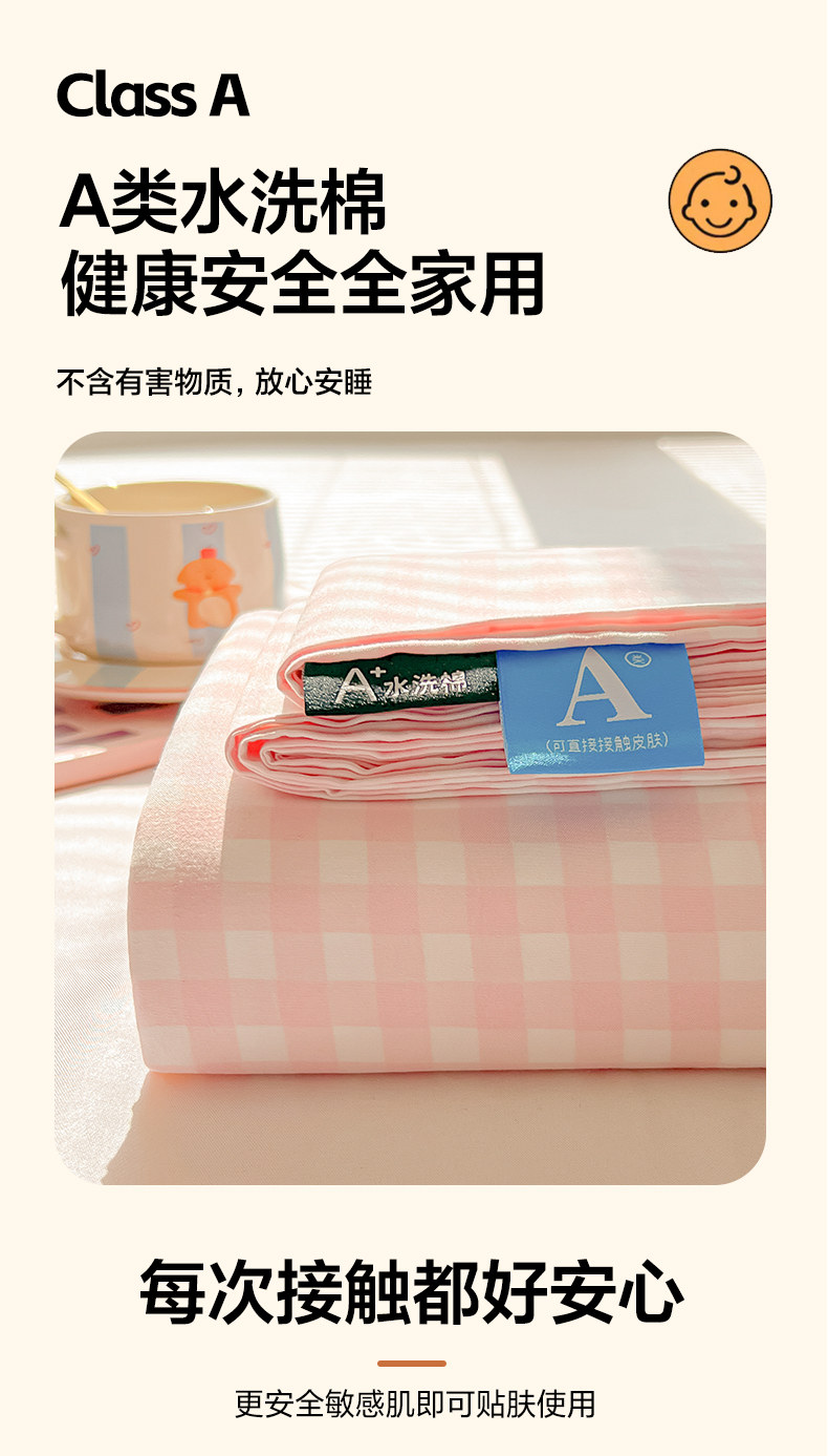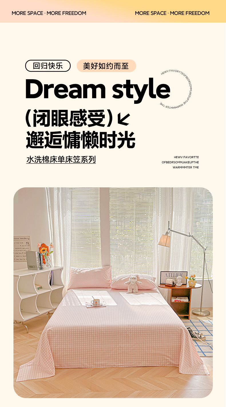 商品名称:韩巢家纺 2025新款格子纯色A类水洗棉床单单件 浅粉格