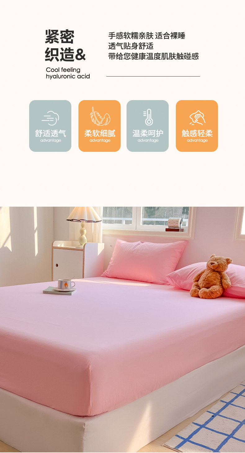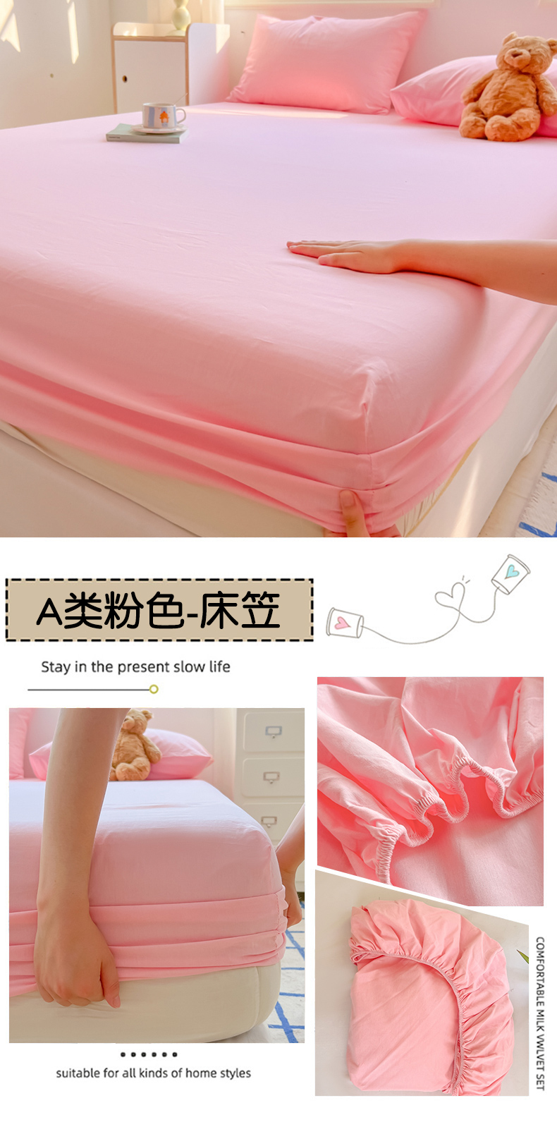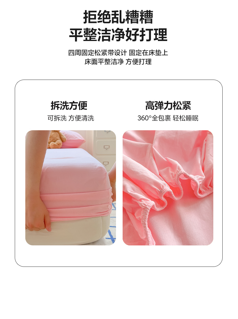 • 91家纺网 家纺一手货源 找家纺 韩巢家纺 2025新款A类纯色格子水洗棉床笠单件床罩床套 A类粉色-床笠