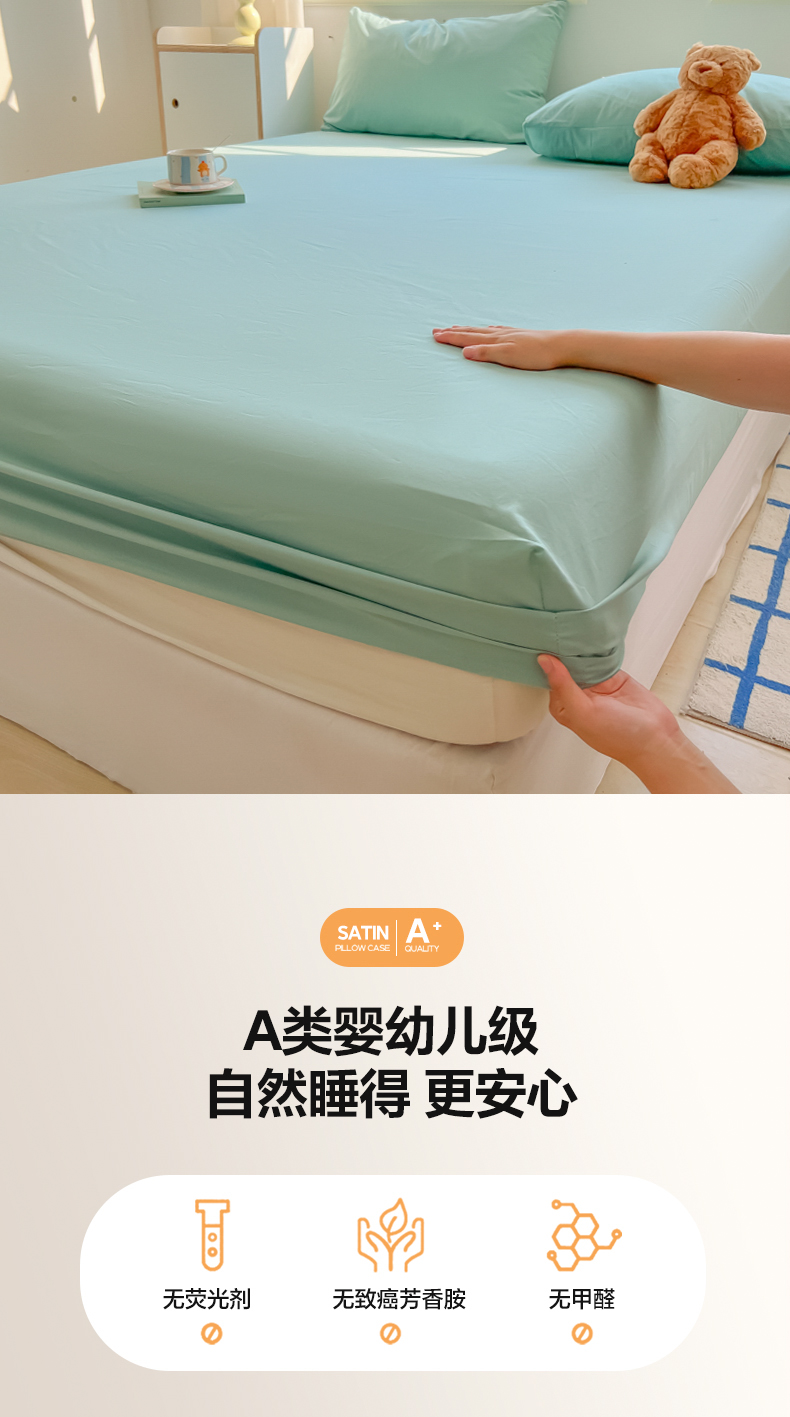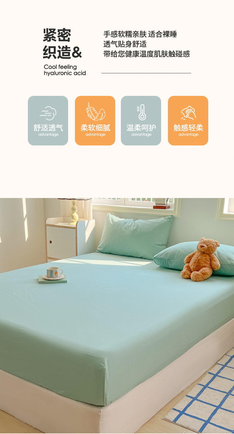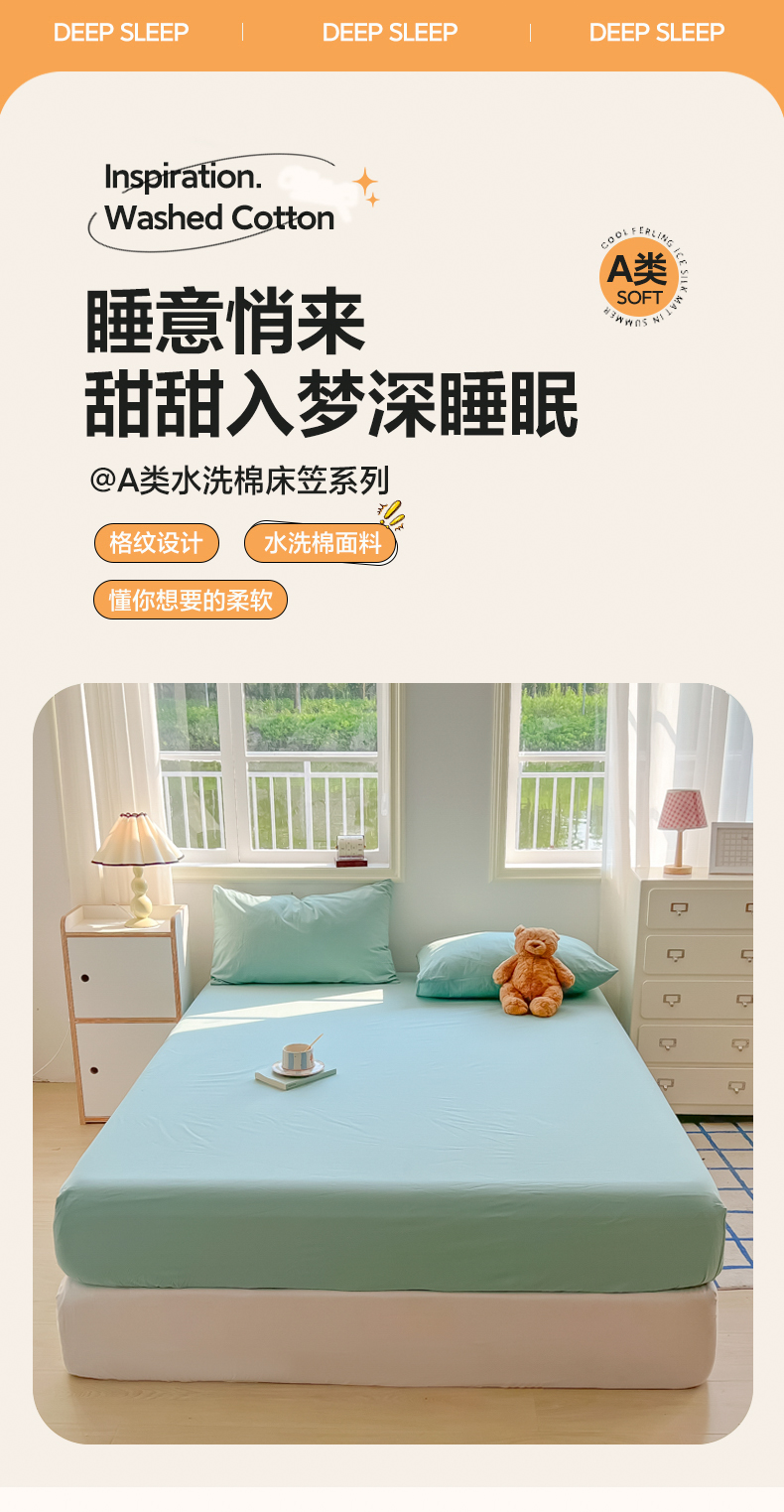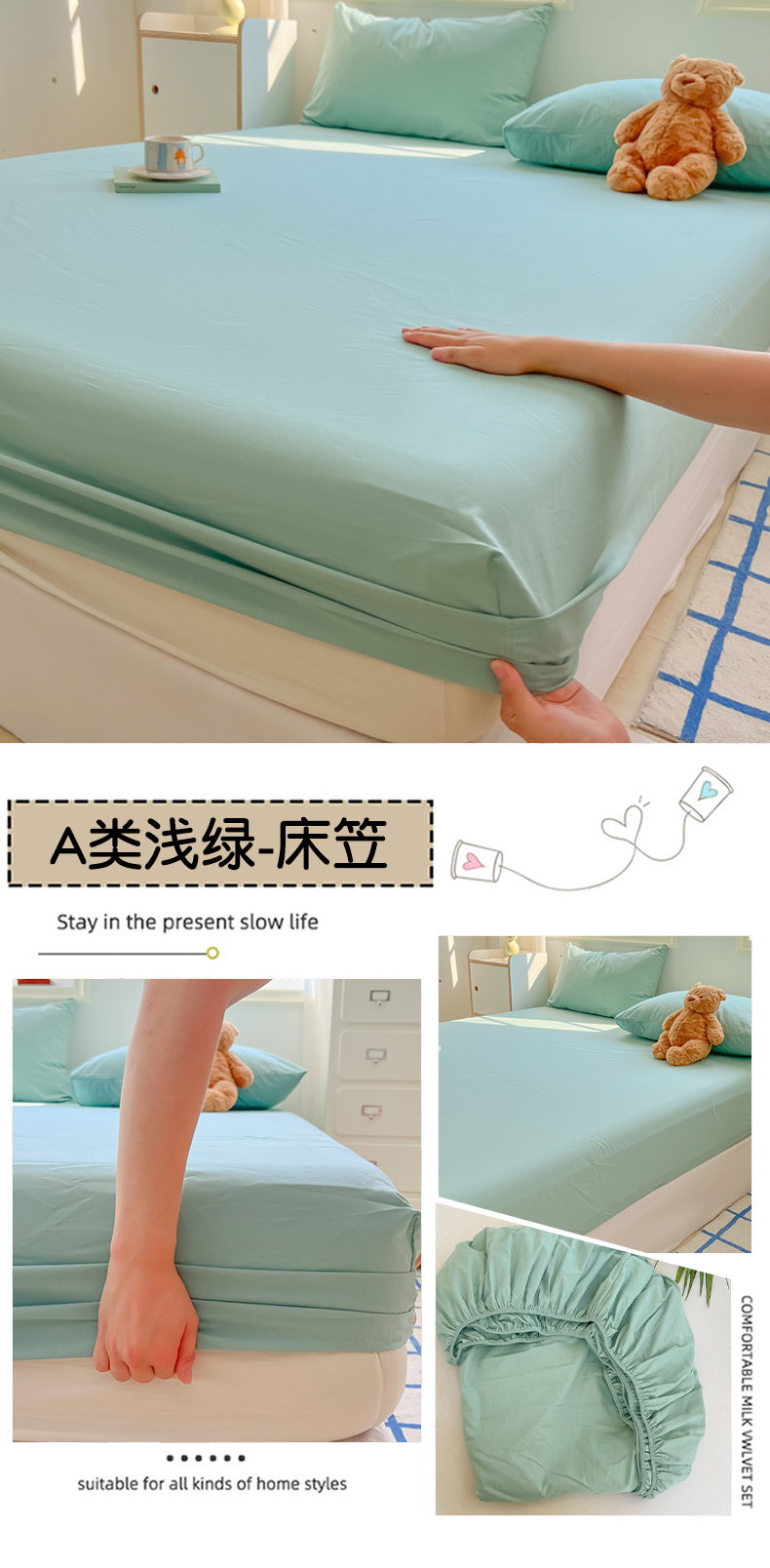 • 91家纺网 家纺一手货源 找家纺 韩巢家纺 2025新款A类纯色格子水洗棉床笠单件床罩床套 A类浅绿-床笠