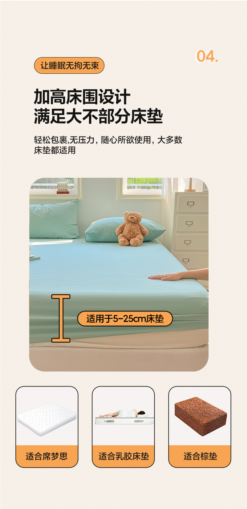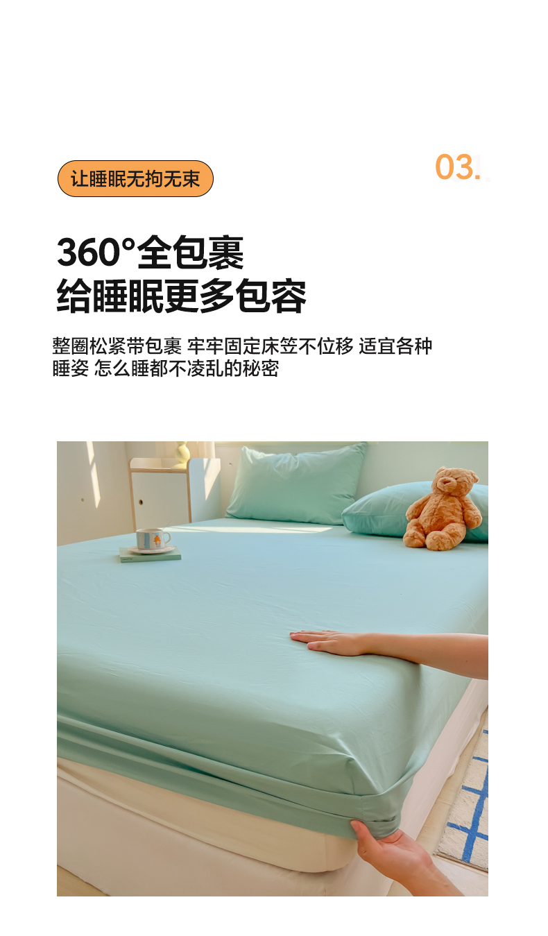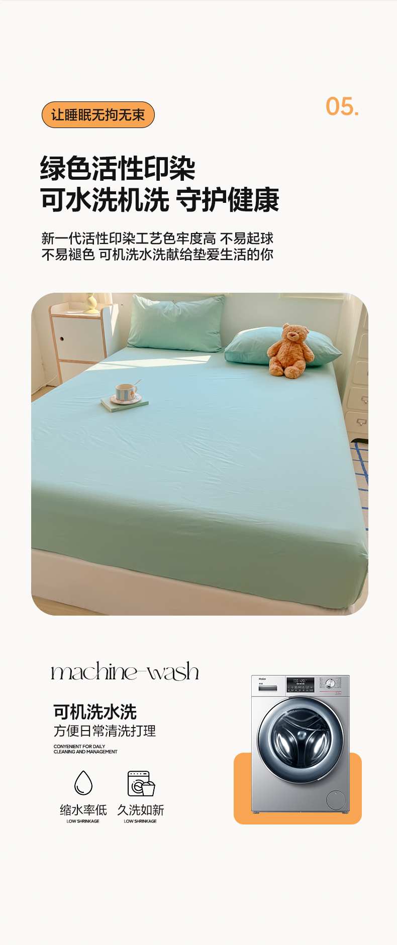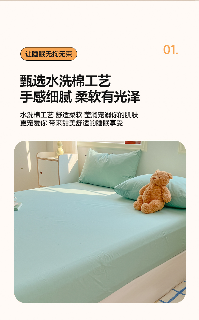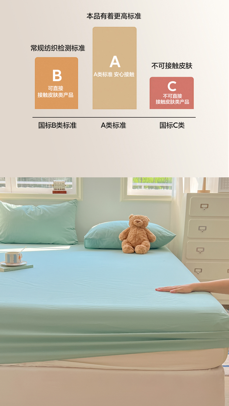 • 91家纺网 家纺一手货源 找家纺 韩巢家纺 2025新款A类纯色格子水洗棉床笠单件床罩床套 A类浅绿-床笠