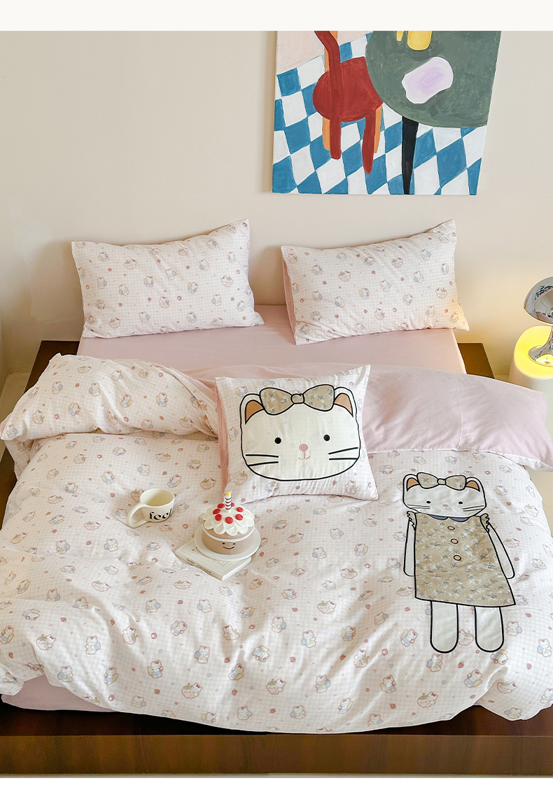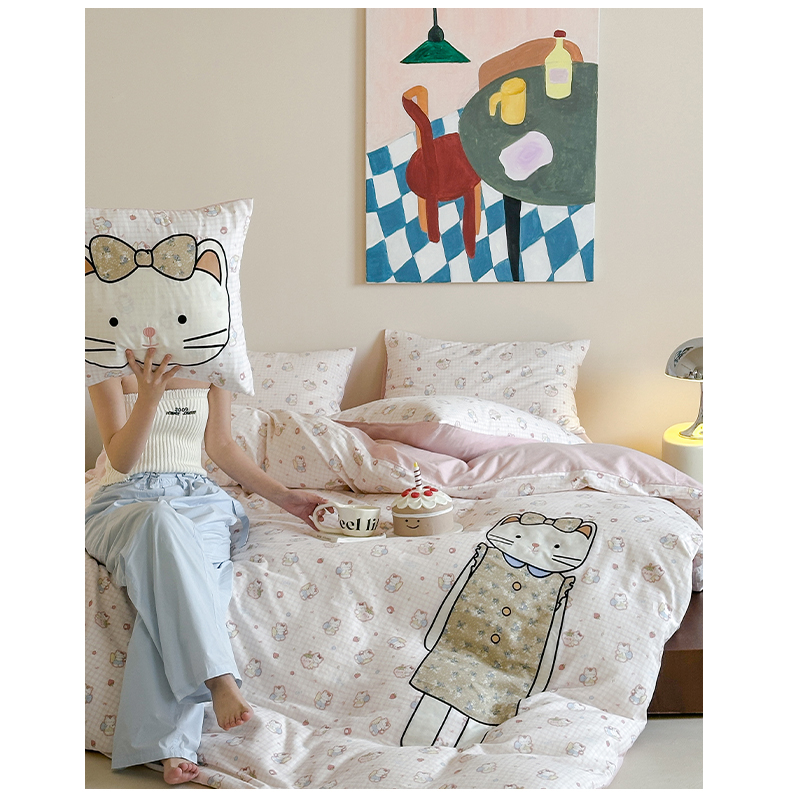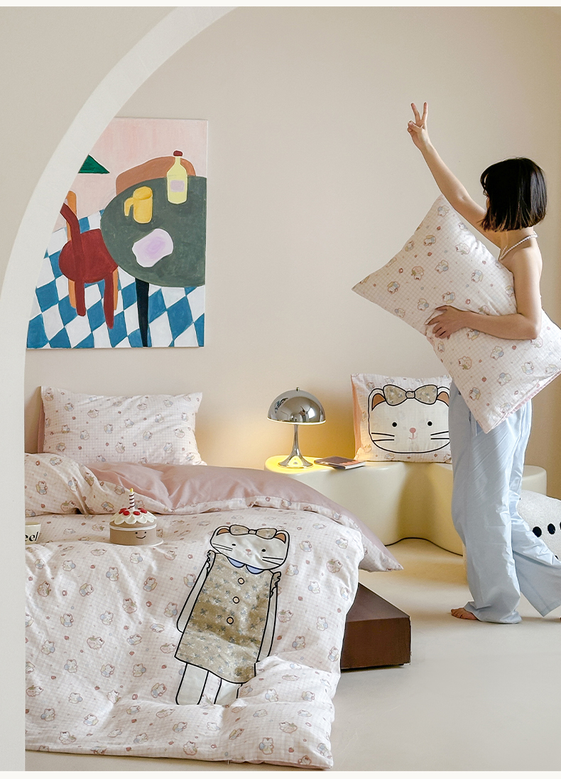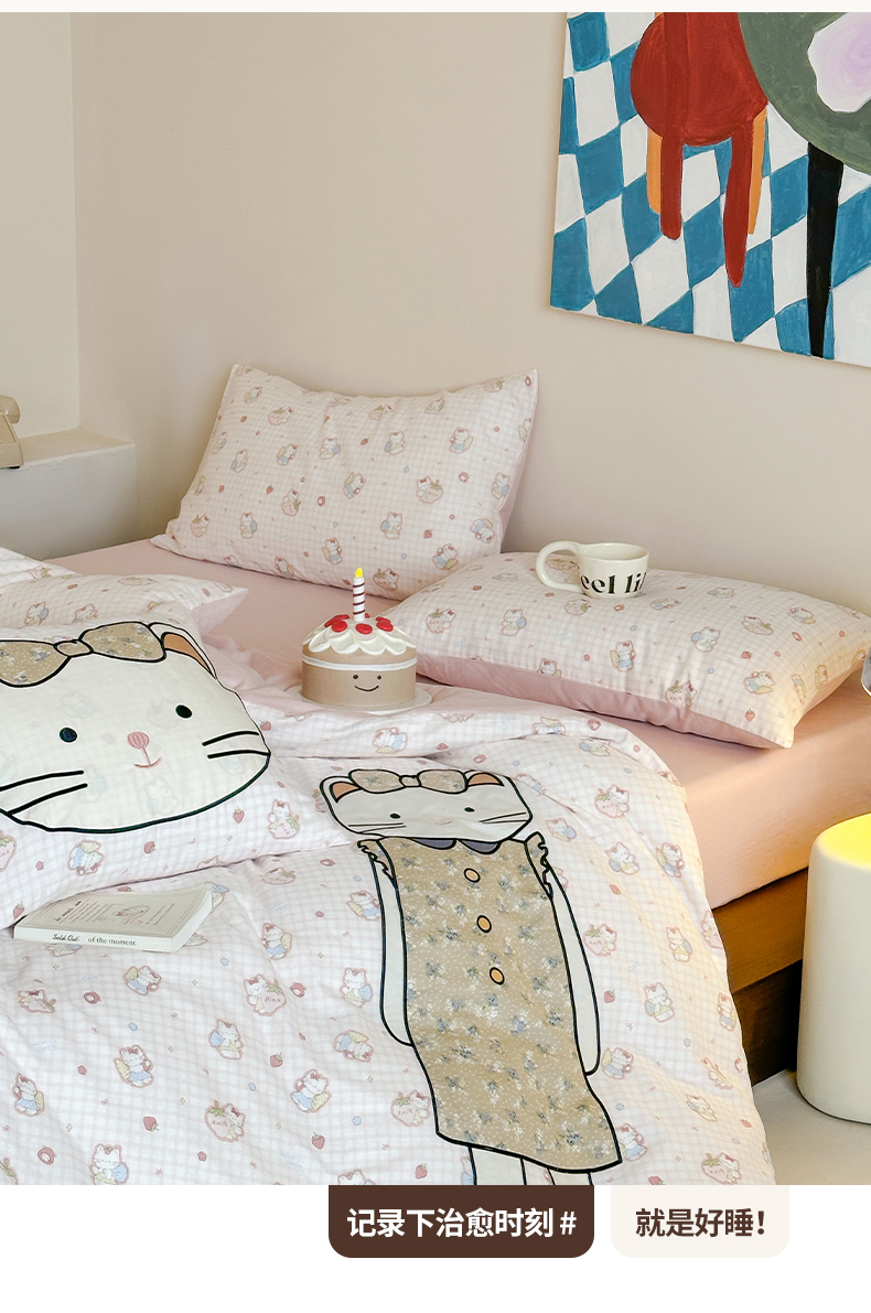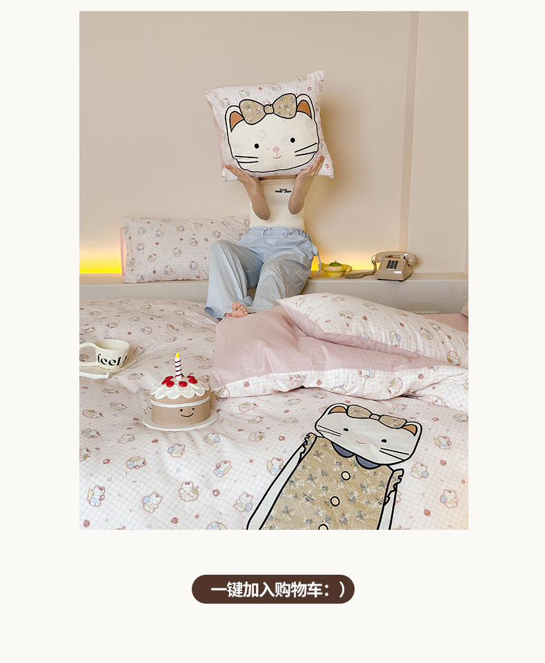 (总)卡巴伦家纺 2025新款全棉皱皱纱大版卡通数码印花款四件套一,洛可可兔-粉,班尼的花园-粉,班尼的花园-黄,漂亮的领结-绿,漂亮的领结-米白,熊猫噗噗-绿,樱桃真甜-奶白