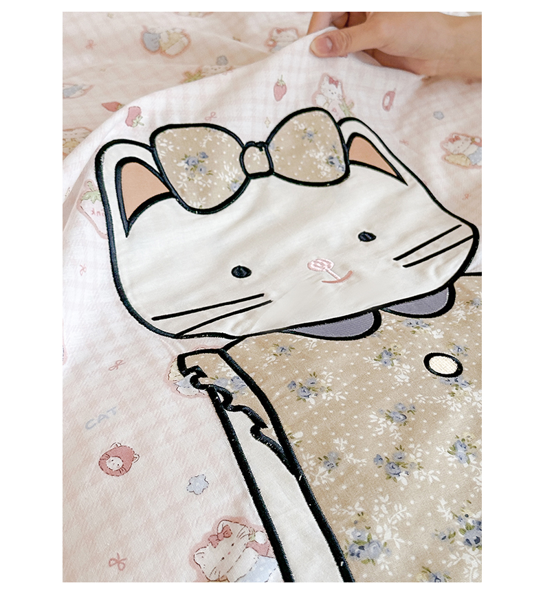 卡巴伦家纺 2025新款全棉A类双层纱印花贴布绣四件套【全网控价(折后券后)不低于标准278/小号238元】 蝴蝶结KT