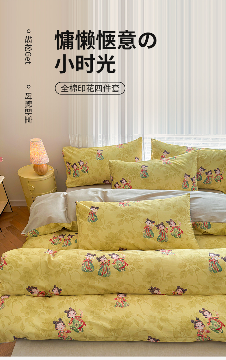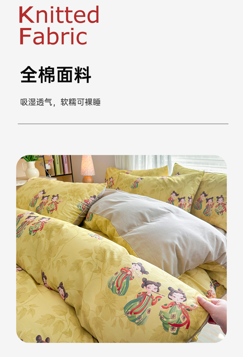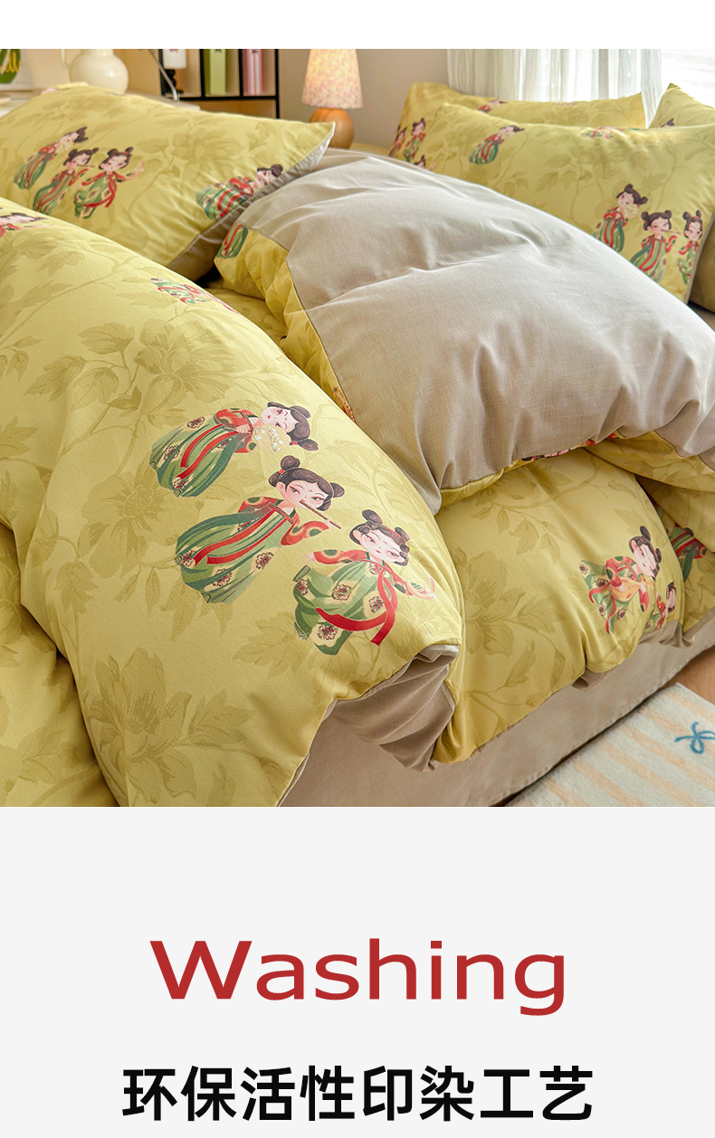 名兮家居 2025新款12868全棉纯棉四件套 唐装女孩-绿