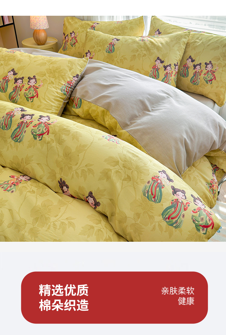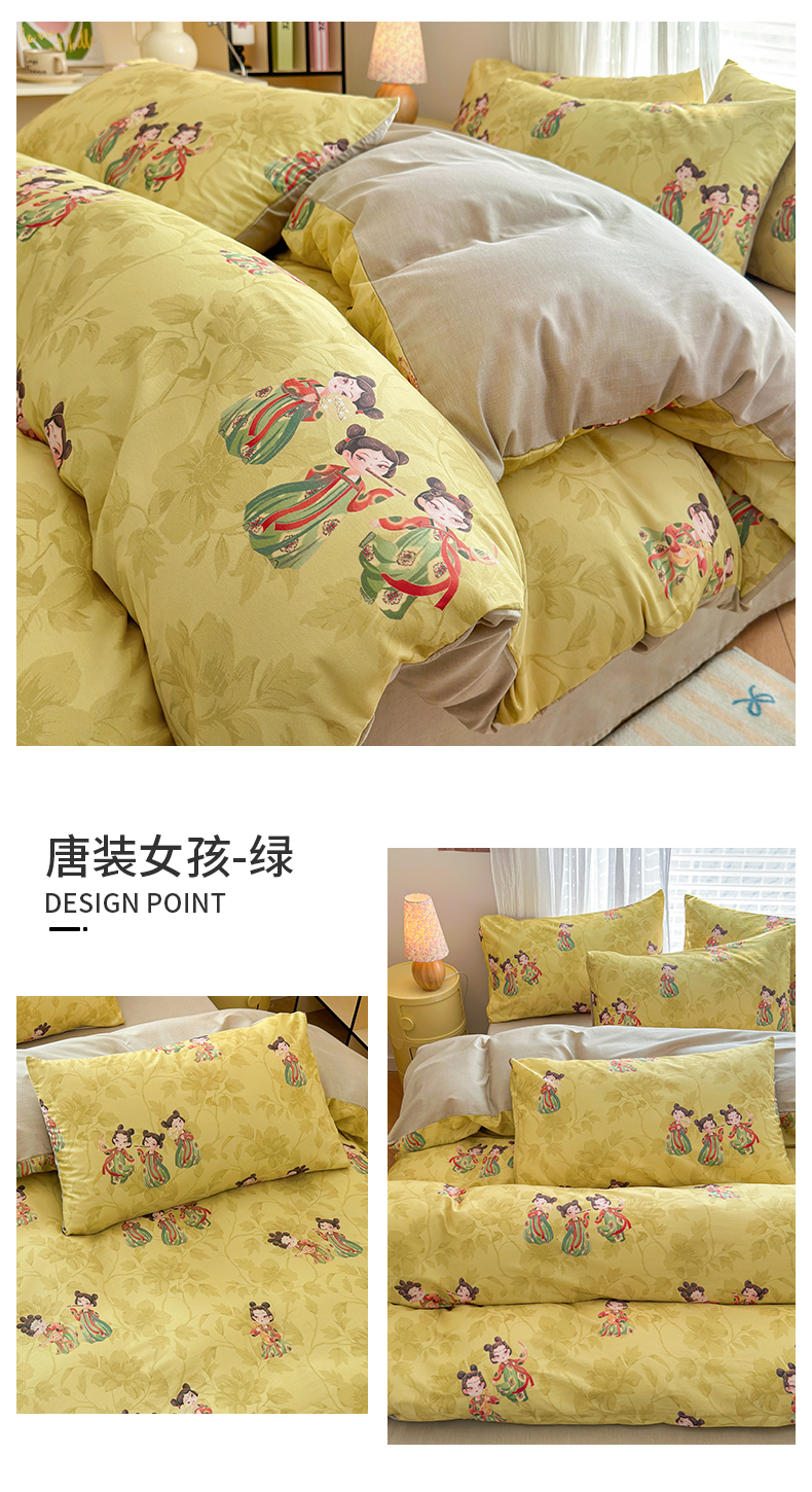 商品名称:名兮家居 2025新款12868全棉纯棉四件套 唐装女孩-绿