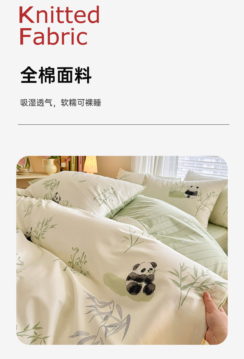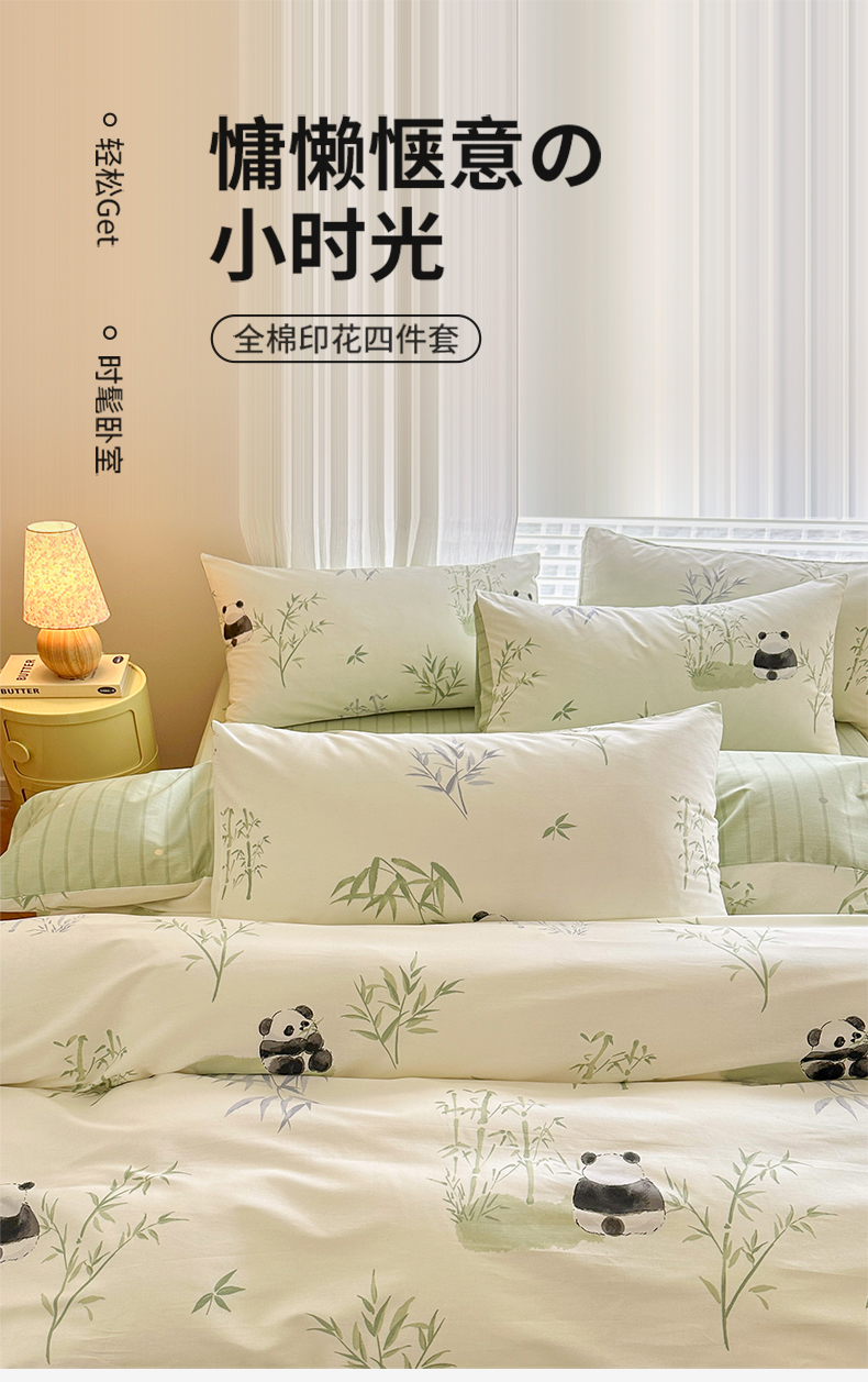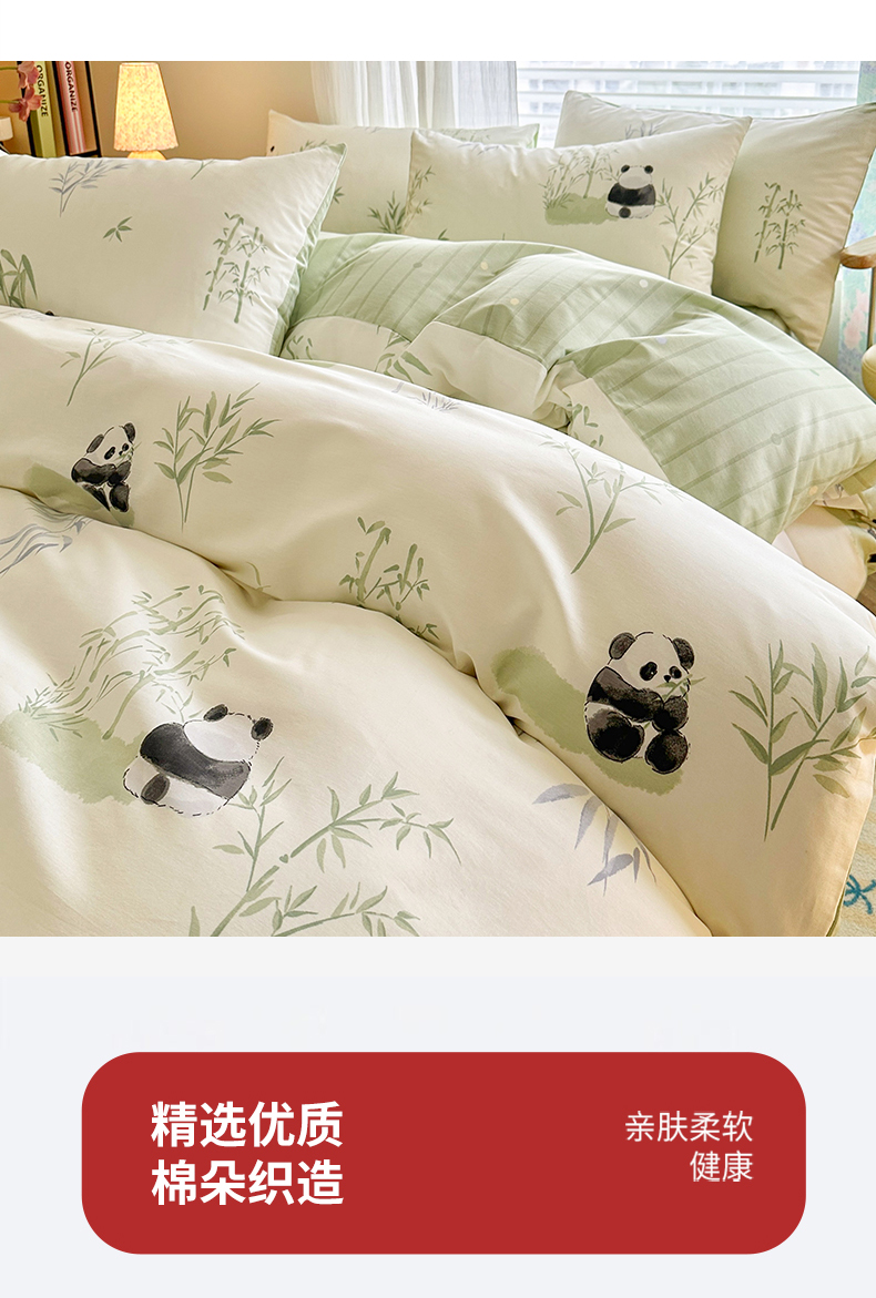 商品名称:名兮家居 2025新款12868全棉纯棉四件套 竹子熊猫