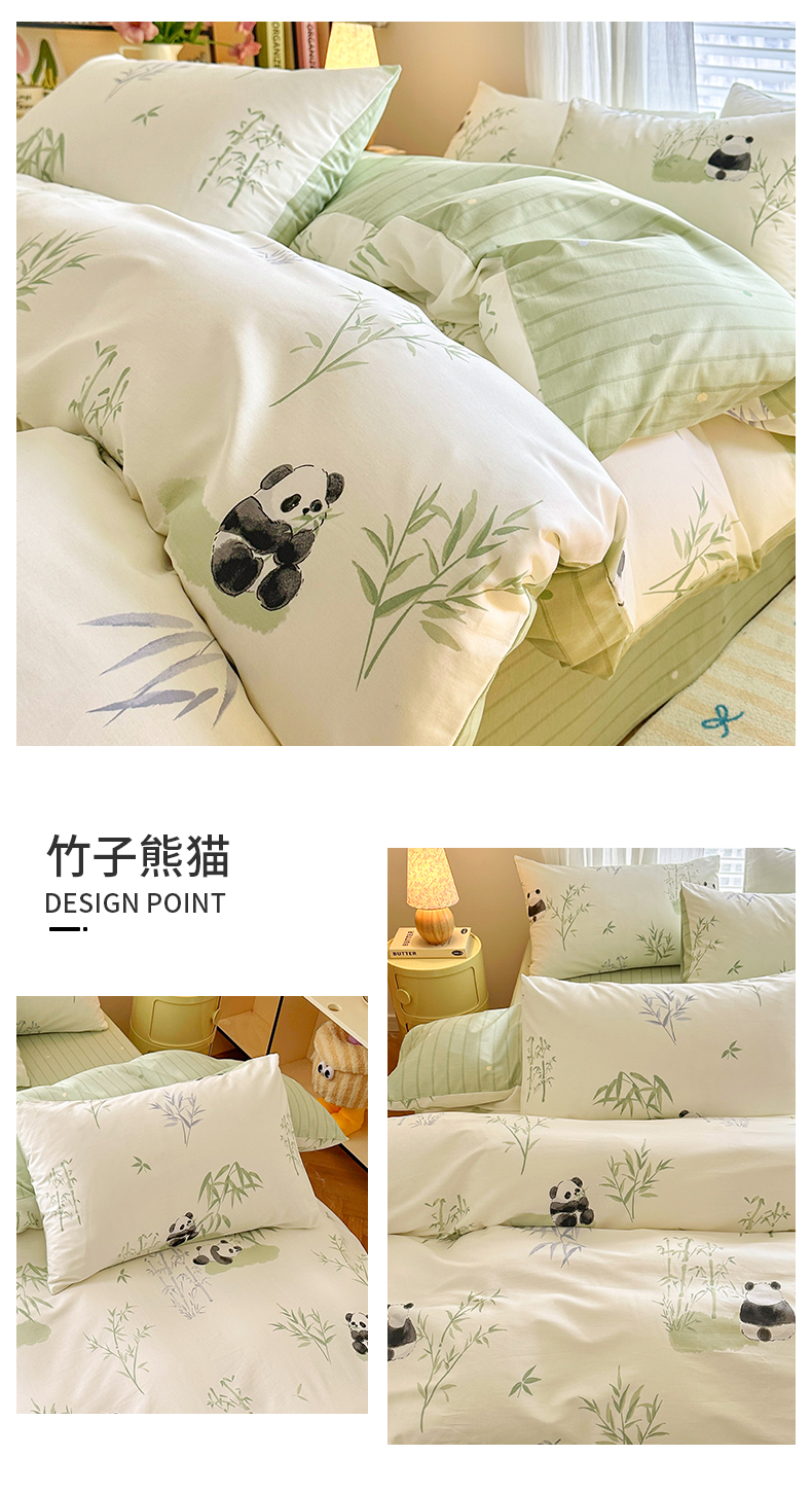 名兮家居 2025新款12868全棉纯棉四件套 竹子熊猫