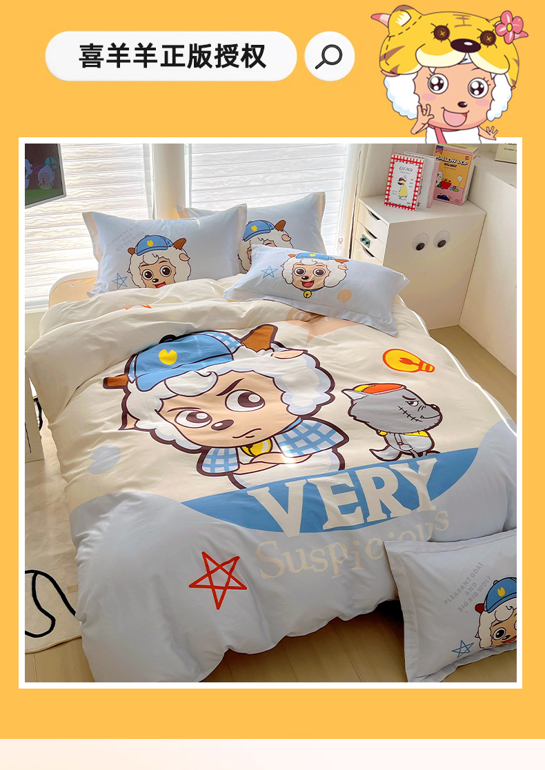 当前位置: 91家纺网 > 商品网购 > 床品套件 > 四件套 > 全棉普通四件套 > 浩诚 2025新款第二批正版喜羊羊灰太狼全棉卡通大版印花四件套-提供买家秀 羊羊乐